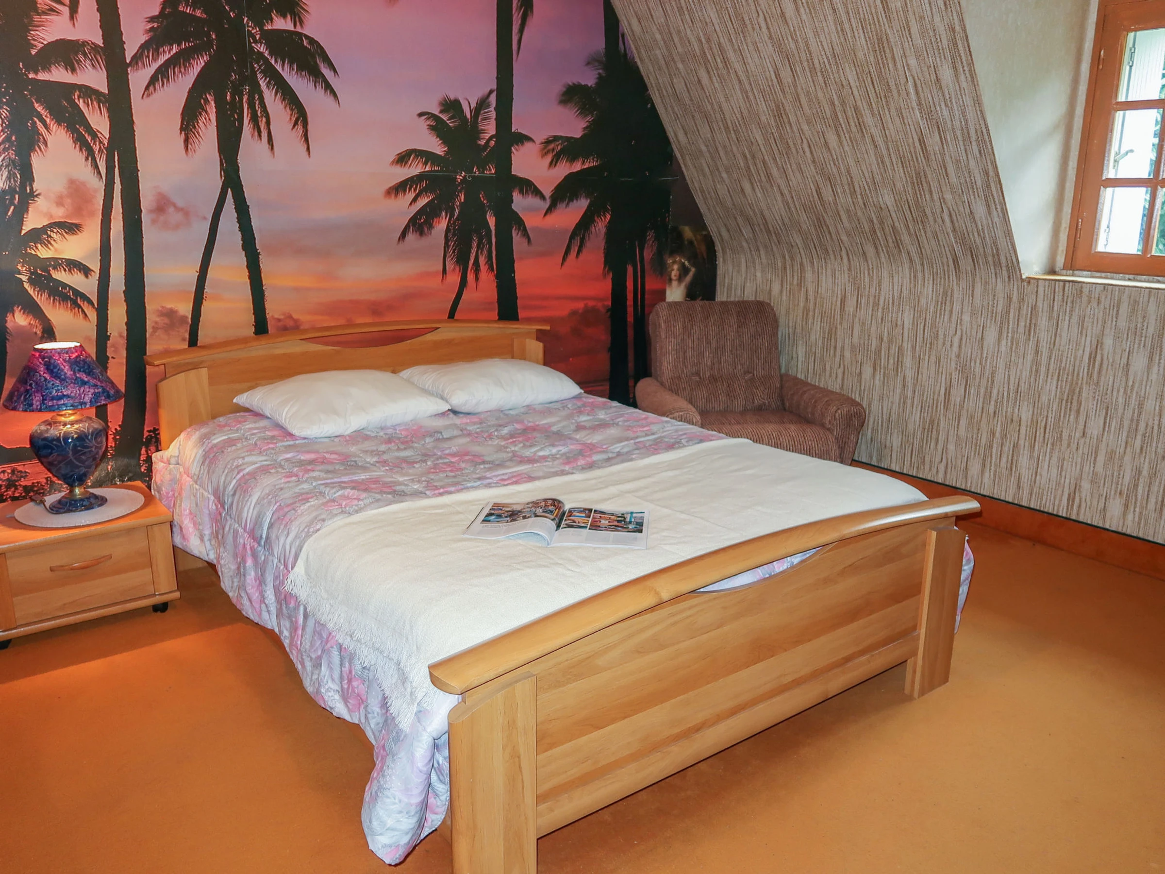 "Villa Kergroës", maison 7 pièces 200 m2 sur 2 niveaux. Spacieux, aménagement à l'ancienne: grand séjour/salle à manger 50 m2 avec table pour les repas. Sortie sur le jardin, sur la terrasse. 1 chambre avec 1 grand-lit (1 x 140 cm, longueur 190 cm). Cuisine 15 m2 (four, lave-vaisselle, 4 feux, grille-pain, bouilloire électrique, four micro-ondes, congélateur, cafetière électrique). Douche, WC séparé. Chauffage au fuel (en sus). À l'étage supérieur: 2 chambres, chaque chambre avec: 1 grand-lit (140 cm, longueur 190 cm). 2 chambres, chaque chambre avec: 2 lits (90 cm, longueur 190 cm). Salle de bains, WC séparé, double vasque. Grand jardin, situation sud, pelouse. Meubles de terrasse, barbecue, chaises longues (2). Vue panoramique sur la vallée et le jardin. A disposition: lave-linge, sèche-linge, fer à repasser, chaise haute pour enfant, lit bébé jusqu'à 2 ans, sèche-cheveux. Internet (Connexion WIFI, gratuit). Veuillez noter: maison non-fumeur. 1 animal/ chien de petite taille autorisé. Détecteur de fumée. Annonce d'un particulier (art 155, IV du CGI).
