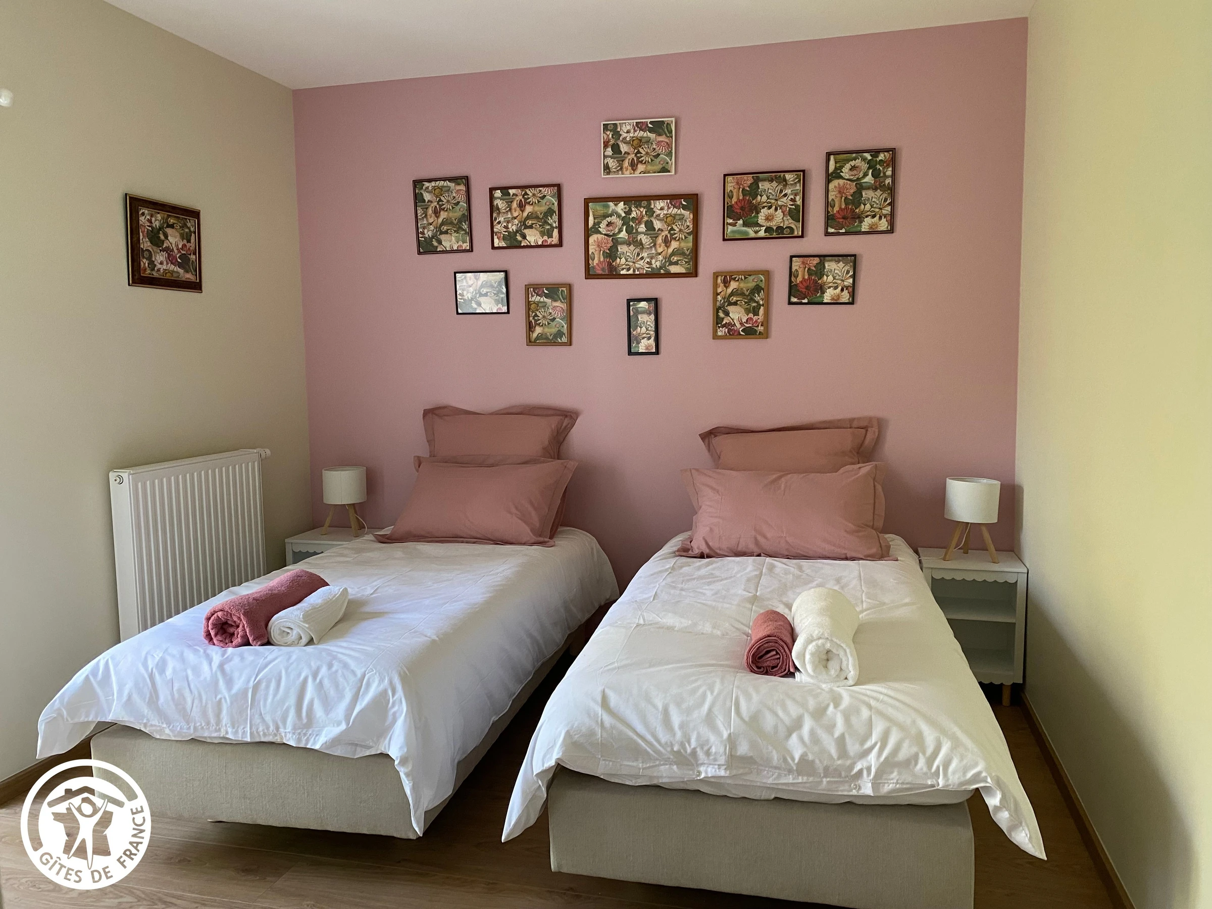 Séjournez dans le bocage vendéen et découvrez ses richesses naturelles et historiques telles que la Cité des Oiseaux (6,5 km), le château de Tiffauges (10 km), le chemin de fer de la Vendée (15 km) et bien sûr le Puy du Fou (16 km). Un peu plus loin, vous aurez également l'opportunité de visiter la cité de Clisson (25 km), le Parc Oriental de Maulévrier (31 km), le logis de la Chabotterie (38 km) ou encore l'Historial de la Vendée (42 km). Ce gîte se compose, au rez-de-chaussée, d'un séjour/salon/cuisine avec TV connectée et d'une salle d'eau/WC. A l'étage vous trouverez 3 chambres dont une équipée d'un lit 160 et deux équipées de deux lits 90, une salle d'eau et un WC indépendant. Vous bénéficierez d'un espace extérieur privatif, clos, avec terrasse, salon de jardin, plancha, transats et jeux d'extérieur. Vous pourrez stationner votre véhicule sur place, sur un vaste parking commun.