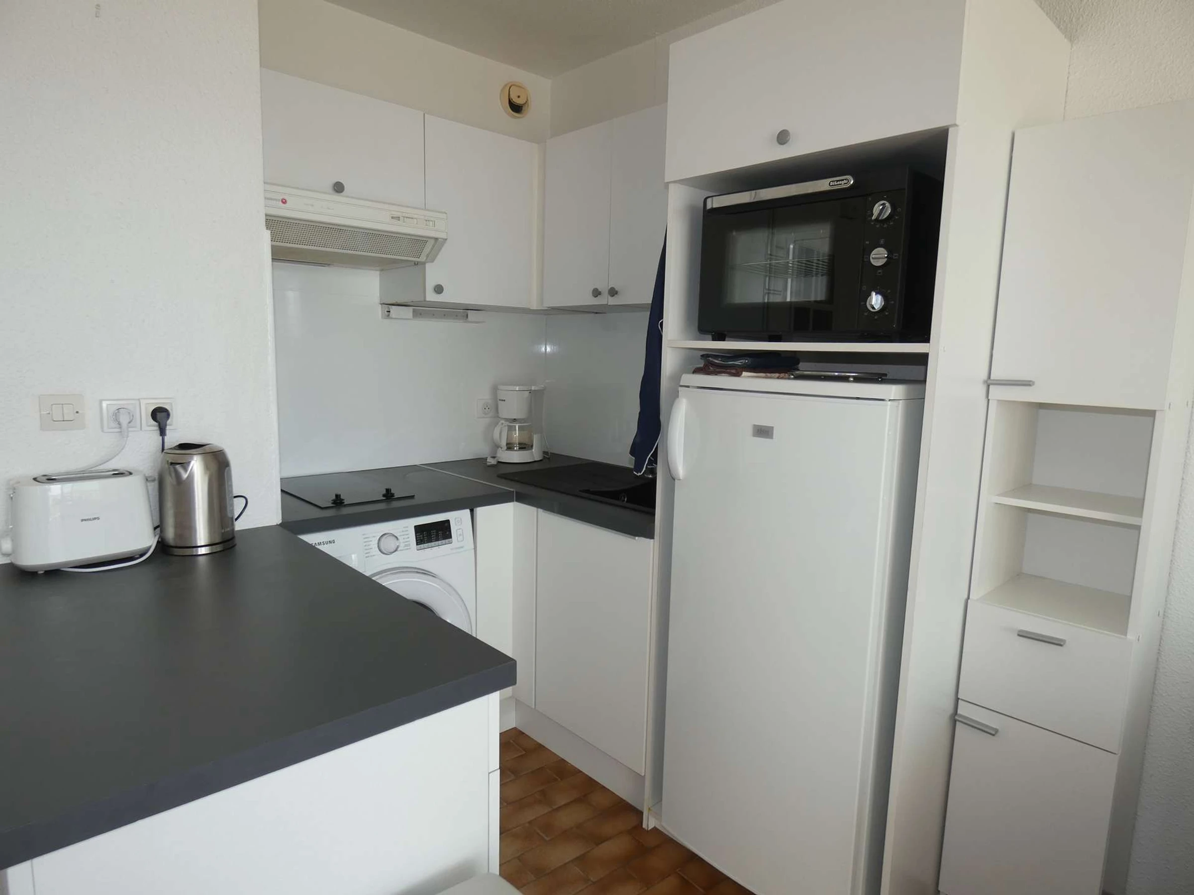 CONFORT: 2 plaques électriques, lave linge, maxi four et four micro-ondes, télévision, 2 transats, parasol.