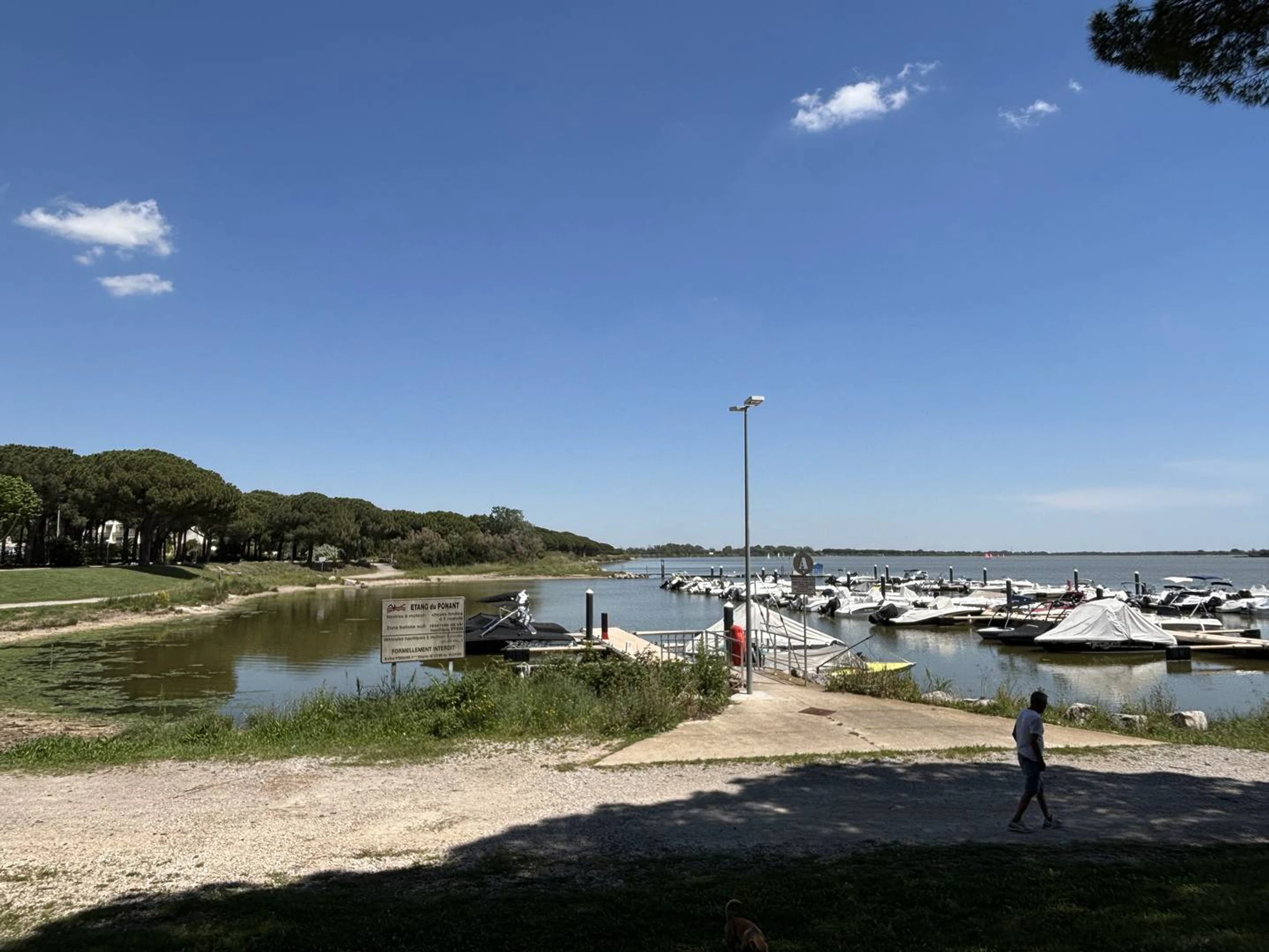 Se situe aux portes de la petite Camargue, à 900m de la mer Méditerranée et 50m de l'étang du Ponant et du Golf. A 25 km de Montpellier et 15 km de l'aéroport. A 8 km du Grau du Roi.