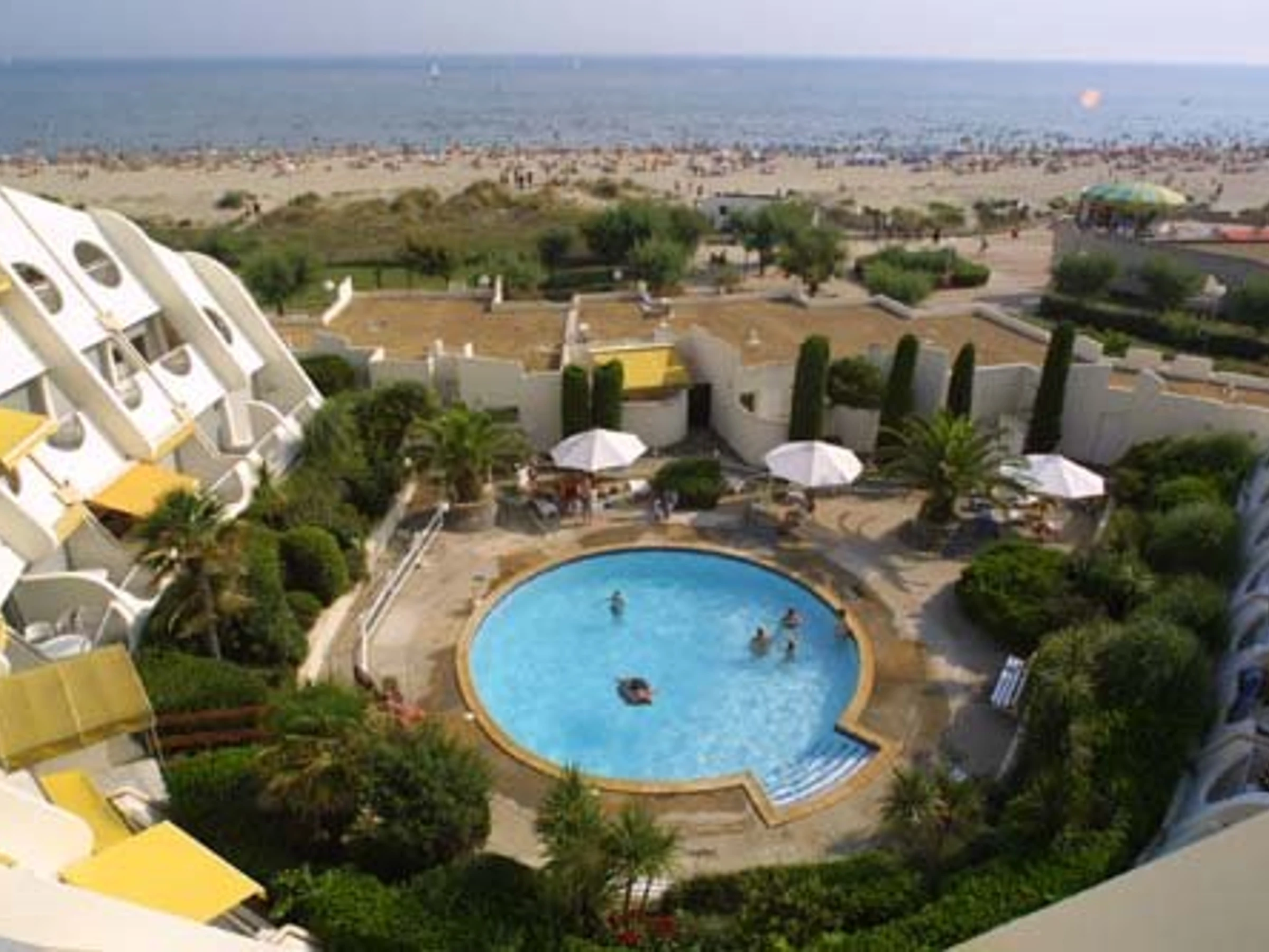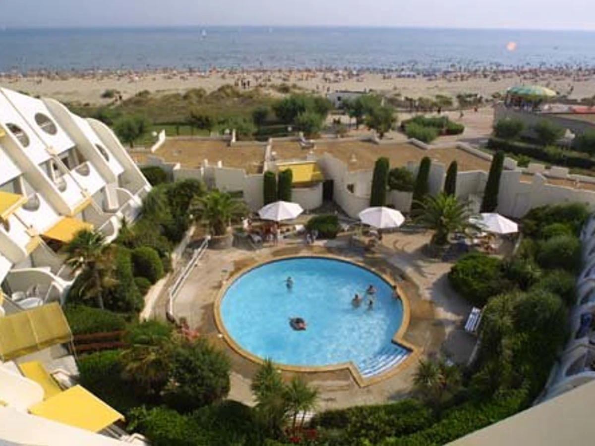 Résidence avec piscine, sur la plage, à 100 m des commerces, quartier calme et verdure, concierge.