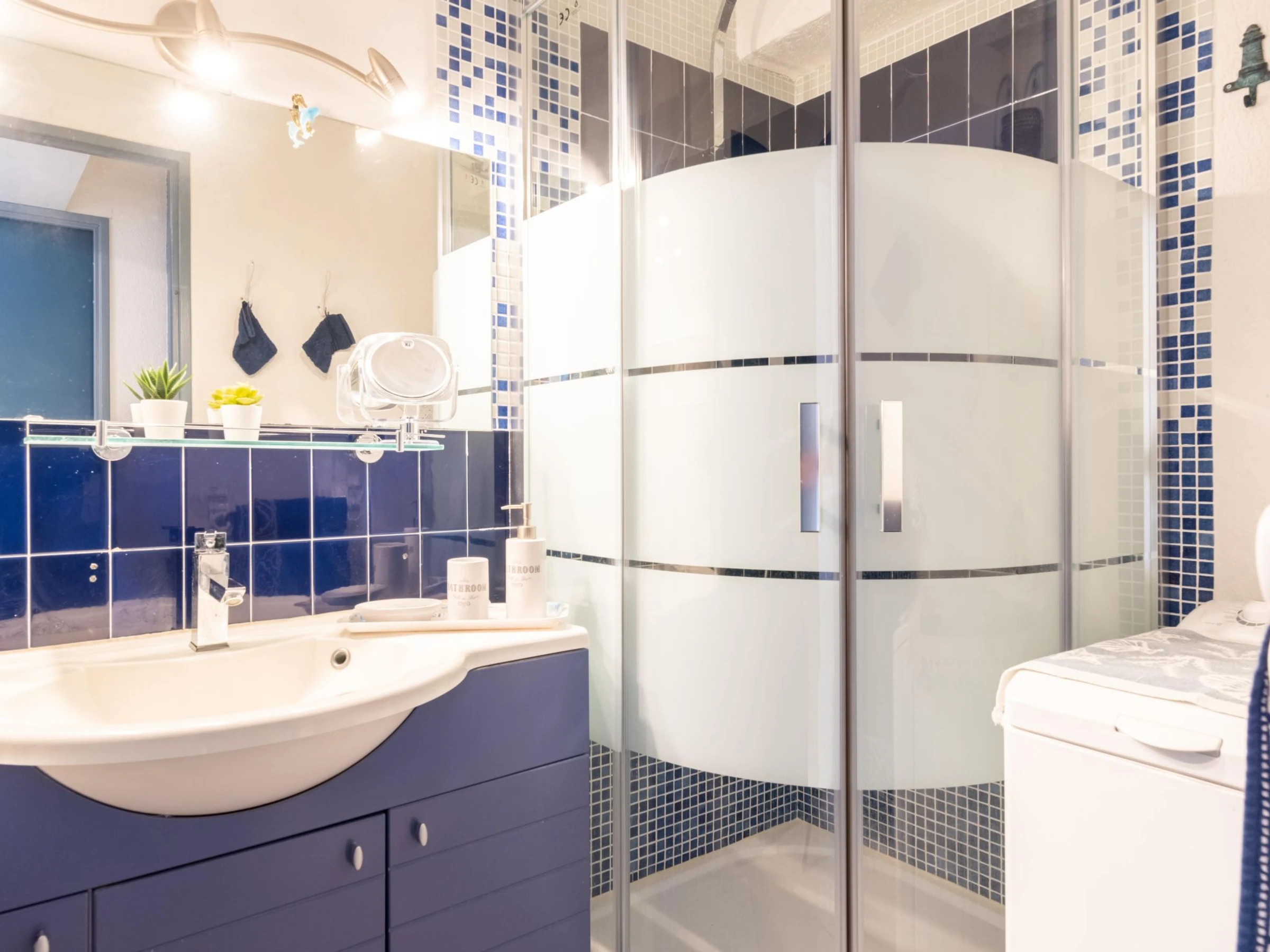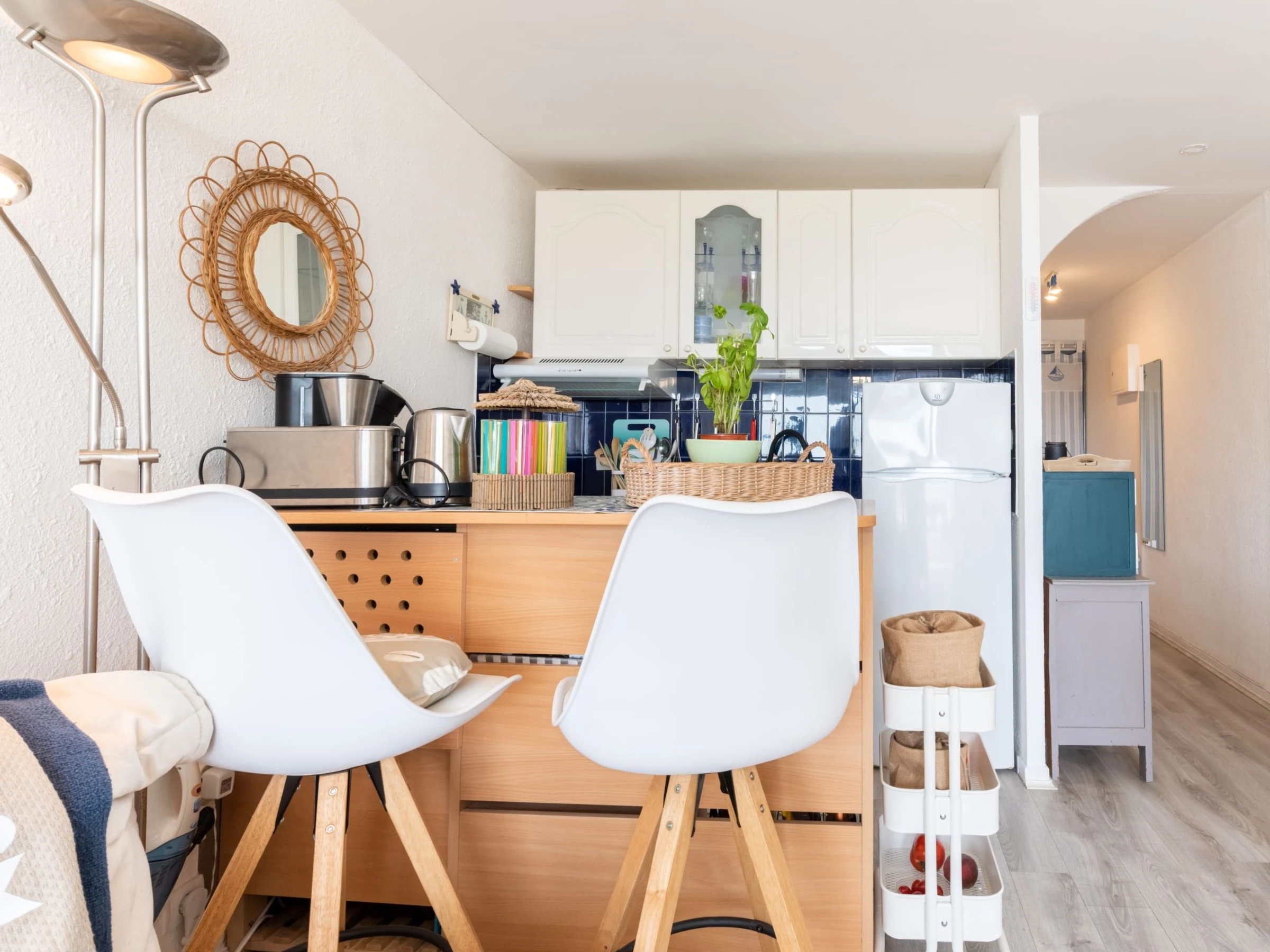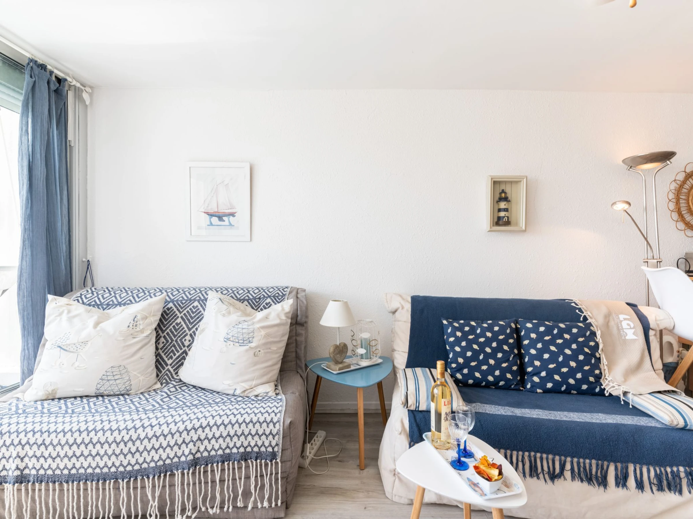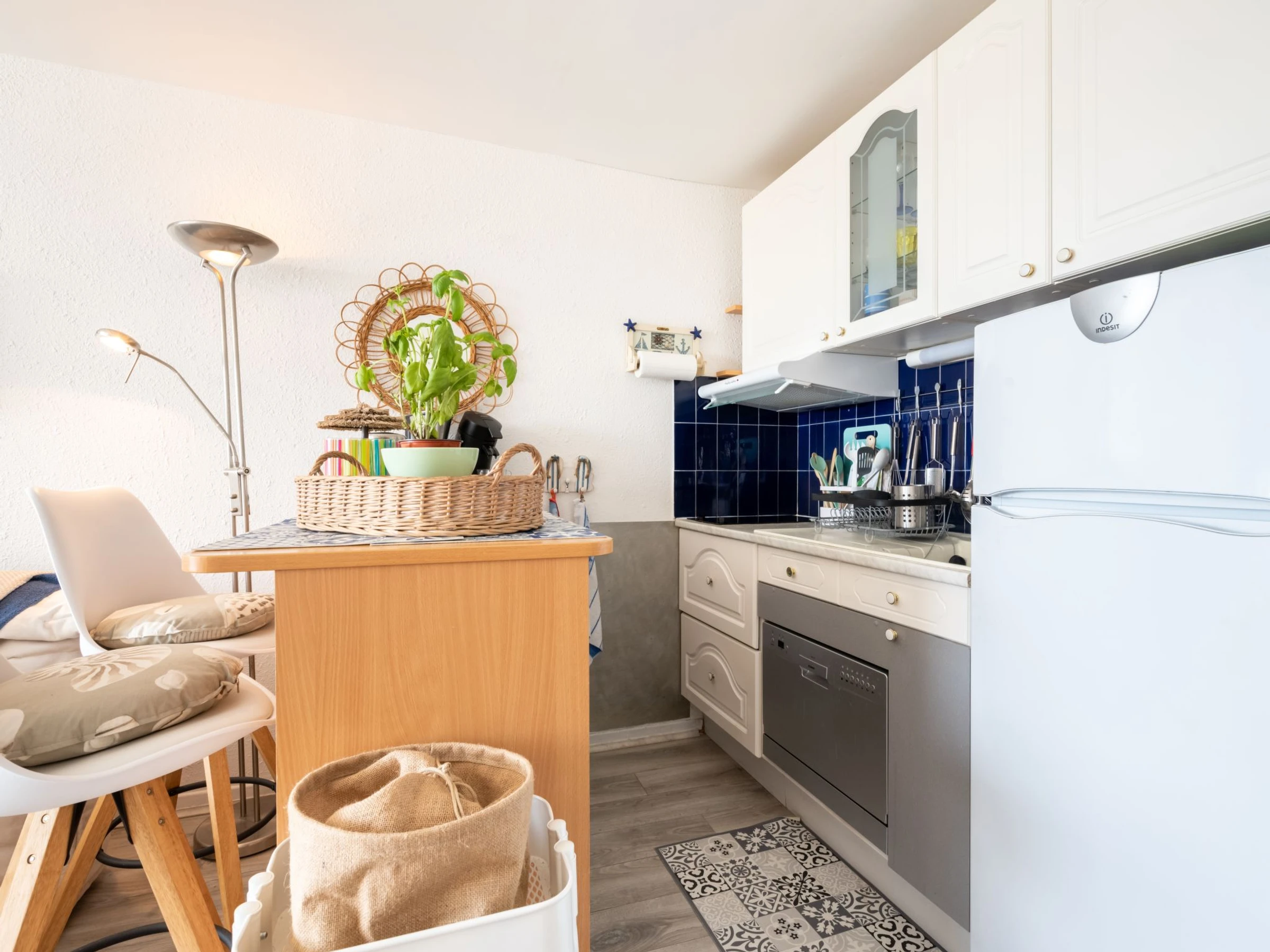 Studio 29 m2 au 2ème étage. Séjour/salle à manger avec 1 divan-lit double (140 cm, longueur 190 cm), TV (écran plat), air-conditionné et chauffage à air chaud. Coin cuisine (lave-vaisselle, 2 plaques vitrocéramiques, grille-pain, bouilloire électrique, congélateur, cafetière électrique, combiné micro-ondes). Douche, WC séparé. Terrasse 6 m2, situation sud-ouest. Meubles de terrasse. Vue sur la mer et le jardin. A disposition: lave-linge. Internet (Connexion WIFI, en sus). Veuillez noter: pas de parking. Détecteur de fumée.