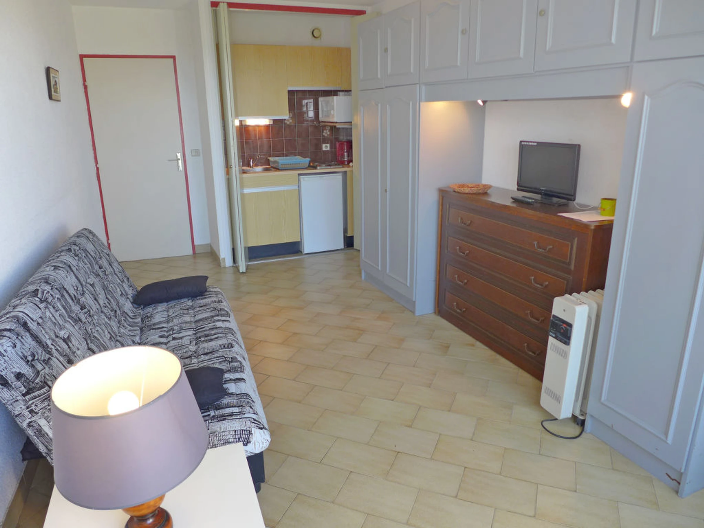 Studio 19 m2 au 1er étage. Séjour avec 1 divan-lit double (130 cm), TV (écran plat). Coin cuisine (2 plaques de cuisson, combiné micro-ondes). Douche/WC. Terrasse 6 m2. Meubles de terrasse. Belle vue sur la mer. Place de parking. Services supplémentaires obligatoires sur le site: Taxe de séjour enfants (par personne et par jour), Taxe de séjour 0.83EUR par personne et par jour, Taxe de séjour bébés (0-2) (par personne et par jour)