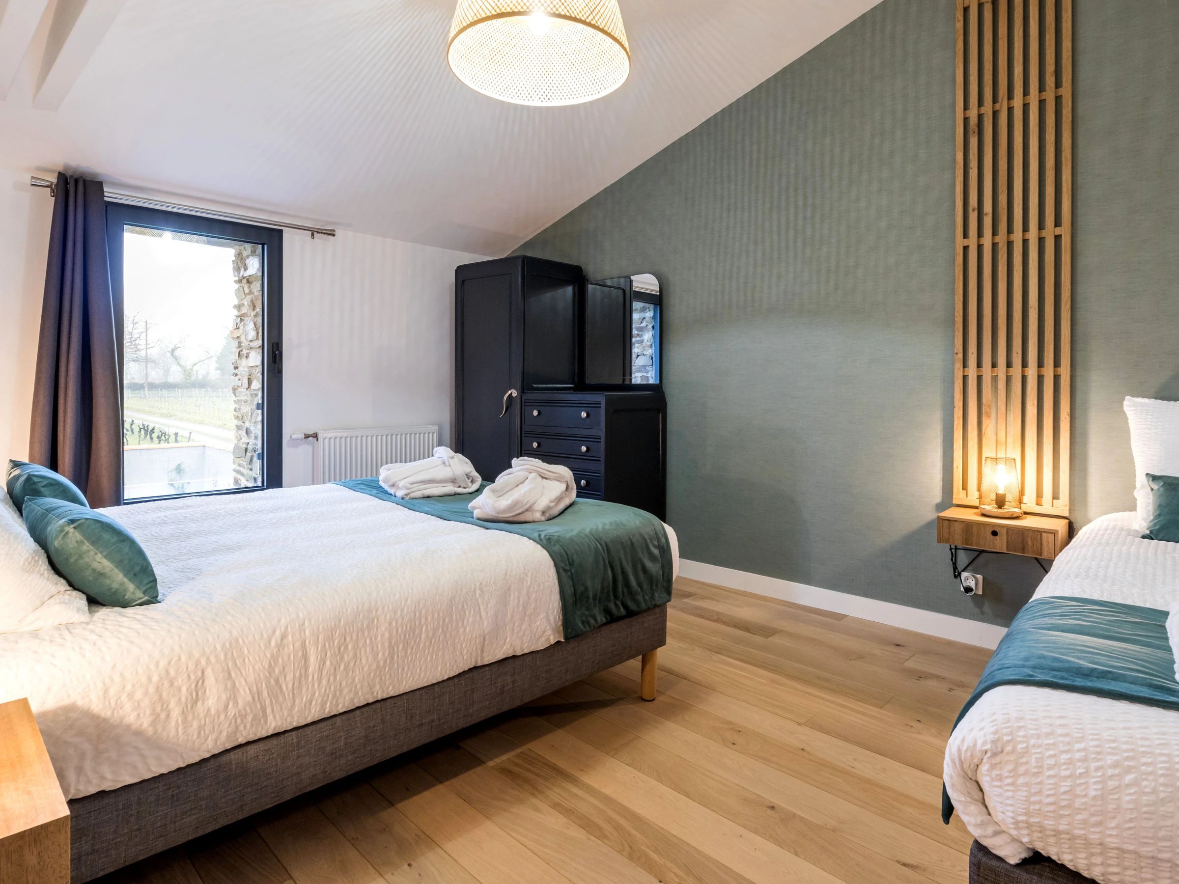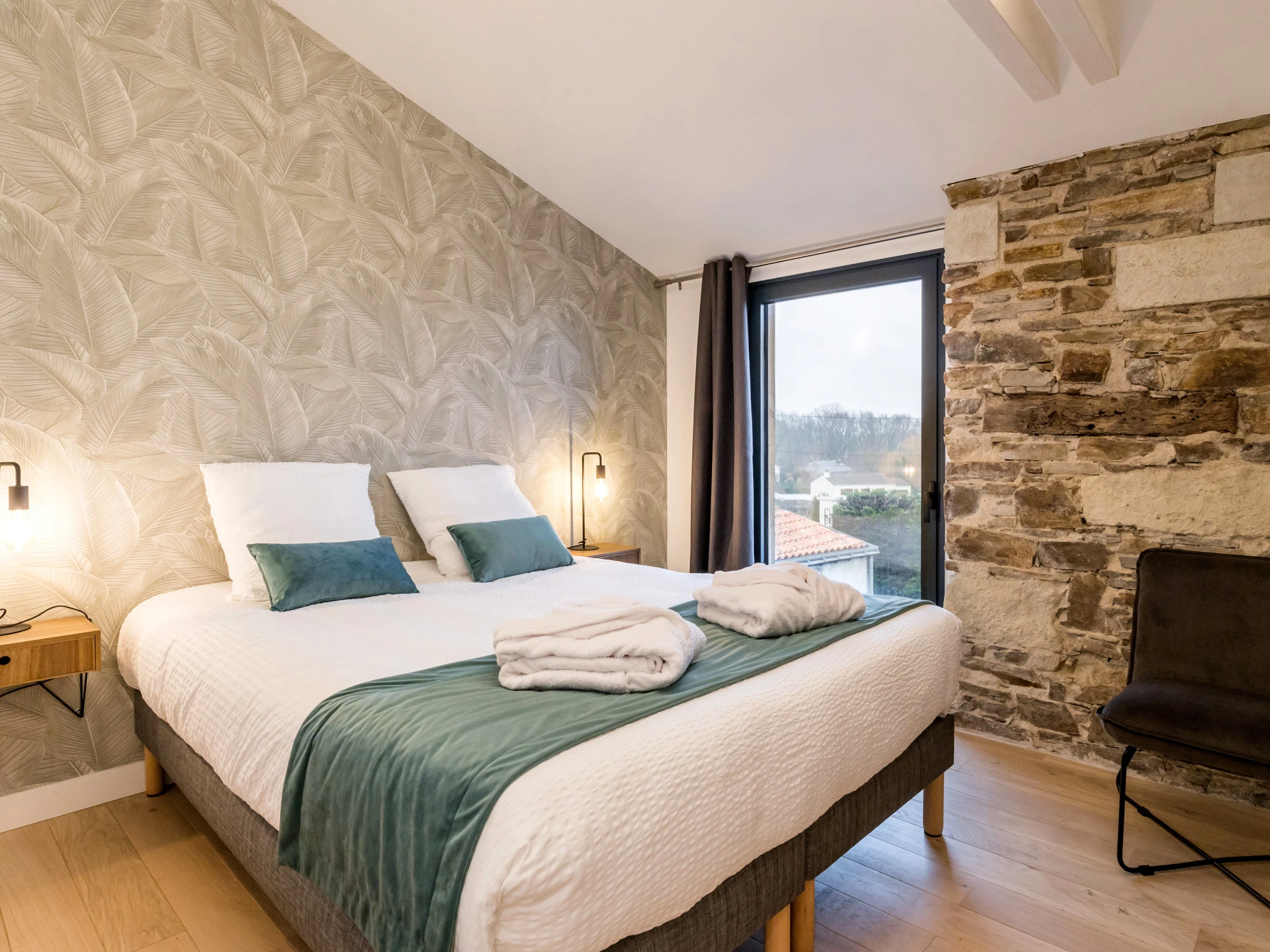 A 15 km de Nantes et de Clisson, au calme et entourée par les vignes, Sylvie et Frédéric, vignerons, vous accueillent dans cette ancienne grange du domaine viticole du Château de la Bretonnerie, entièrement rénovée par un architecte et répartie en 2 gîtes indépendants communicant par une double porte intérieure.