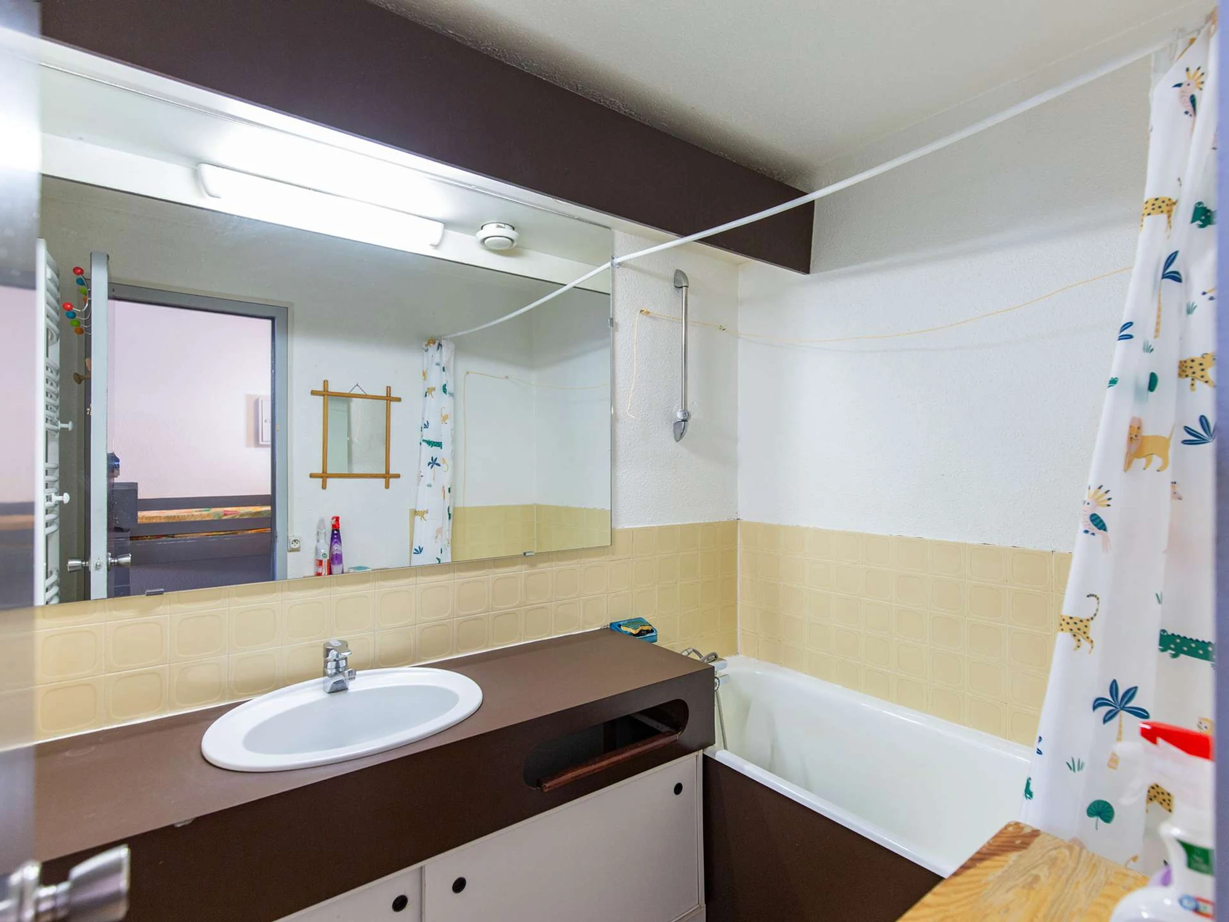 Studio situé au 2ème étage avec ascenseur, balcon, exposition Ouest (vue sur la station et les pistes). Séjour équipé d’une télévision, d’un canapé lit deux personnes et une banquette. Coin cabine avec trois lits superposés en 70cm.