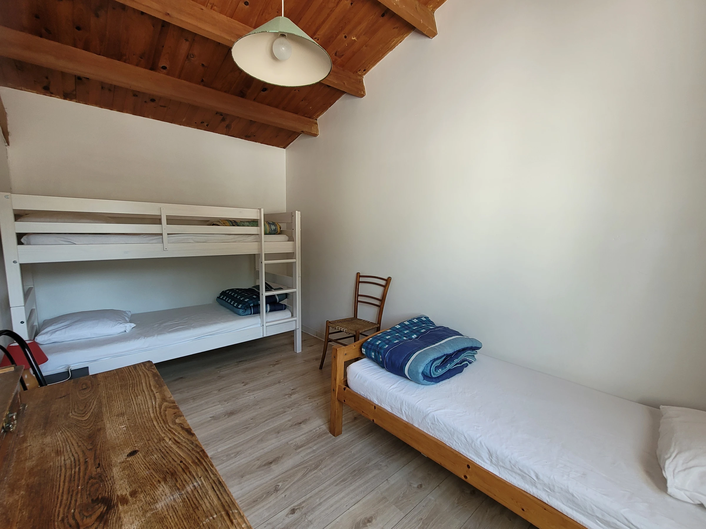 1 chambre avec 3 lits de 90, couette et placard (dont 2 superposés)