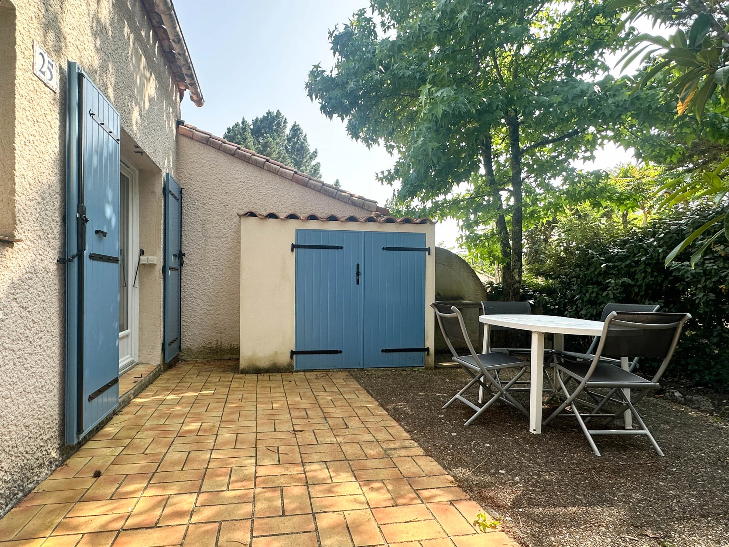 Terrasse avec cabanon et mobilier de jardin (table et chaises) - Barbecue électrique - Parking - Exposition Ouest - WIFI