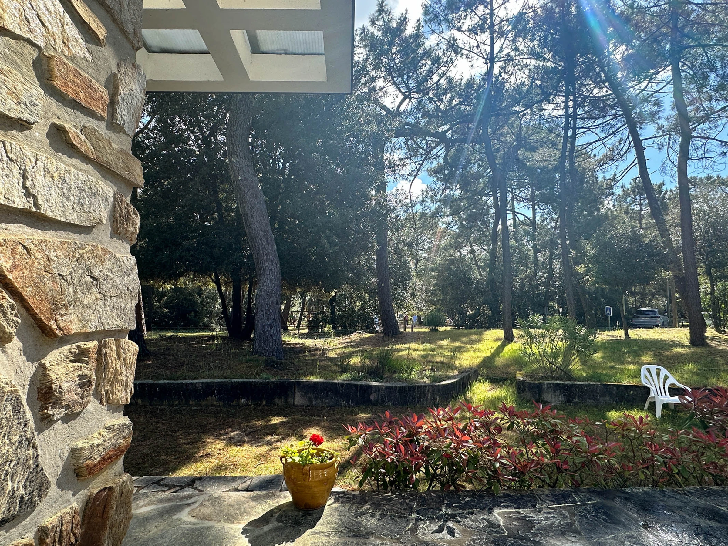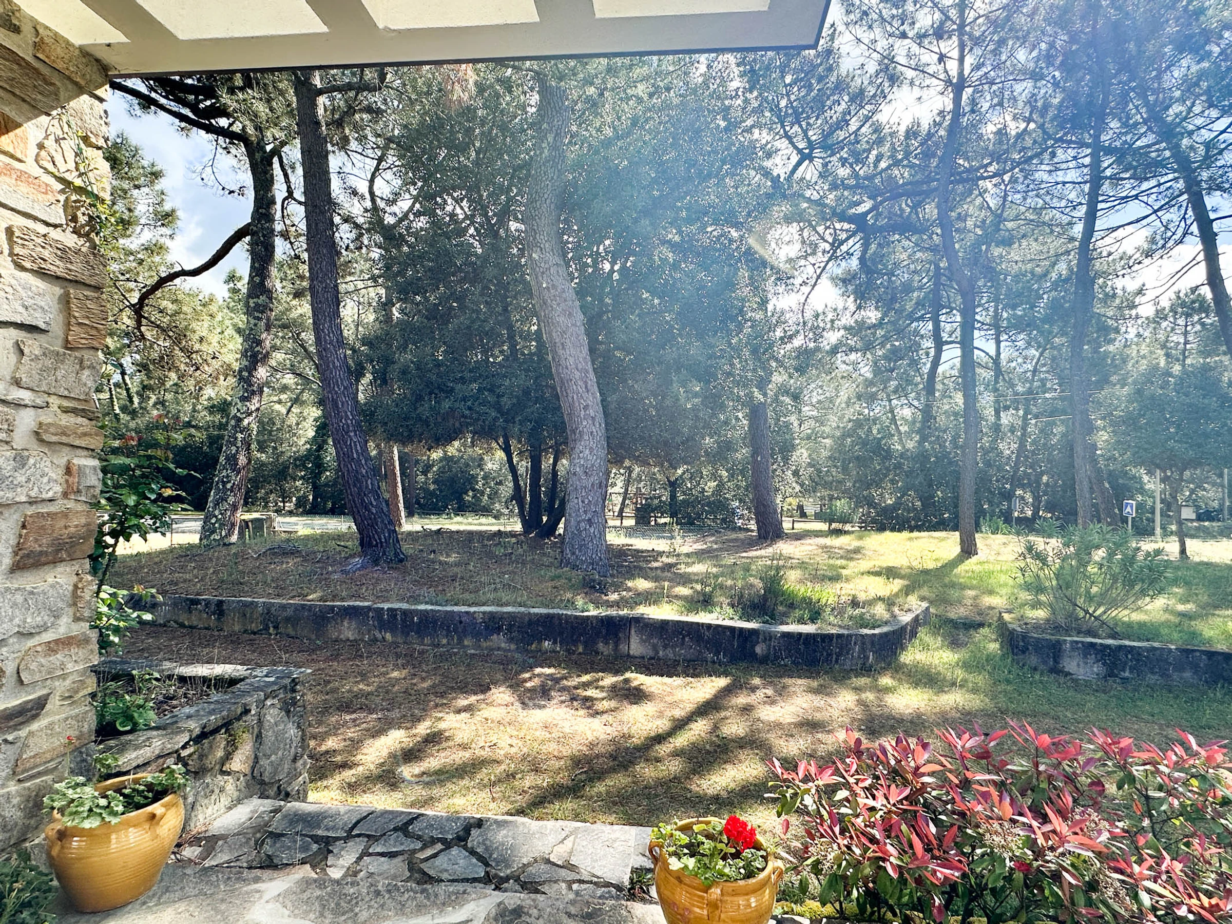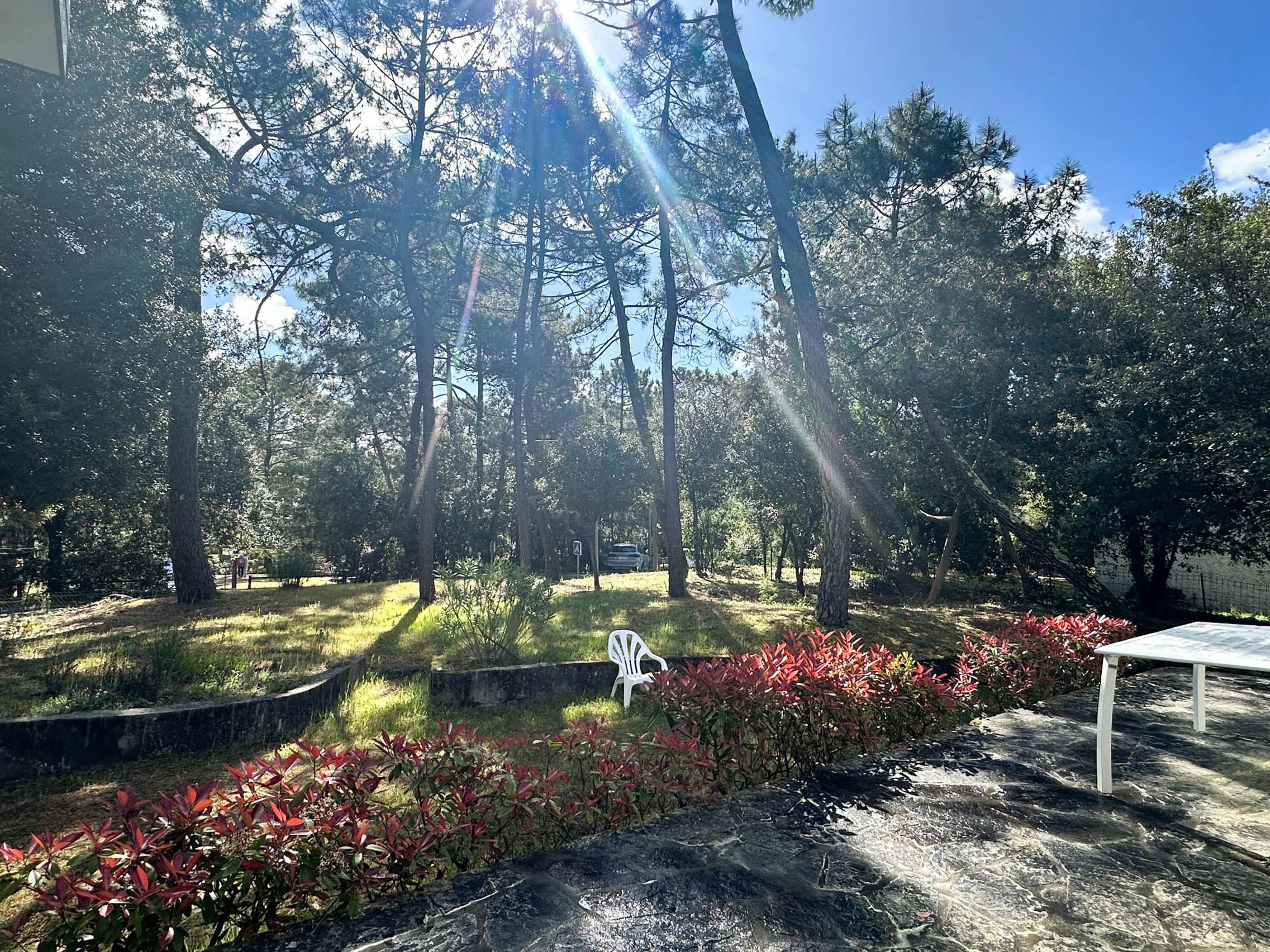 Spacieux jardin sous les pins, au calme, entièrement clos.