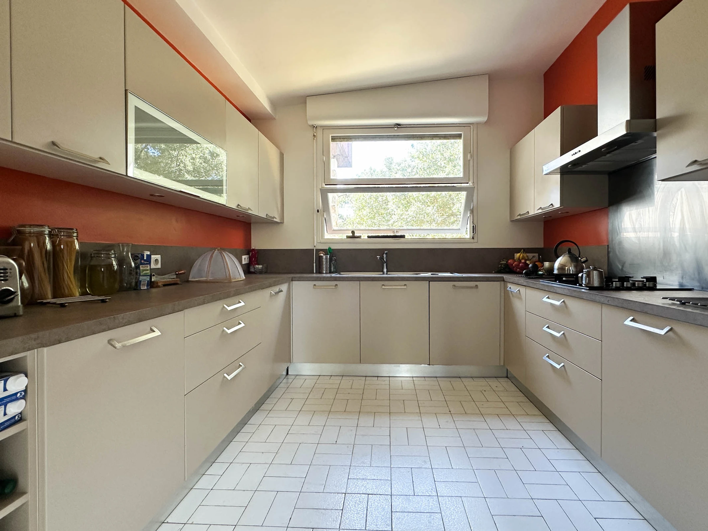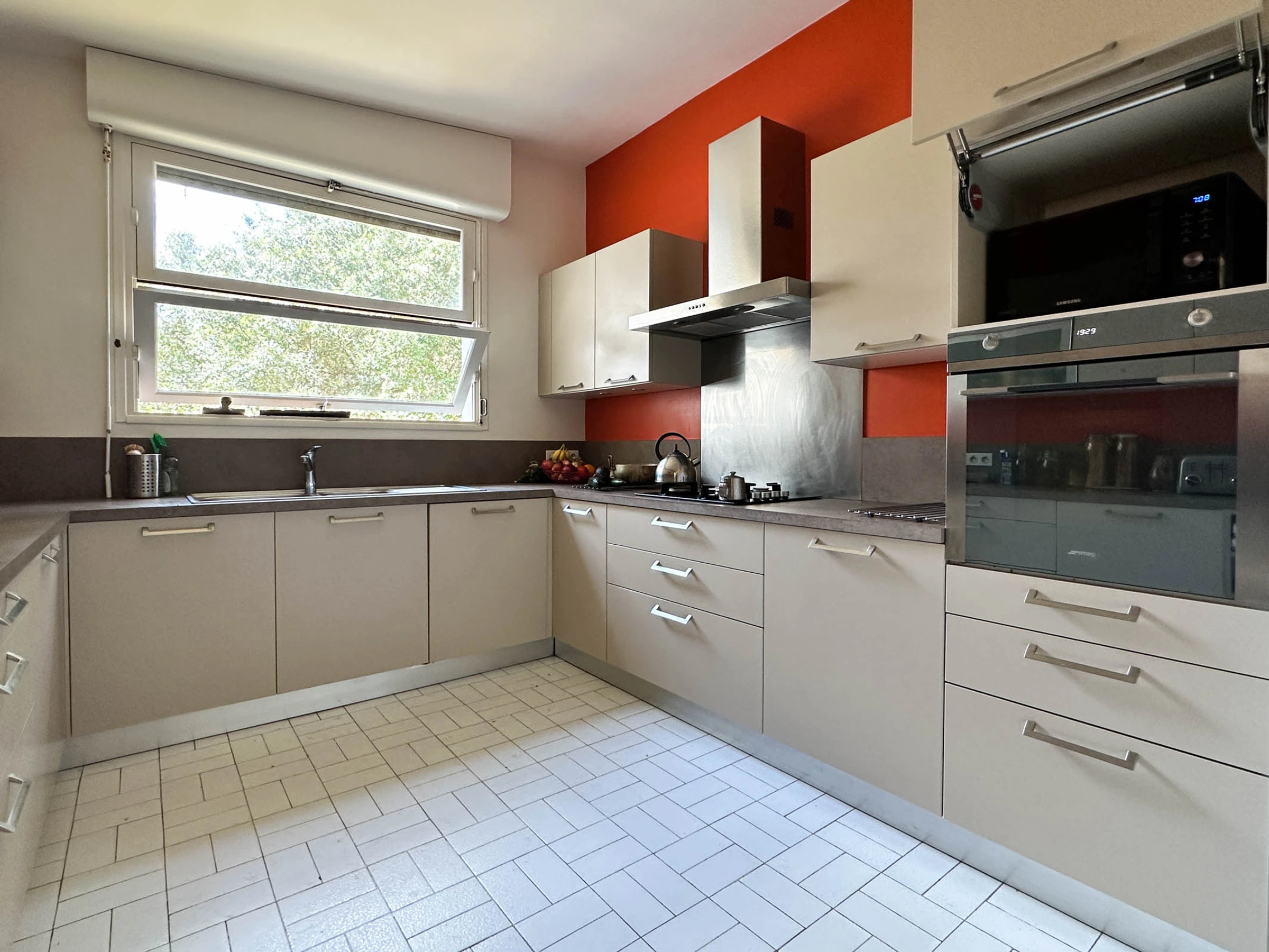 Cuisine séparée, aménagée et équipée : four, plaques gaz et électrique, hotte, lave-vaisselle, réfrigérateur et congélateur