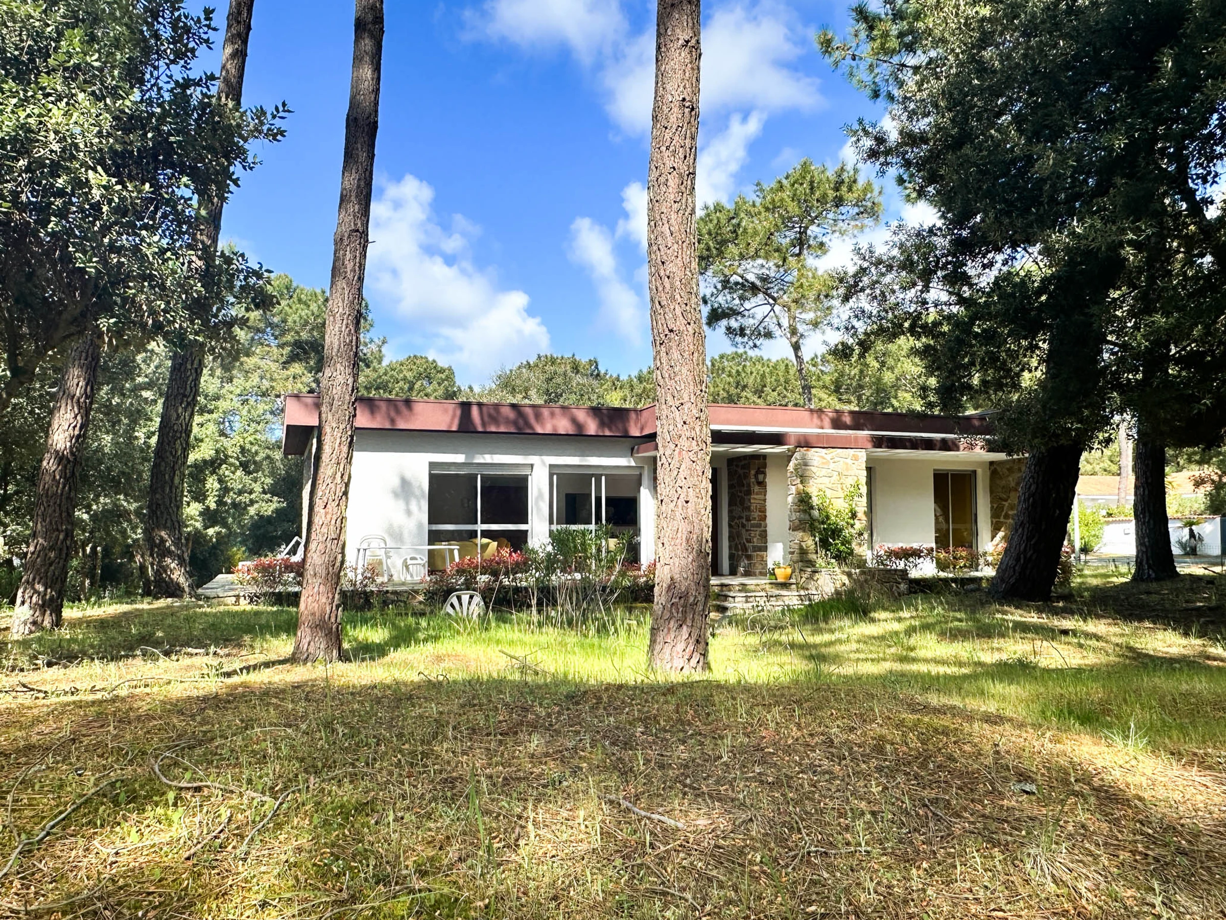 Au cœur de la pinède, cette résidence familiale est sécurisée par des barrières automatiques et un gardien.