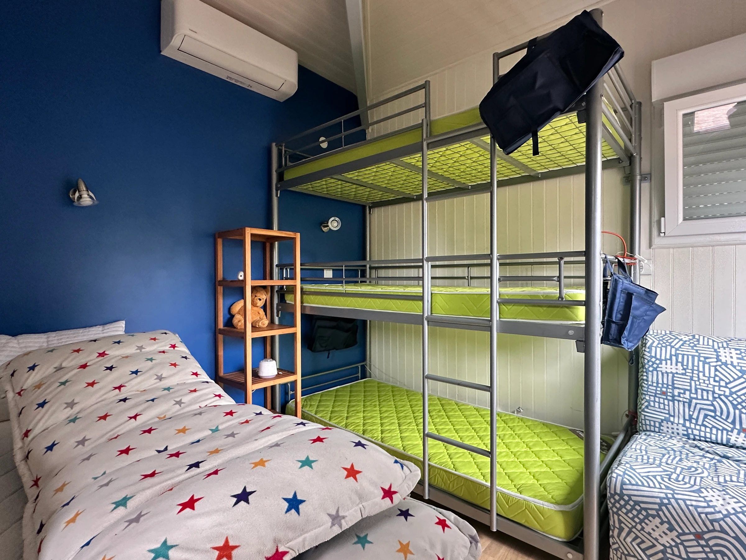 1 chambre avec 2 lit de 80 (pouvant être rapprochés pour 1 lit de 160) avec placard, salle d'eau privée