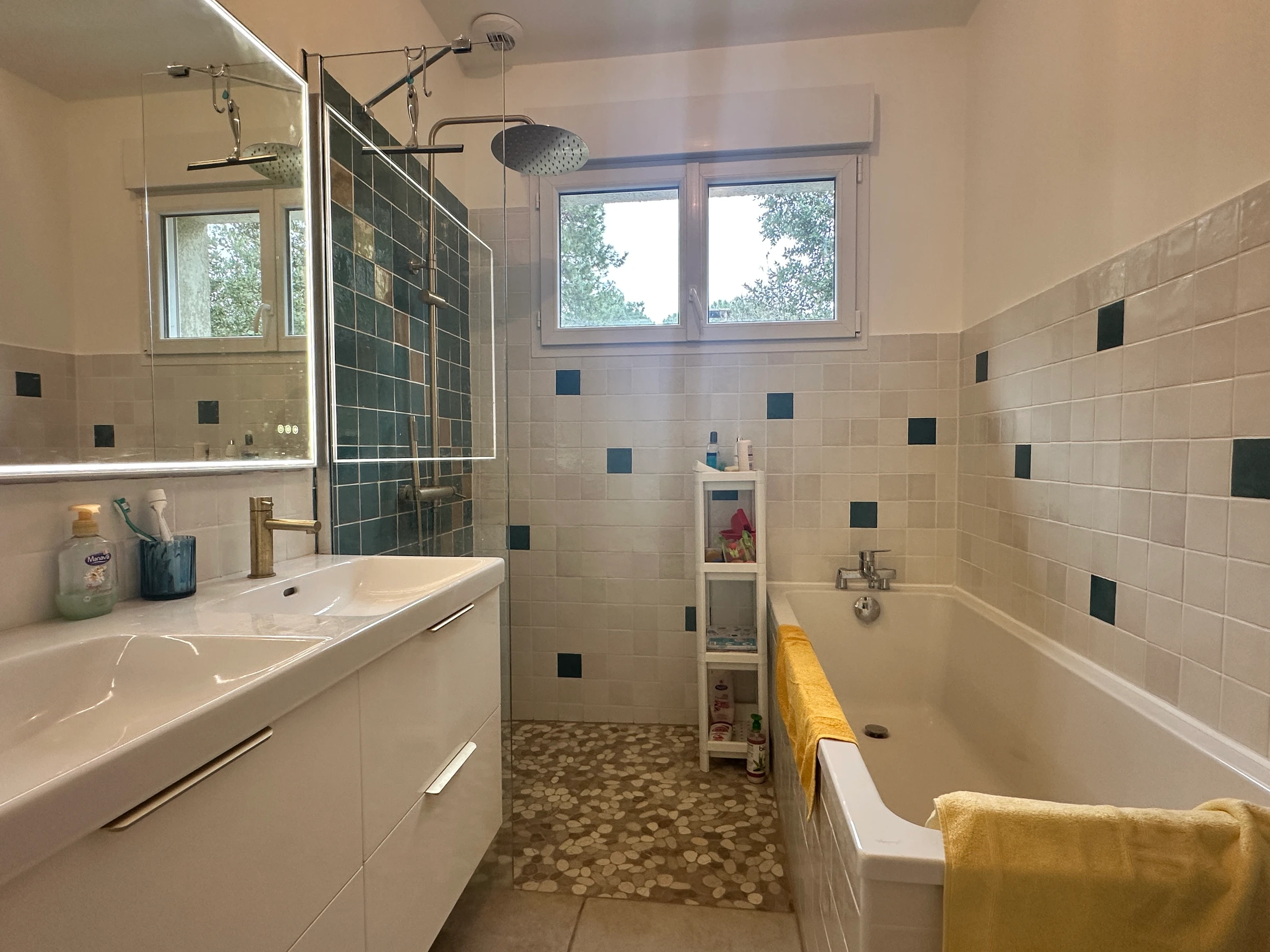 Terrasse avant exposée est et une terrasse arrière donnant sur la piscine exposée ouest.