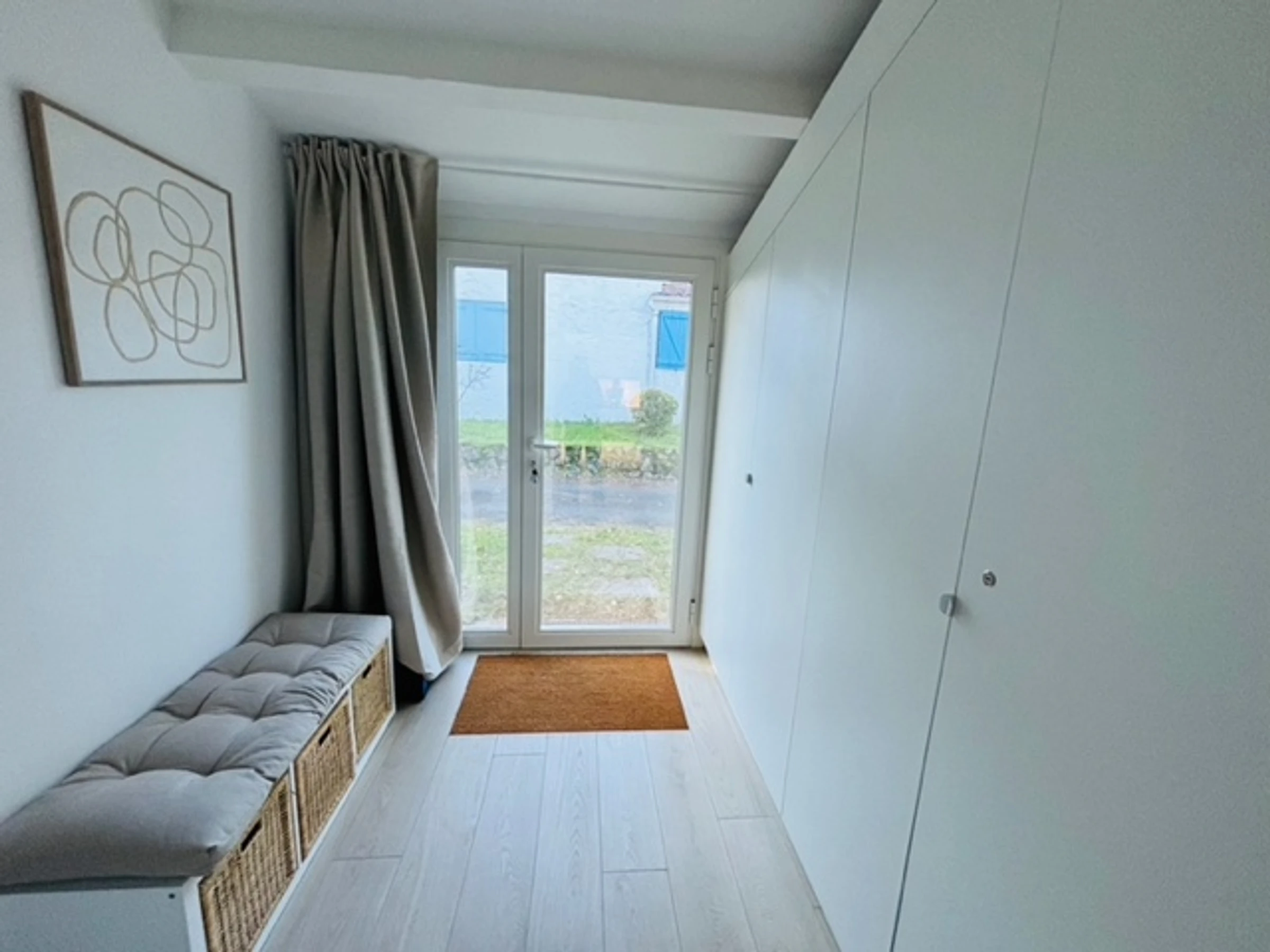 -1 chambre avec 2 lits de 90 (ou 1x180) avec placard (étagère ou penderie)