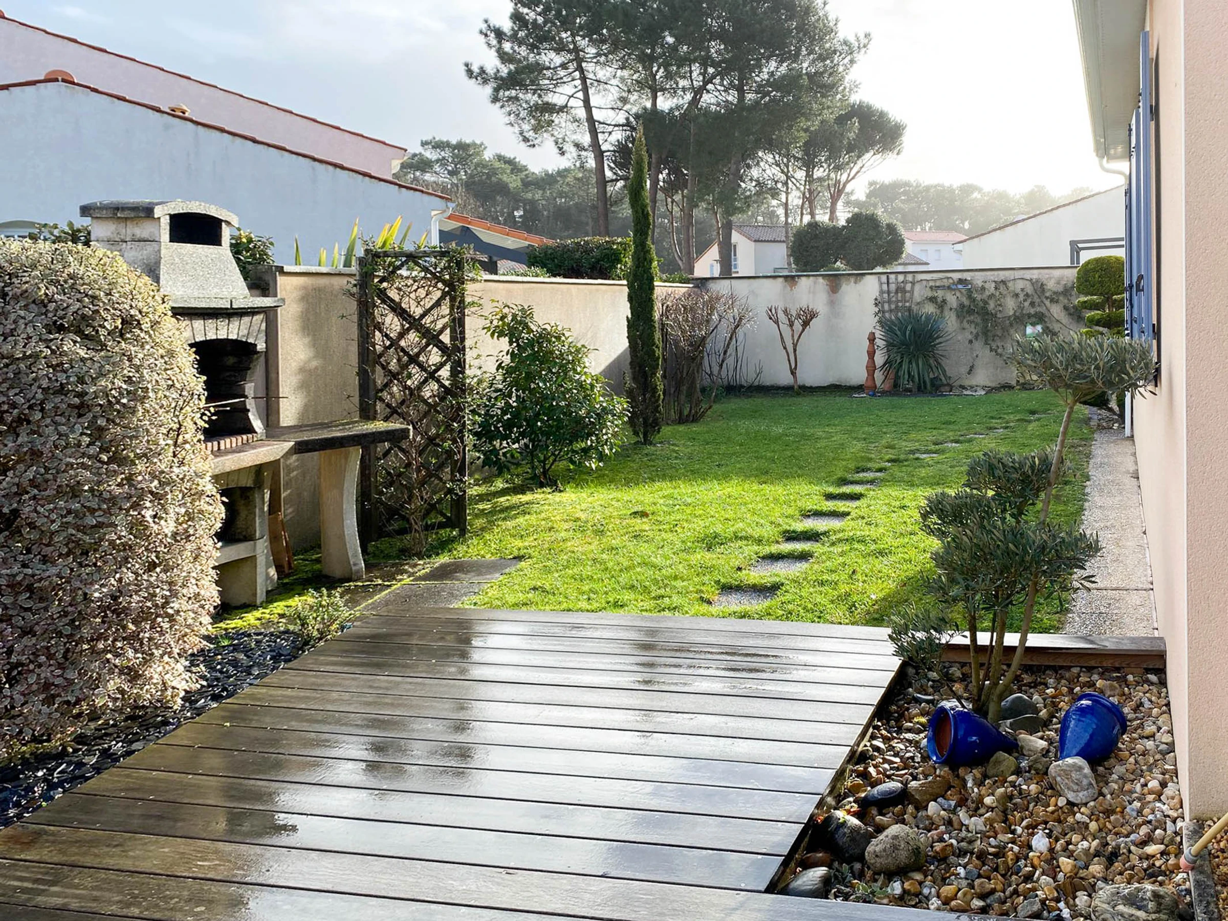 JARDIN CLOS - TERRASSE COUVERTE - SALON DE JARDIN - BARBECUE - TERRASSE BOIS - PARKING -