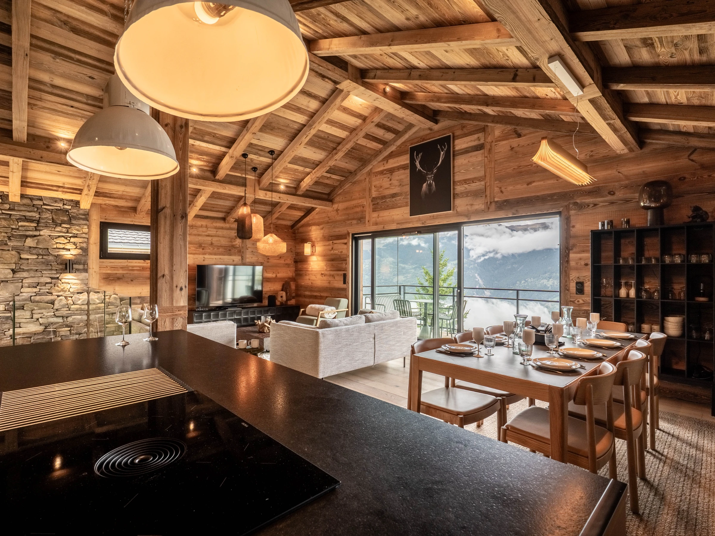NOUVEAU ! SPLENDIDE !! Ce magnifique chalet neuf de 6 pièces se situe sur les hauts de La Plagne Montalbert. En lisière de forêt, il est situé proche des pistes, et de l'arrêt navette afin de se rendre facilement sans voiture dans le centre station. Chalet spacieux sur 2 niveaux, avec 3 places de parking adjacentes, un ski-room, un ski-boots avec sèche chaussures, deux balcons et une terrasse offrant de magnifiques vues dégagées sur les montagnes, du massif du Beaufortain au Mont-Blanc. Charme et confort pour des vacances de rêve ! Vous serez conquis par la décoration authentique et familiale alliant matériaux modernes, pierre de pays et vieux bois.