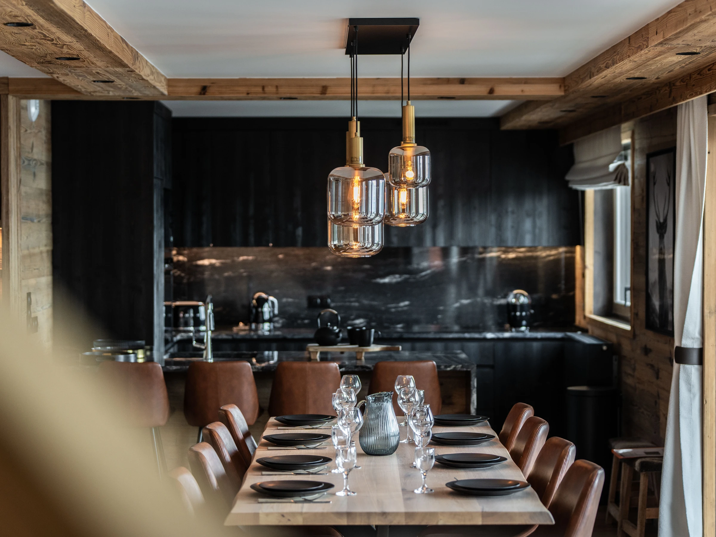 Une cuisine ouverte entièrement équipée pour préparer des repas conviviaux: lave-vaisselle, plaques induction, four, micro-onde, réfrigérateur, grille-pain, bouilloire électrique, machine nespresso, appareils à raclette/ fondue, mixeur...