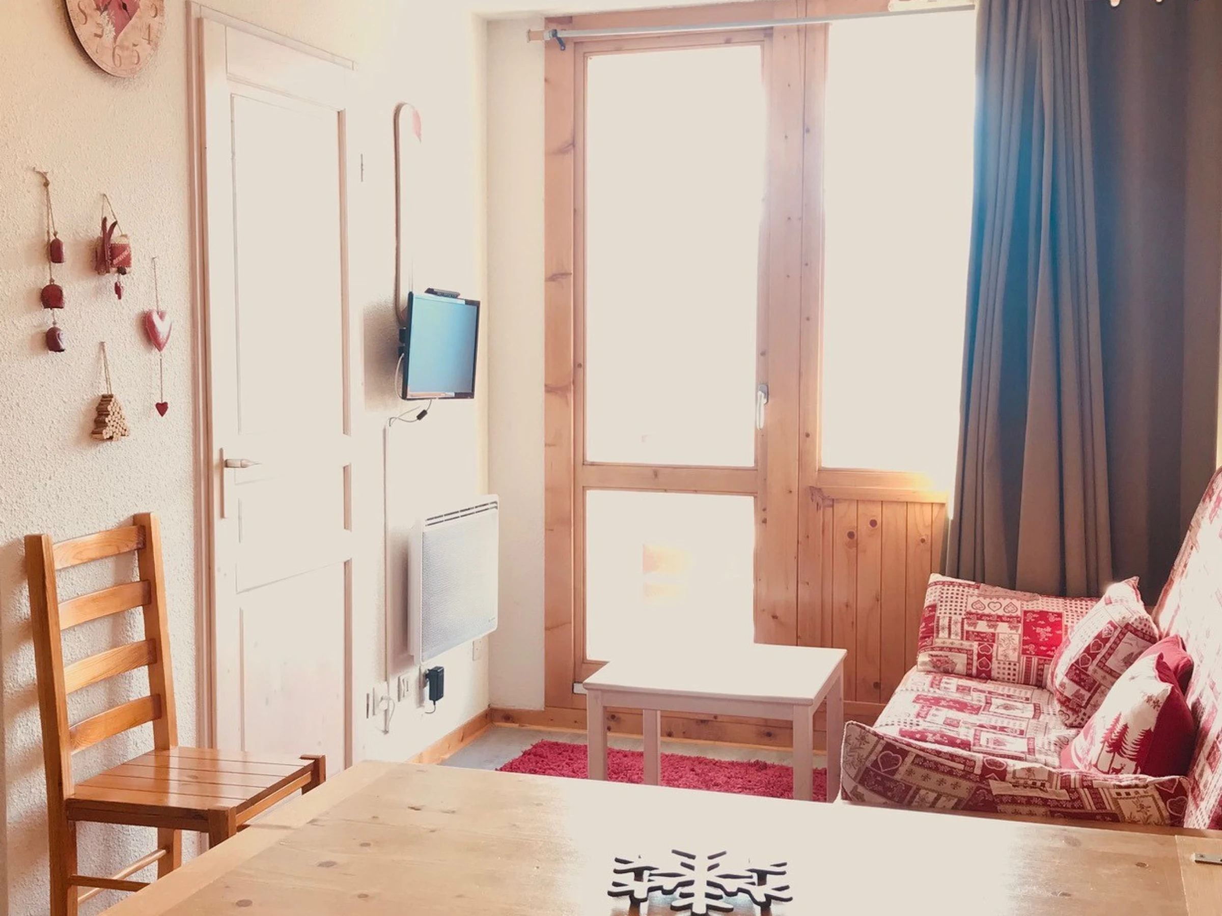 Résidence "Le Chanteloup", sur les pistes, au calme, appartement agréable et rénové de 26m2, pour 4 personnes, au 1er étage sans ascenseur avec balcon vue sur la vallée et possédant un casier à skis individuel au RDC (couloir côté pistes).