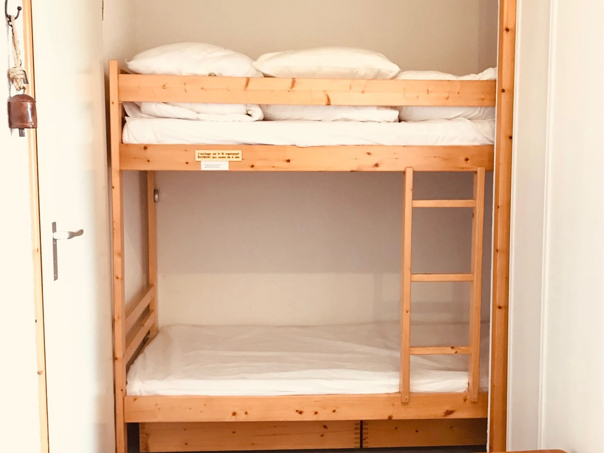 Un coin montagne accueille 2 lits superposés (ne convient pas aux enfants de moins de 6ans) et un placard de rangement. La chambre dispose d'un lit double.