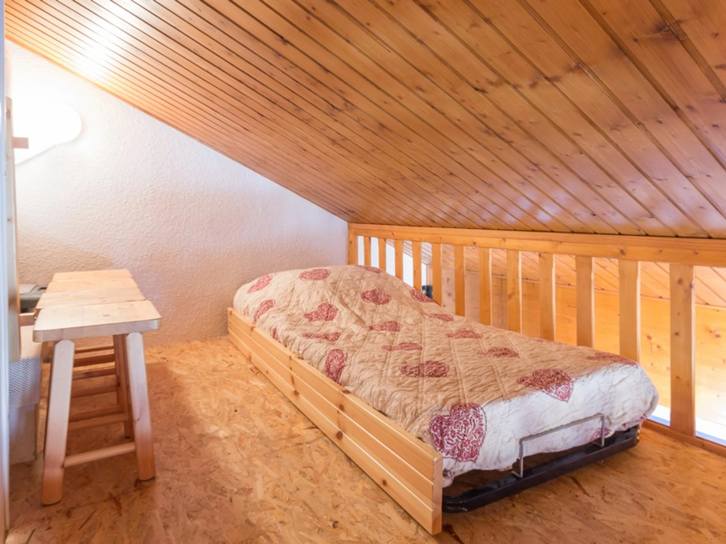 Situé dans la résidence "Les Plaisances", près de pistes et proche de l'accès des commerces, appartement type 2 pièces mezzanine en sous pente, 30m2, pour 5 personnes, au 4ème étage sans ascenseur, disposant d'un balcon exposé Sud-Ouest et d'un casier à skis individuel au RDC.