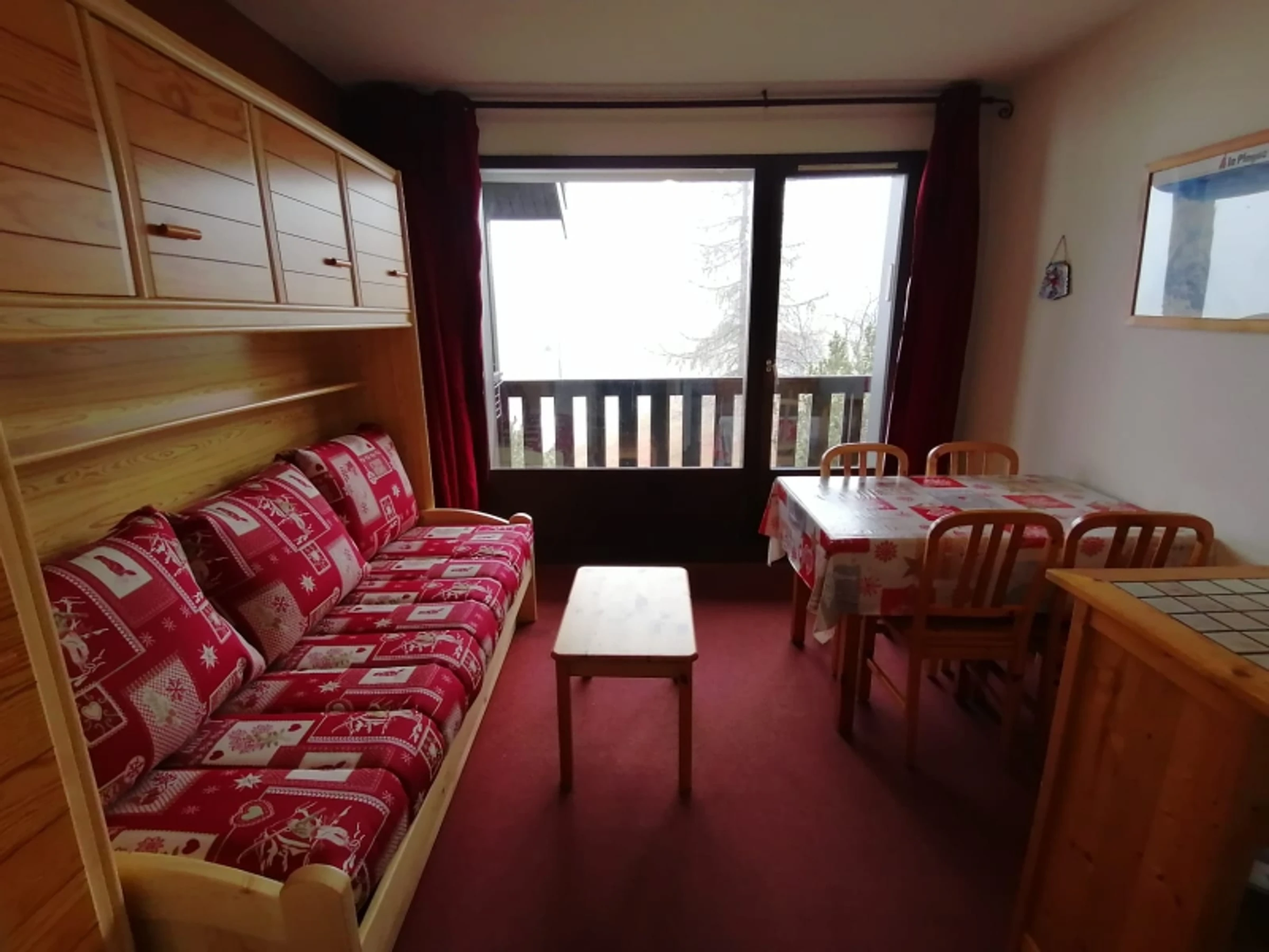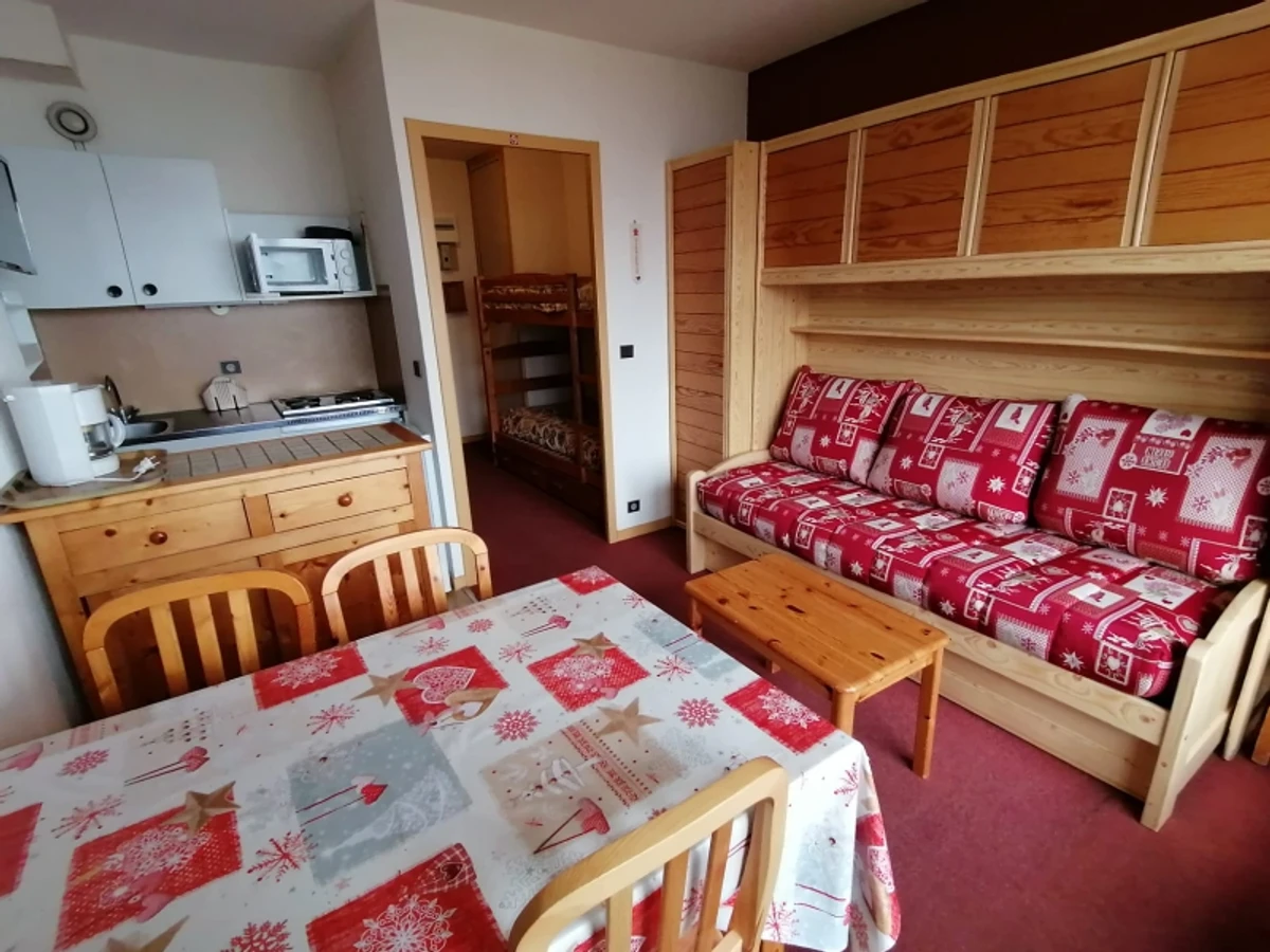 Studio proche télécabines avec banquette lit et casier à skis