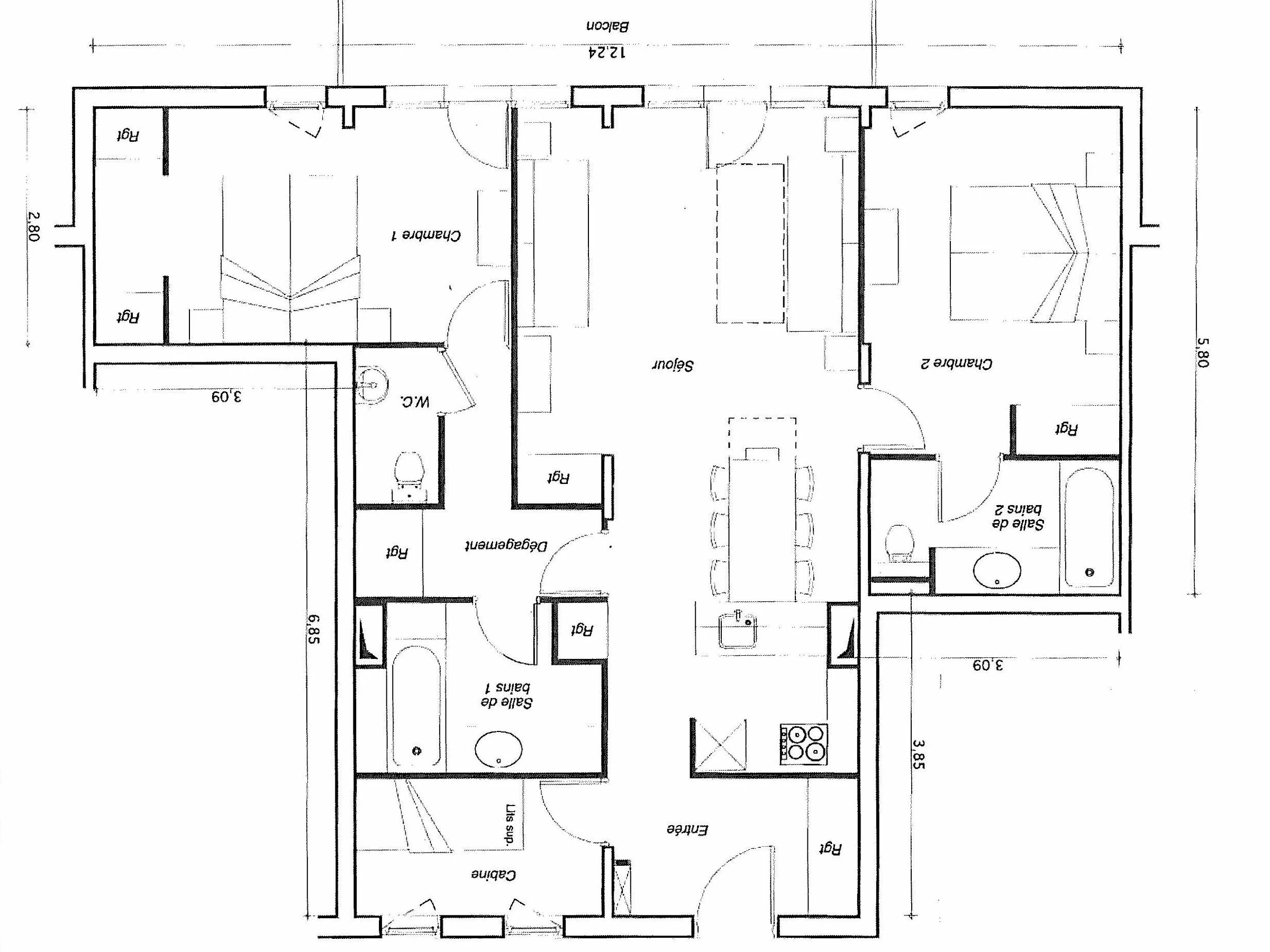 Appartement 4 pièces, en très bon état, équipé pour 8 personnes d'environ 80 m², exposé nord-ouest avec balcon, vue vallée et Mont Blanc, au 4ème étage côté balcon et rez-de-chaussée côté entrée.