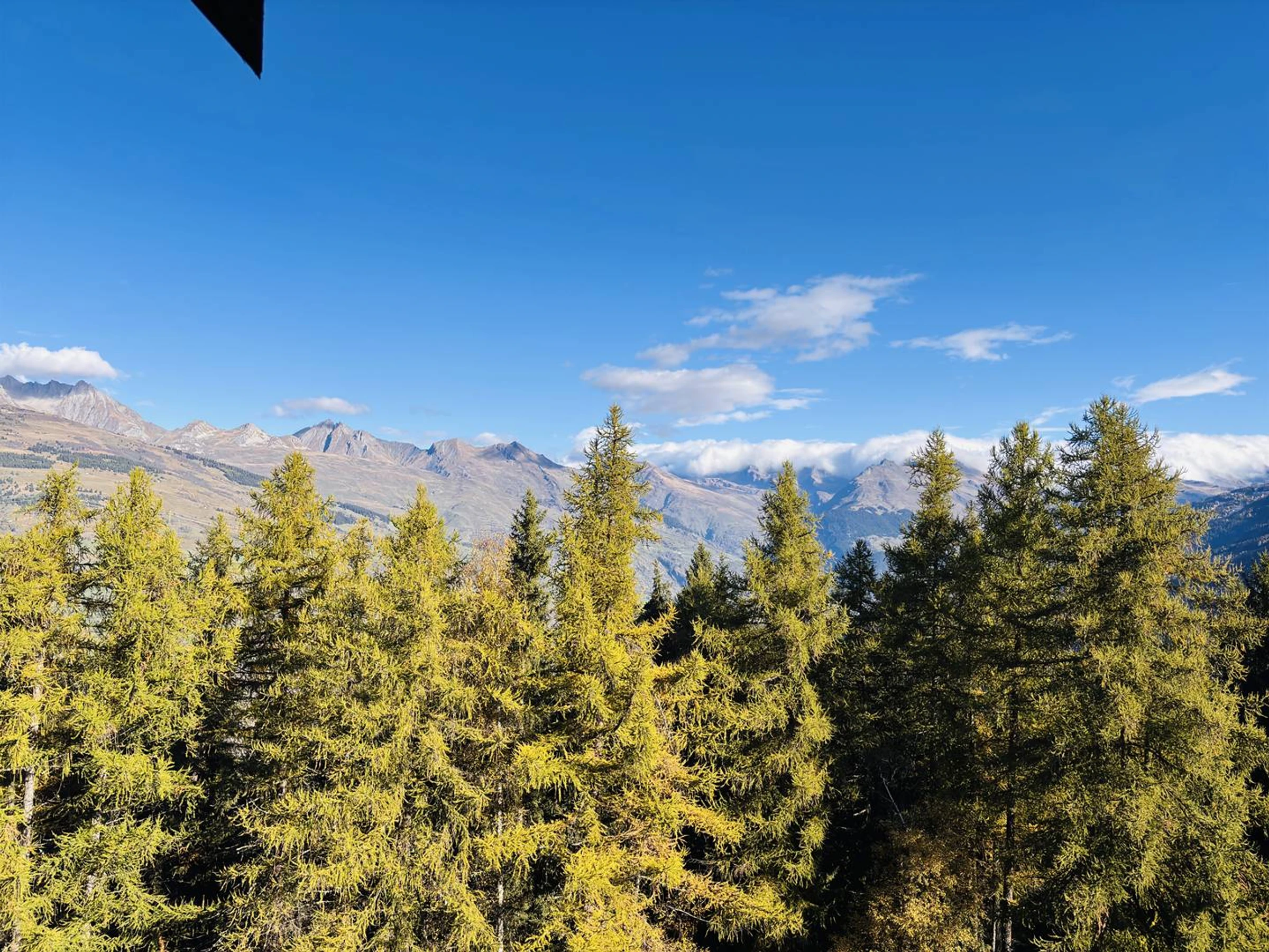 Le balcon avec vue sur le Mont Blanc est exposé Nord. Le casier à skis est dans la résidence