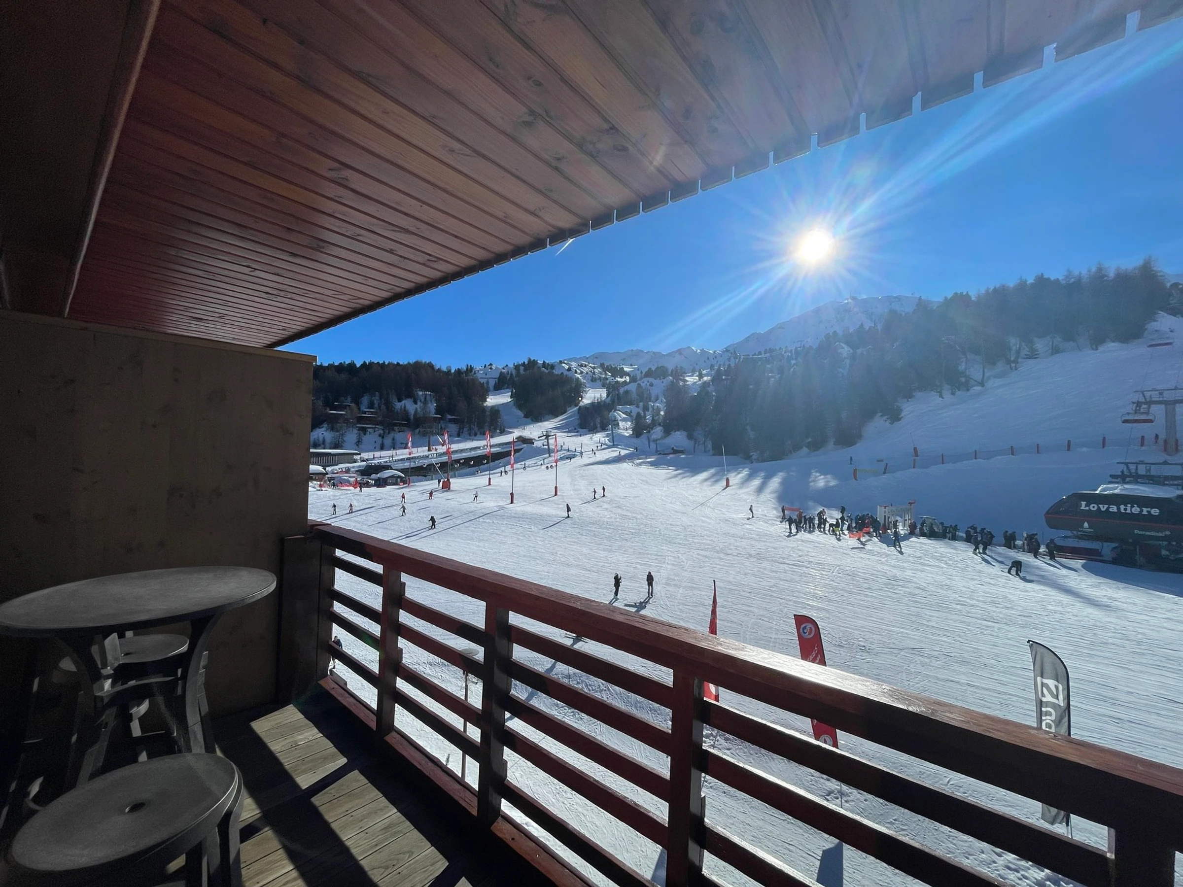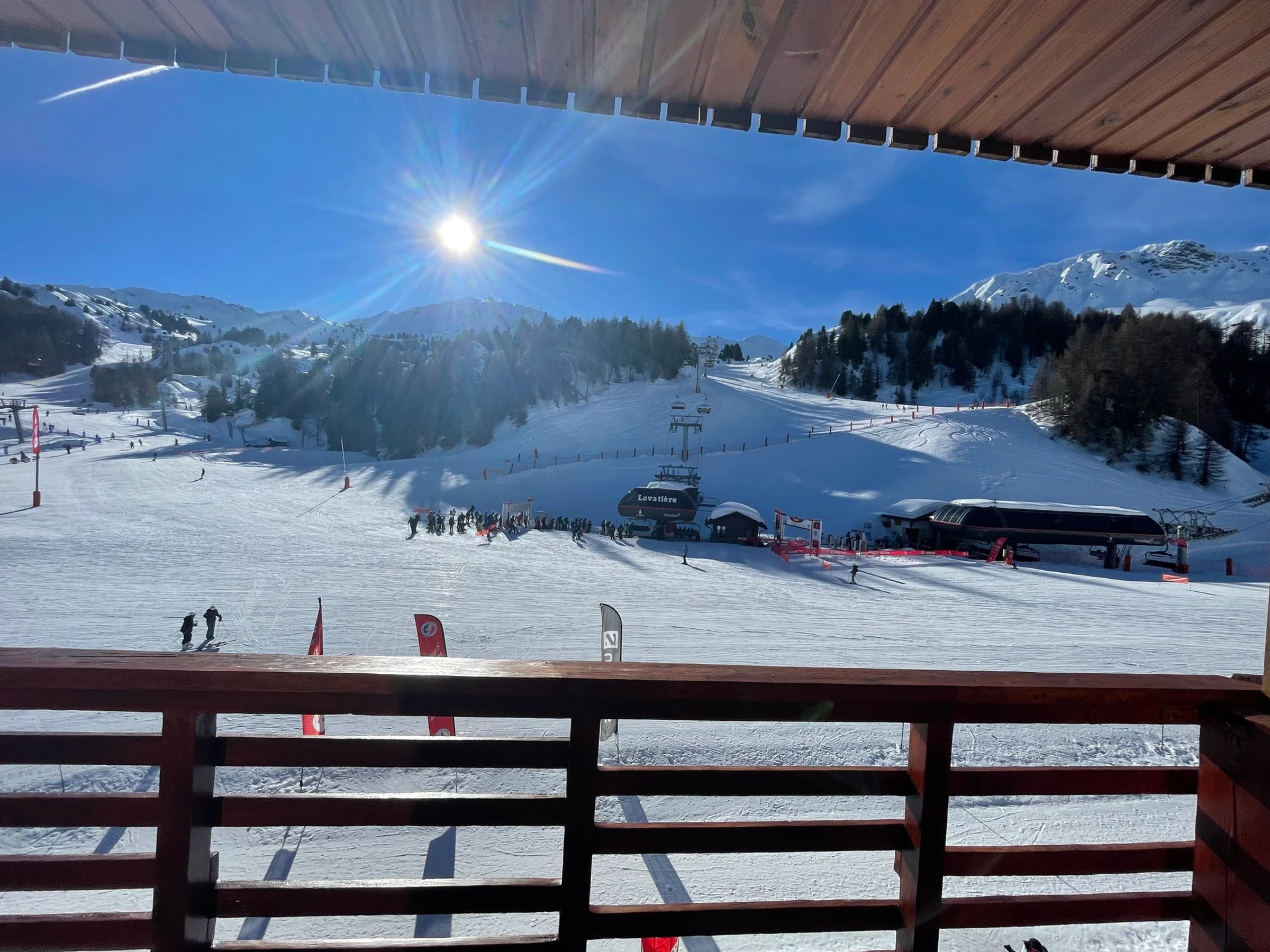 Situé dans la Résidence Nanda Devi II à Plagne Centre, appartement tout équipé avec vue sur les pistes et sur le front de neige.