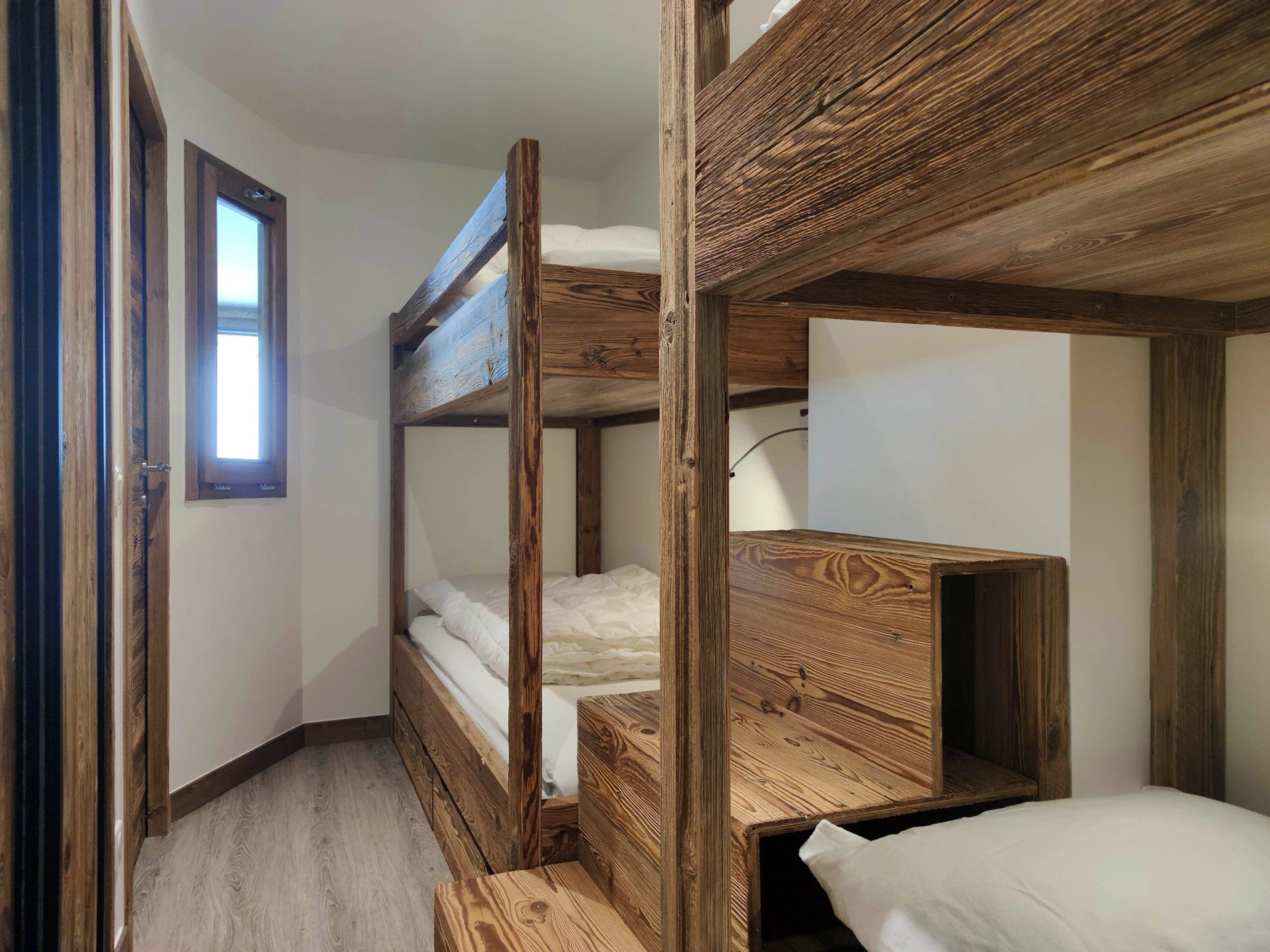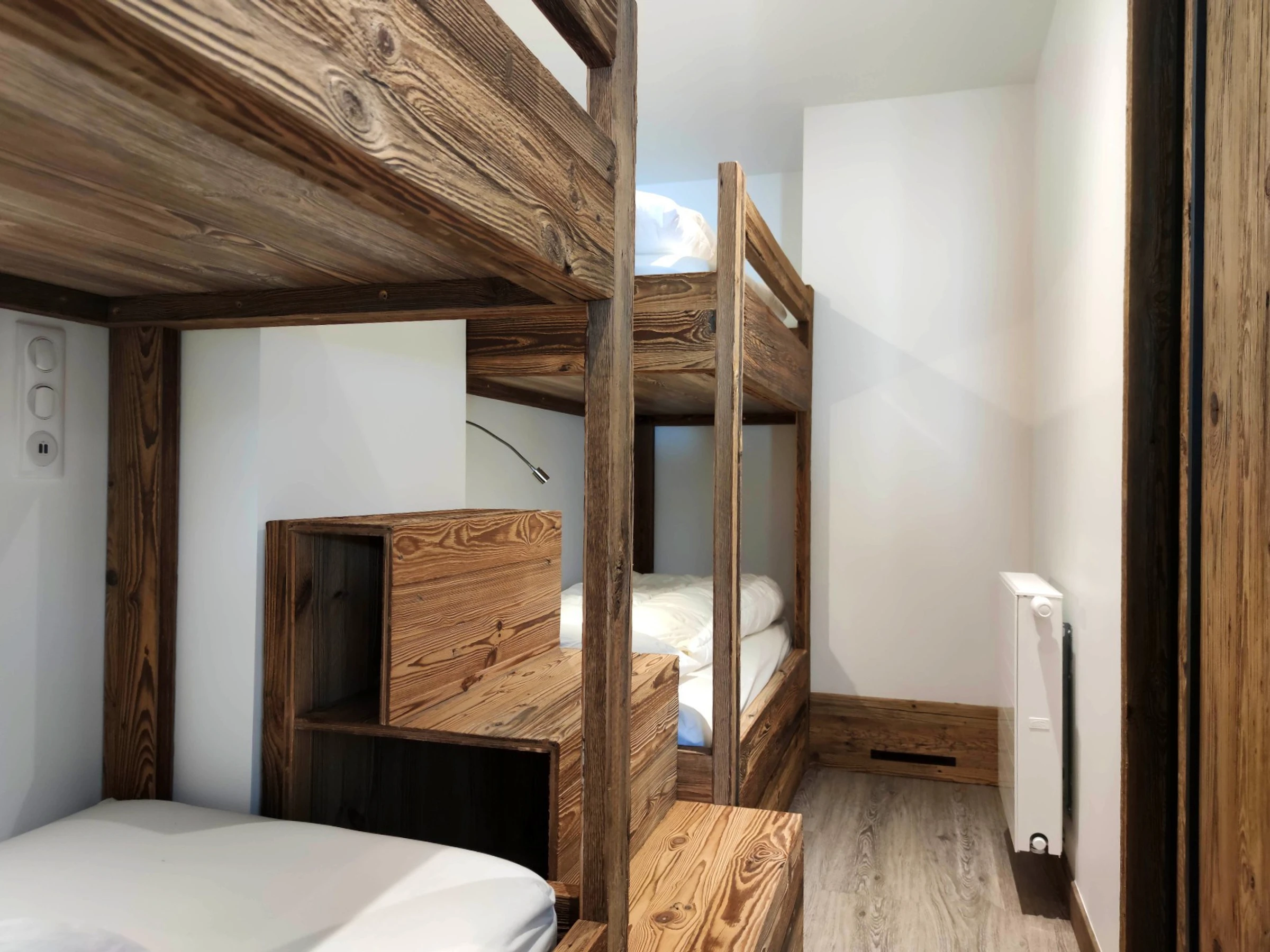 Une deuxième chambre, donnant sur le séjour, est équipée de 4 lits superposés pour 4 personnes.