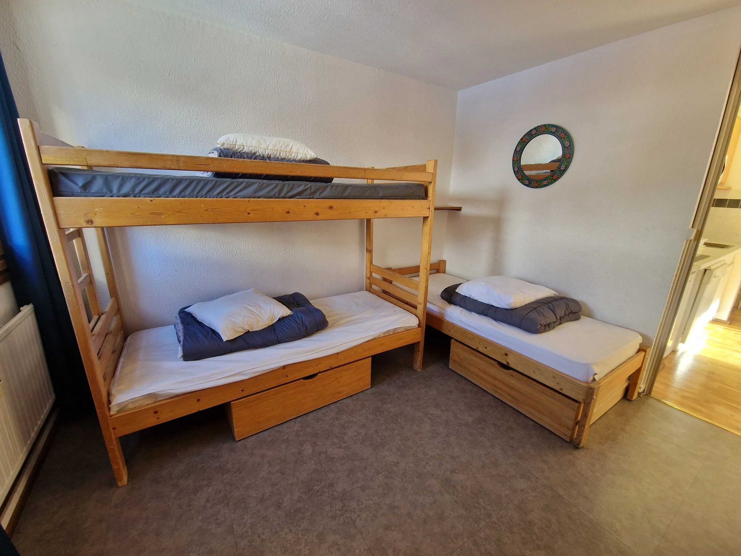 La première chambre est composée de 2 lits superposés et 1 lit simple.