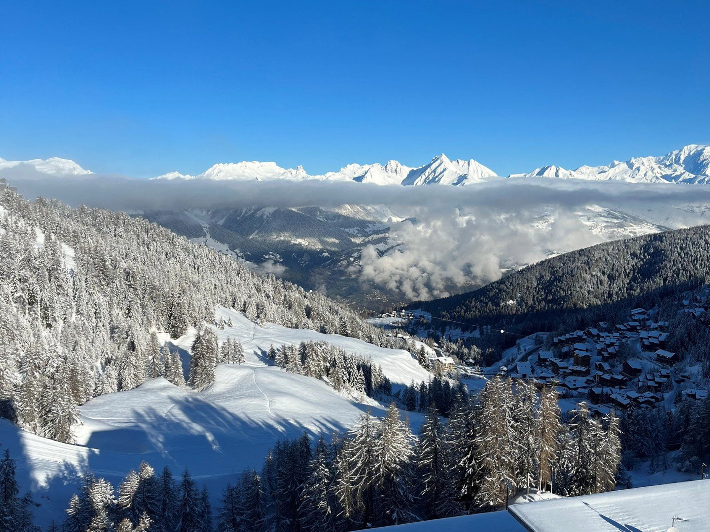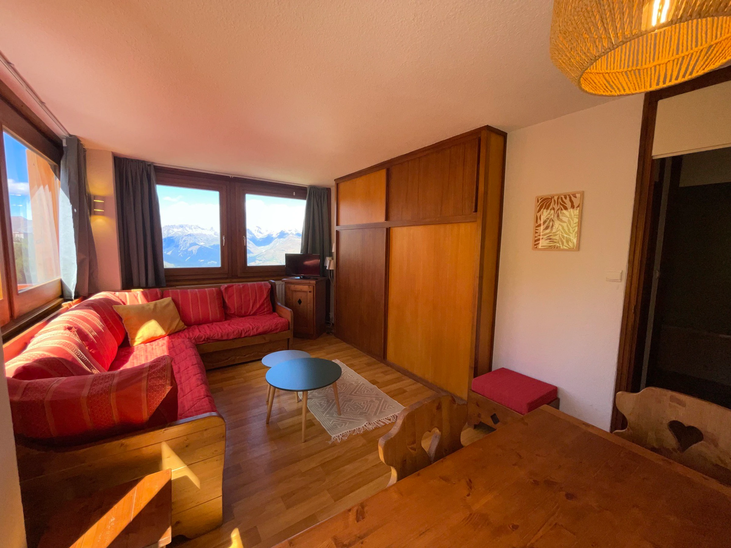 Appartement exposé sud/sud-ouest avec vue sur la station de Plagne Centre (stade de slalom) et une superbe vue sur le Mont Blanc avec accès direct à la galerie commerciale.
