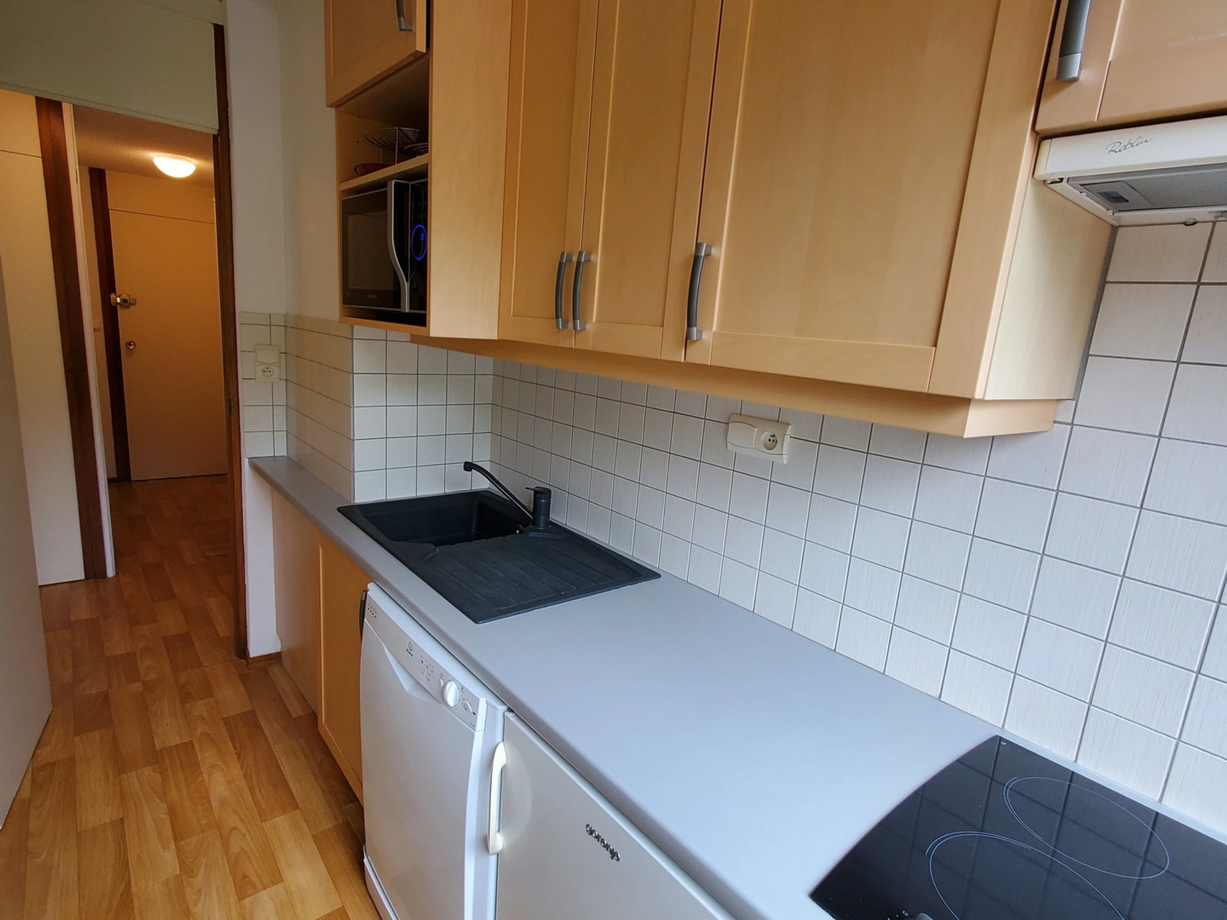 Le logement se compose d'un grand séjour avec 1 lit gigogne pour 2 personnes, et un lit simple, une TV écran plat. La cuisine séparée est équipée de plaques vitrocéramiques, d'un réfrigérateur, d'un four combi micro-ondes et d'un lave-vaisselle.