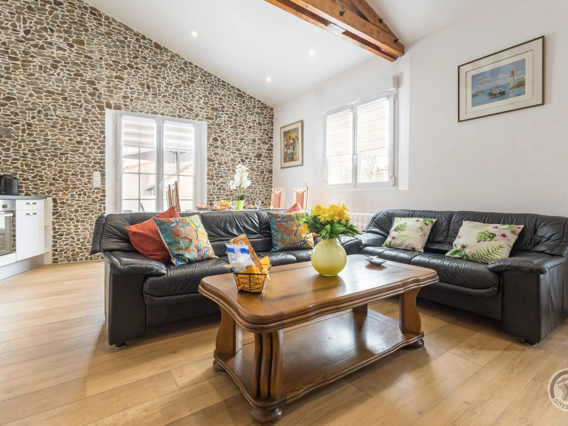 La Plain'aise est un appartement situé au cœur du bourg de la Plaine sur Mer avec ses petits commerces, restaurants et aire de pique-nique/jeux à 50 m. Il se trouve à 1,5 km de la plage, 8 km de Pornic et 42 km de Guérande.