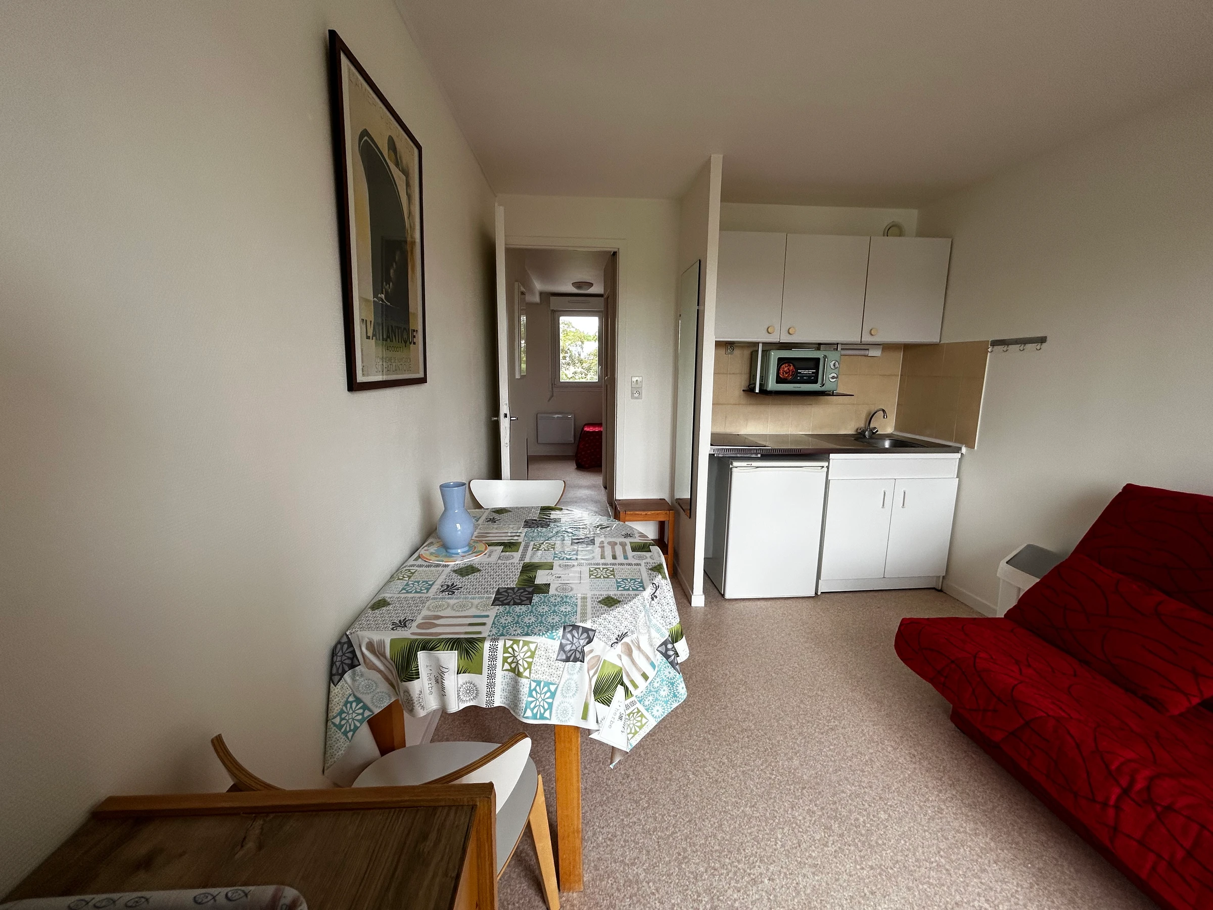 T2 lumineux situé au 3ème étage d'une résidence comprenant: un séjour ouvert sur une kitchenette équipée, une salle d'eau, une chambre disposant d'e 2 lits de 90x190