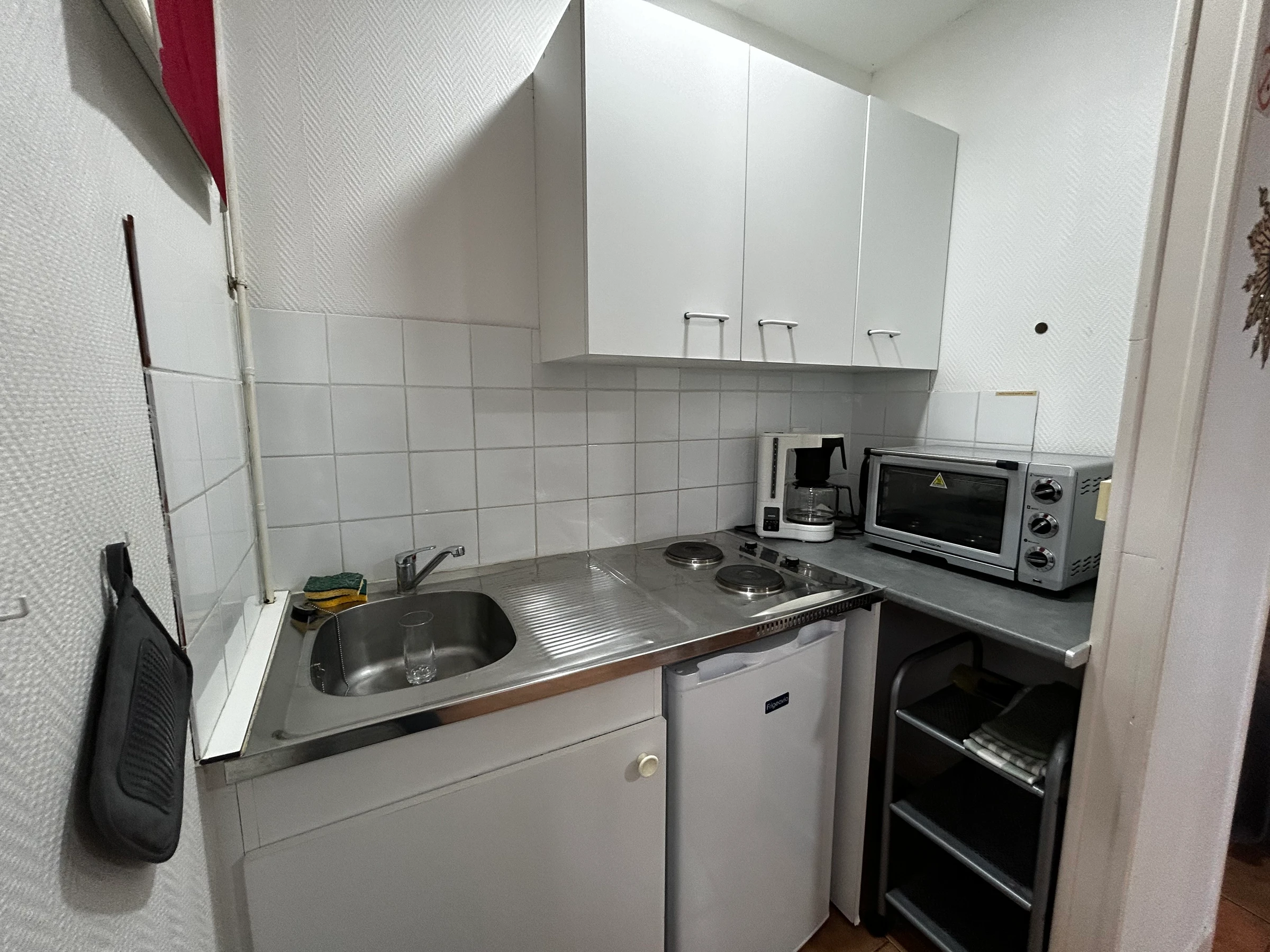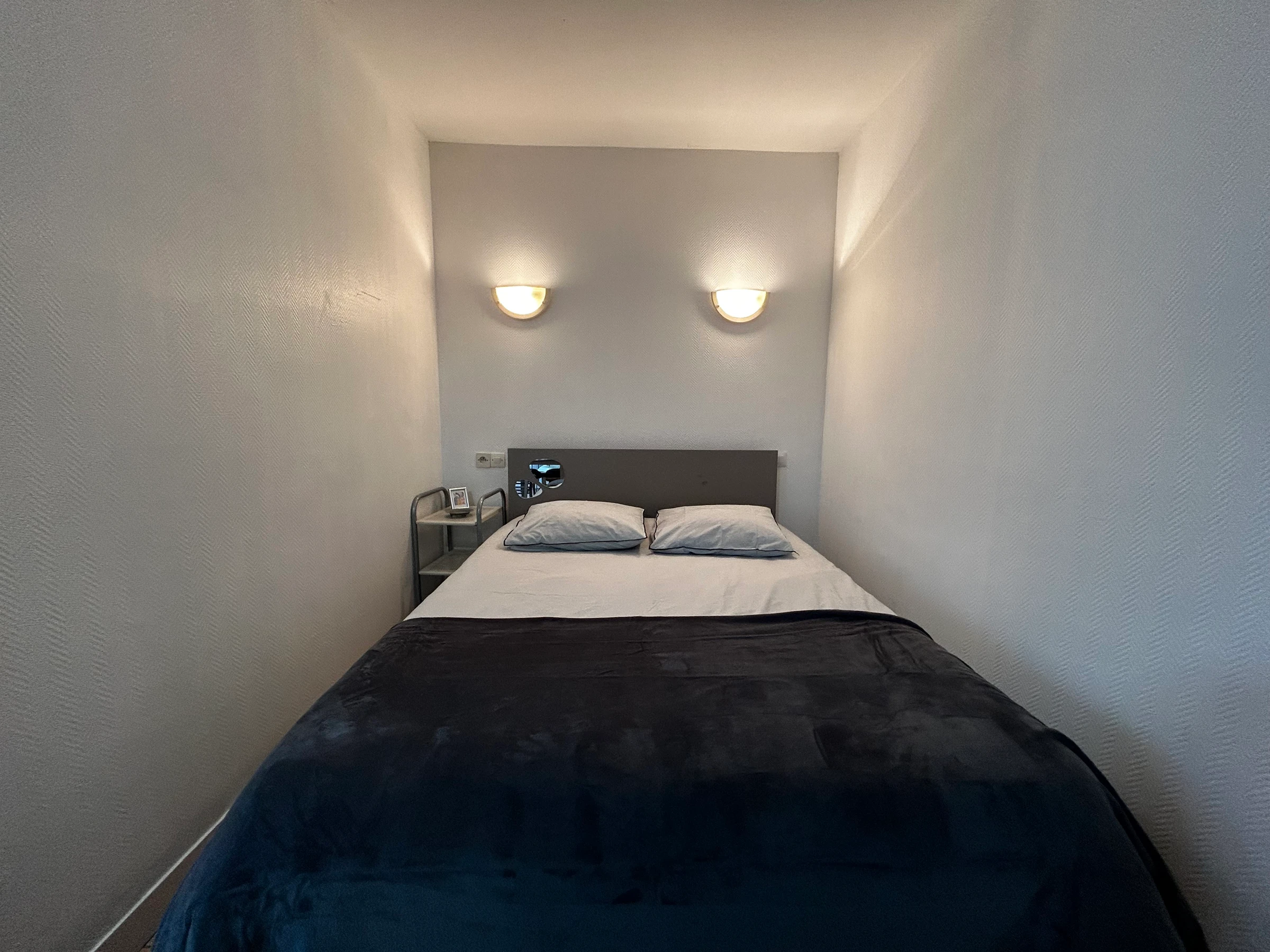 Ce logement se compose d'une pièce à vivre disposant d'un coin salle à manger, kitchenette équipée,1 lit de 140*190 et 1 lit de 90*190, une salle d'eau avec douche, lavabo et WC.