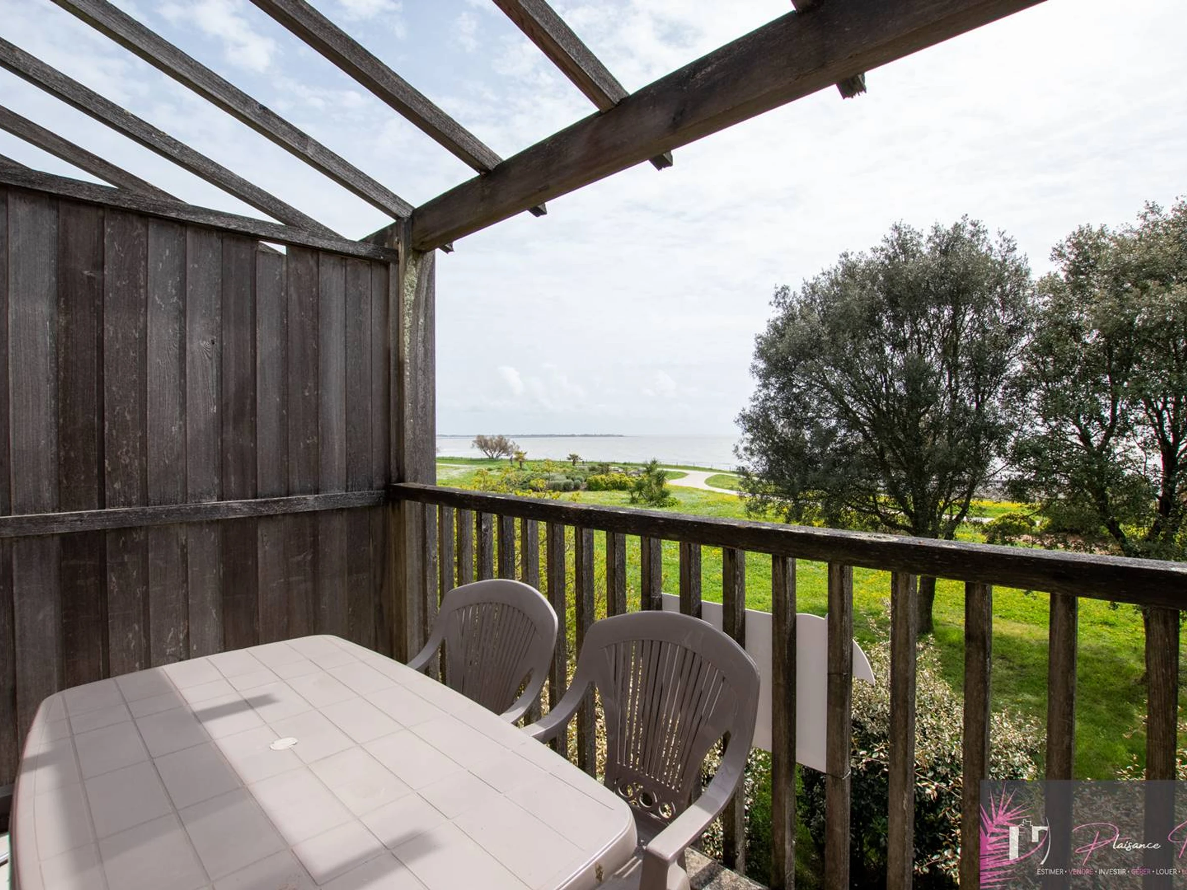 Bel appartement de 40 m², au 1er étage, exposé plein sud avec belle vue dégagée sur l'océan et les îles. Entrée, coin couchage avec 2 lits superposés, kitchenette ( four, réfrigérateur, 2 feux gaz, lave-vaisselle), séjour avec convertible 2 places, mezzanine avec 1 lit double, salle de bains/wc. La baie vitrée du séjour donne sur la terrasse avec salon de jardin. Vous serez à 100 m de la plage et à 100 m des petits commerces. Parking privé. .