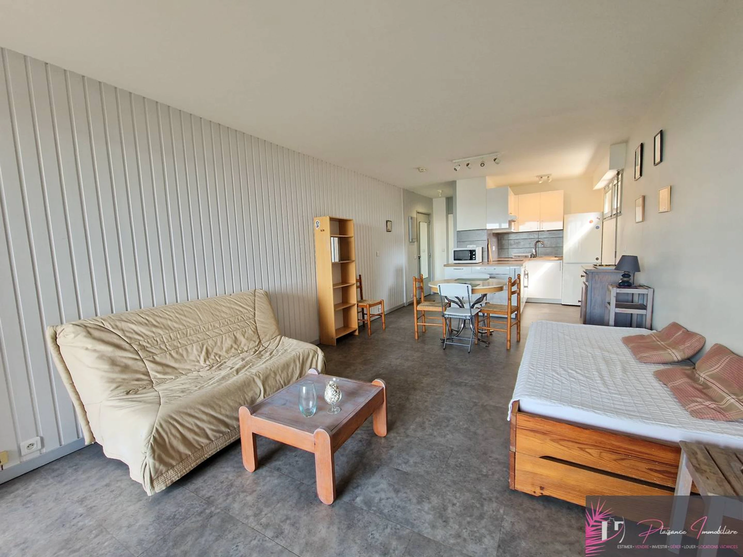 Studio équipé en rez-de-chaussée d'une résidence située à 50m de la plage. Belle terrasse de 19 m² exposée Sud Ouest avec salon de jardin. Vue sur mer et Plage. Séjour avec convertible. Kitchenette équipée (fours, réfrigérateur/congélateur, 2 plaques à induction). Salle d'eau (douche, lavabo, WC) Proximité des petits commerces et du Port de Plaisance. A quelques pas du chemin côtier pour de belles ballades le long de la mer et du Port de Plaisance.