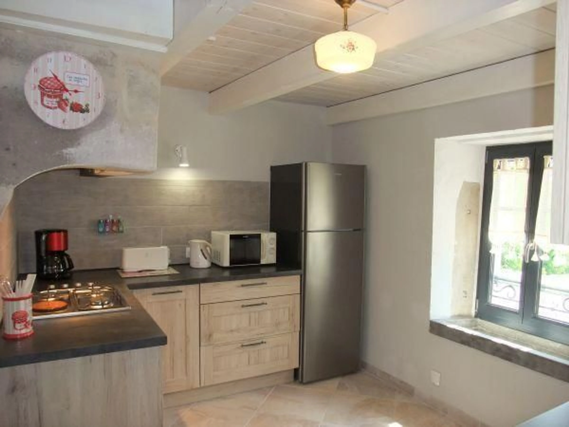 Au rez-de-chaussée : entrée, par l'ancien charri, séjour avec poêle à granulés, cuisine équipée, 1 chambre (1 lit 2 personnes), une salle d'eau avec douche à l'italienne, WC indépendant.