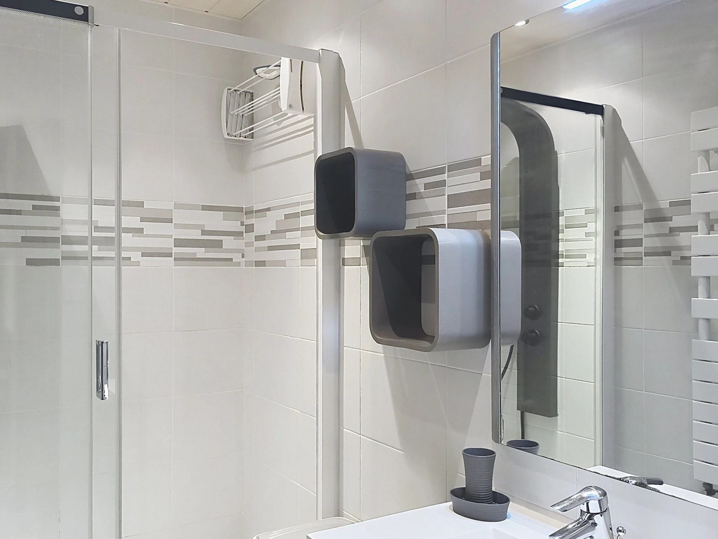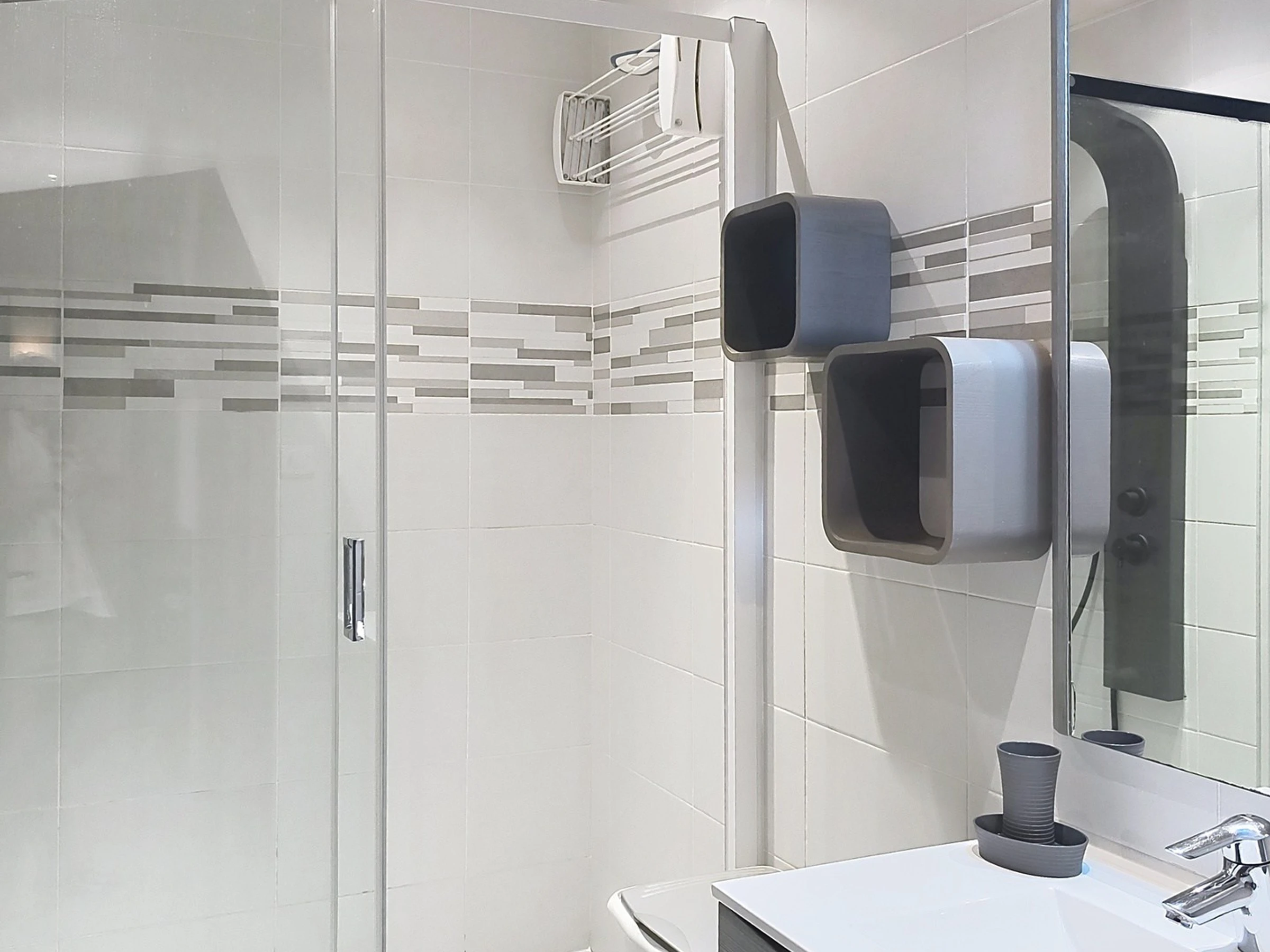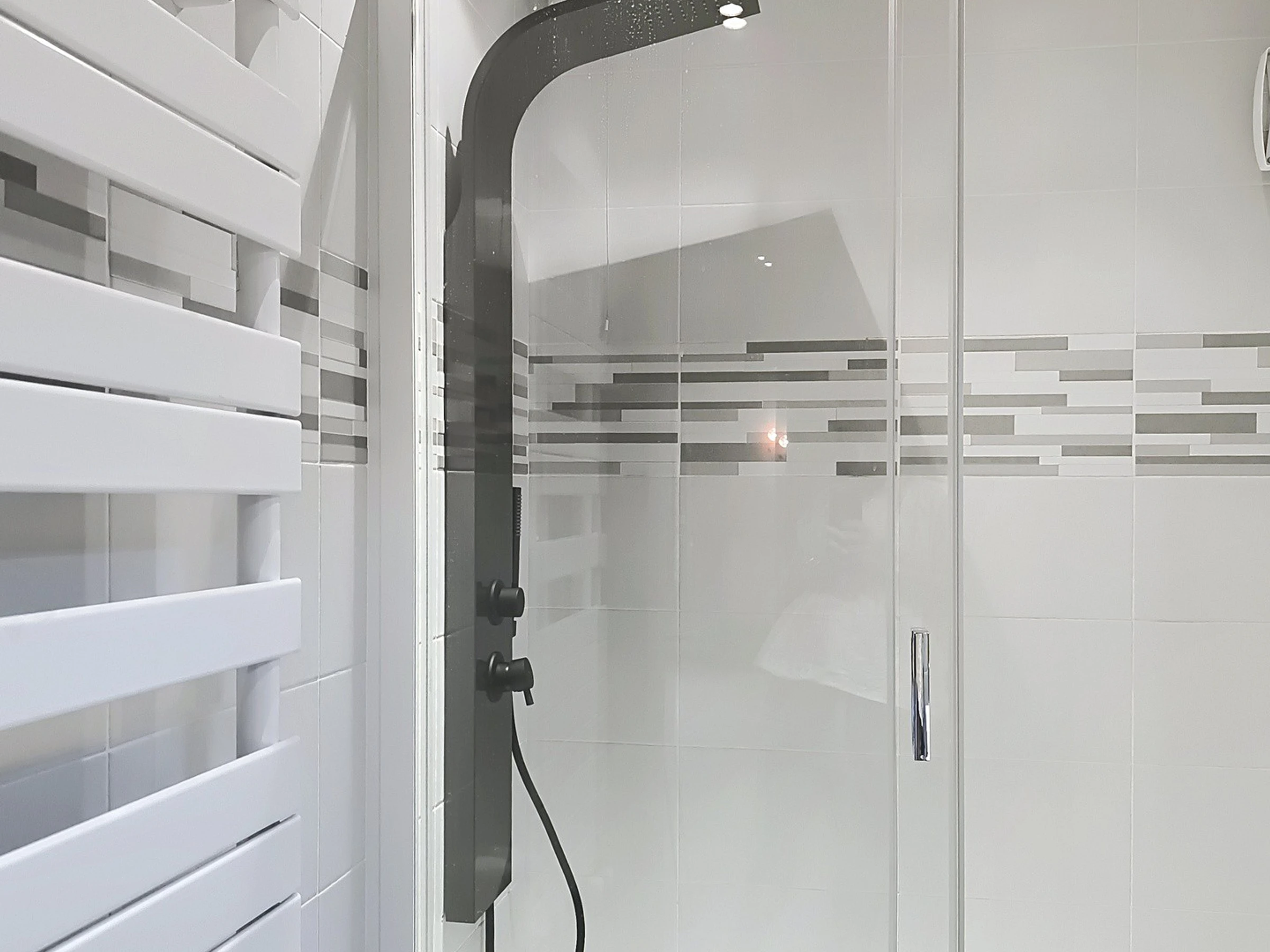 - SALLE D’EAU avec cabine de douche, meuble vasque.