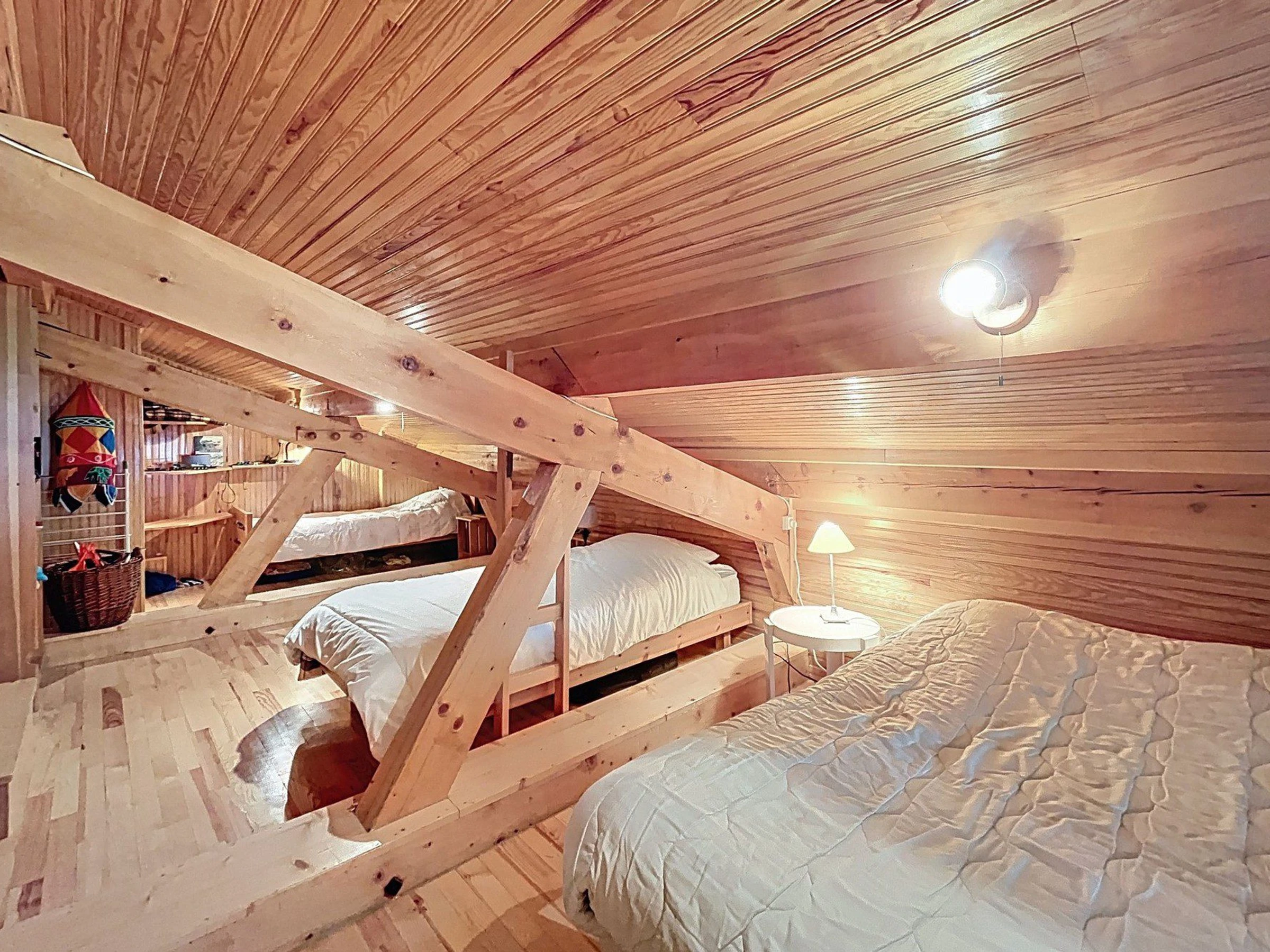 « Le repère des Lutins » : 1 grande chambre sous pente, ambiance refuge avec 1 lit double (140) + 2 lits simples.
