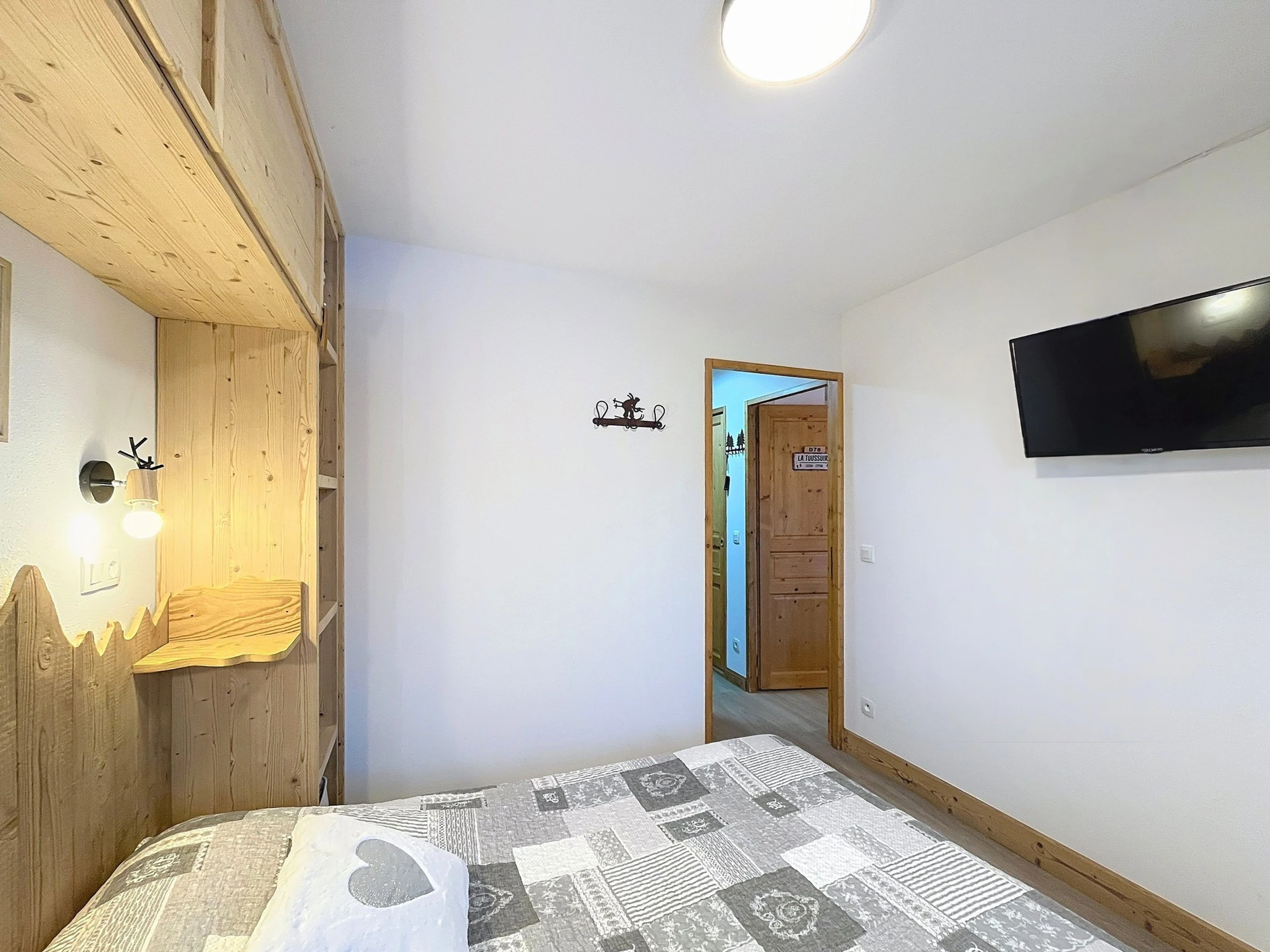 La chambre est dotée de 2 lits simples en 80X200 réunissables pour faire un lit double en 160, de placards et une télévision.