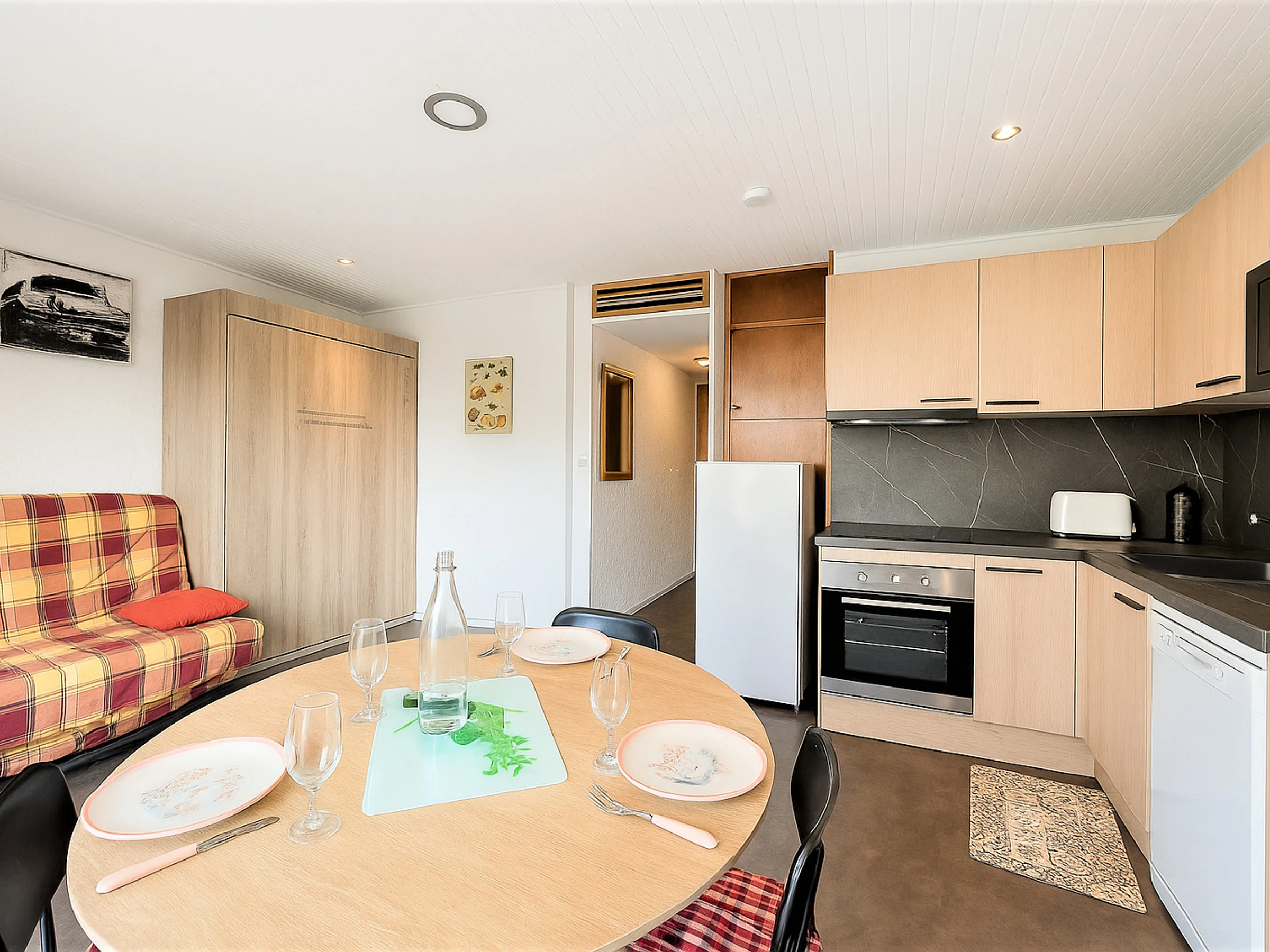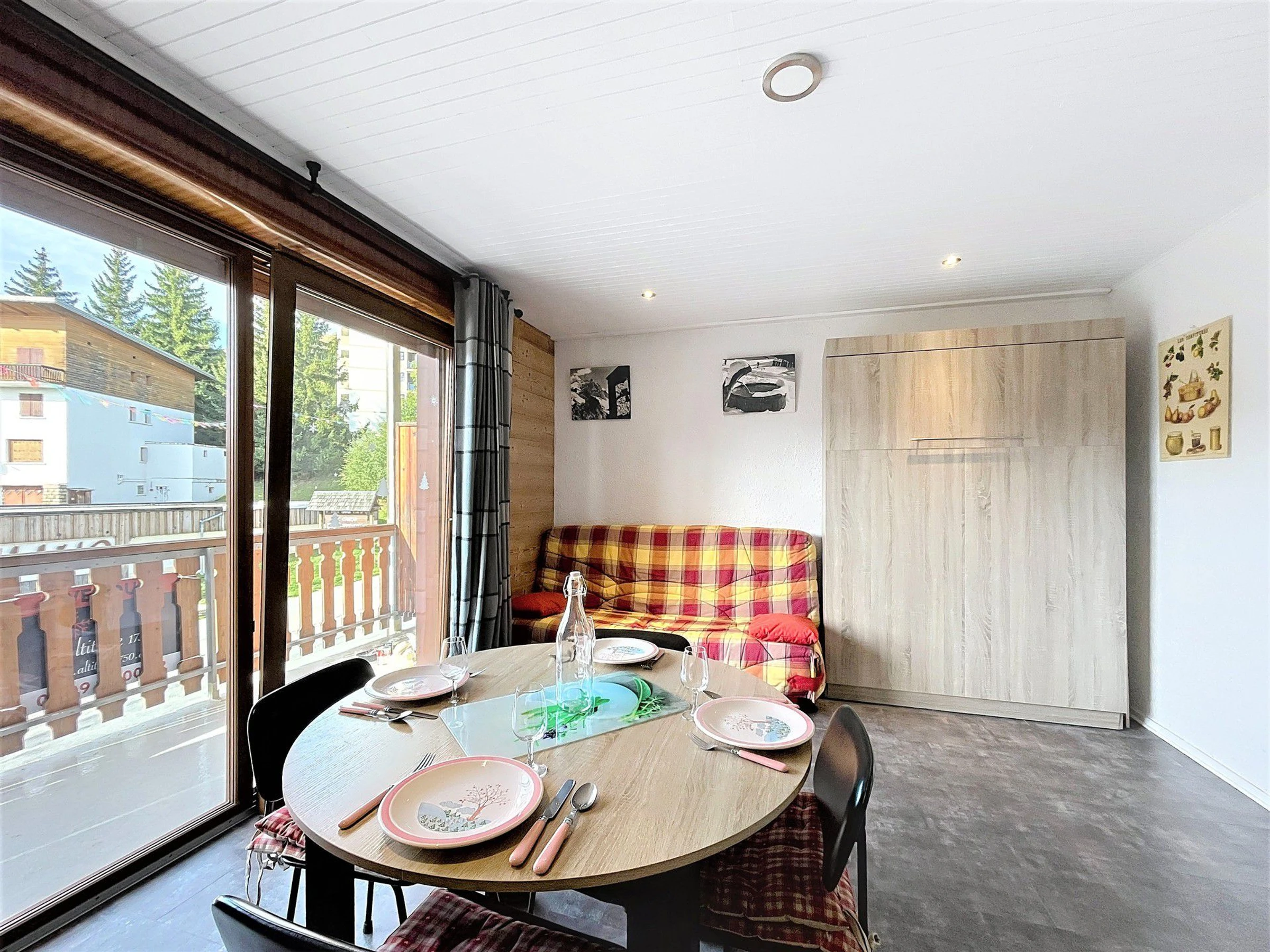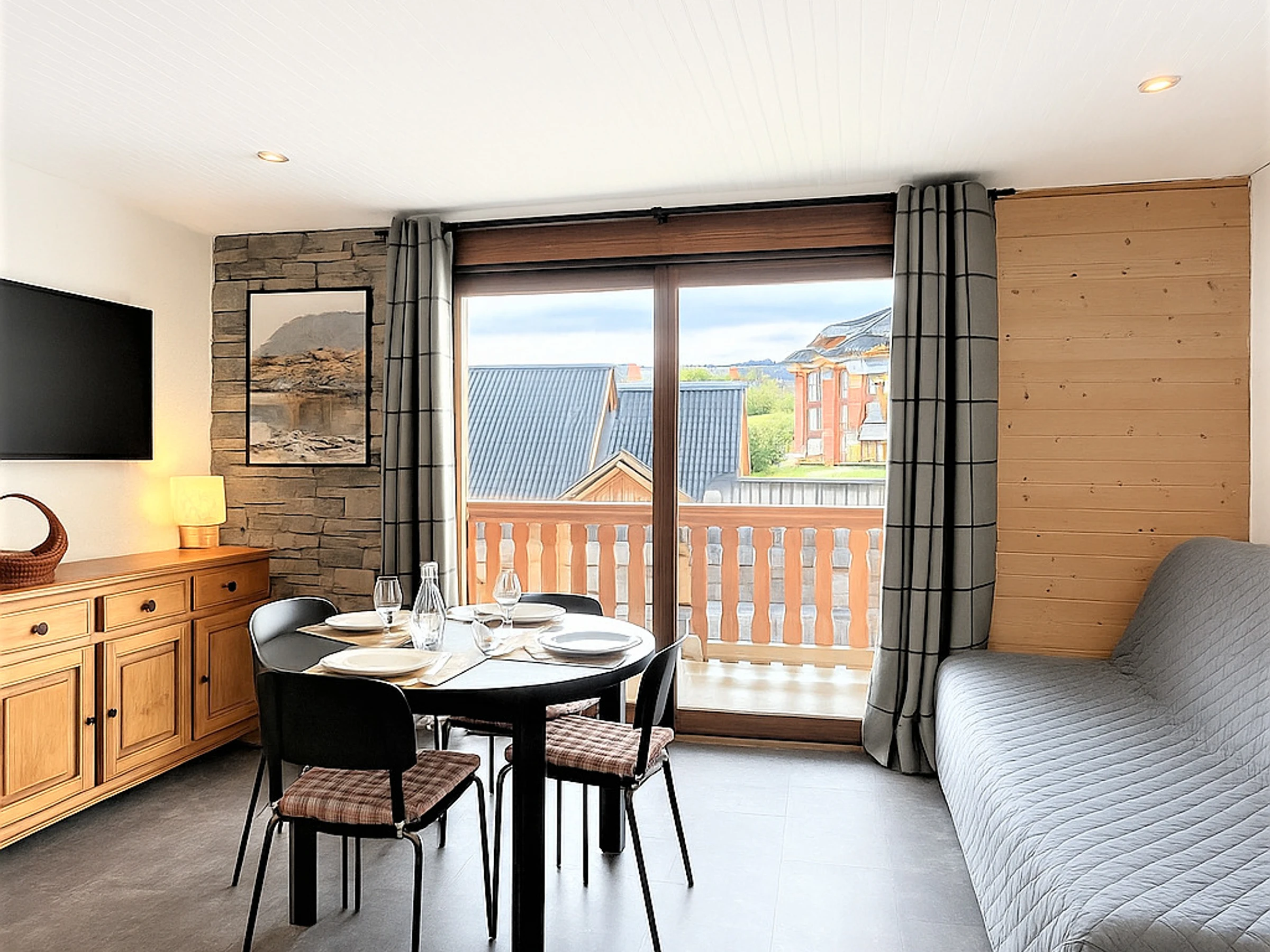 Idéalement situé au cœur de la station de La Toussuire à environ 150m du front de neige, ce studio alcôve rénové de 32 m² vous accueille au 1er étage de la Résidence Toussuire (entrée C). Il bénéficie d’un balcon exposé plein Sud, offrant une belle luminosité.