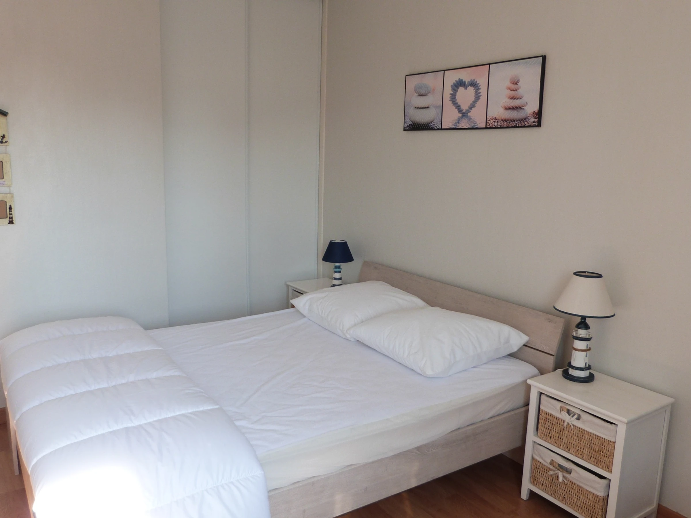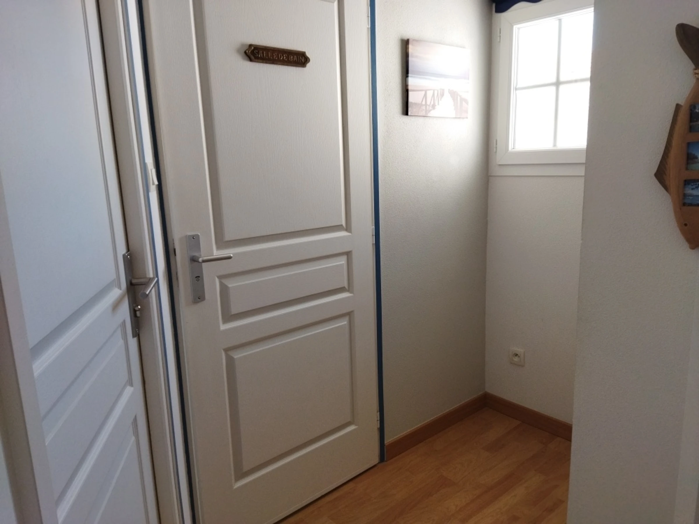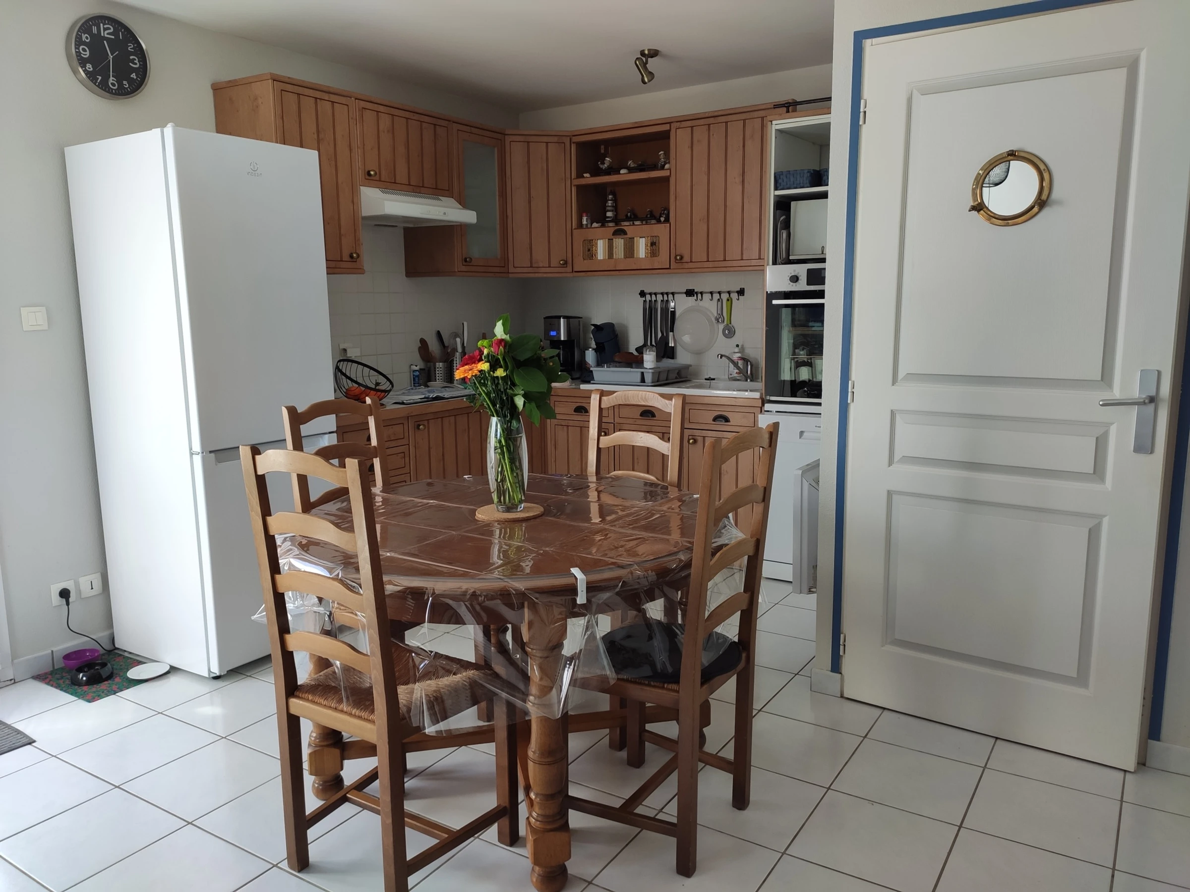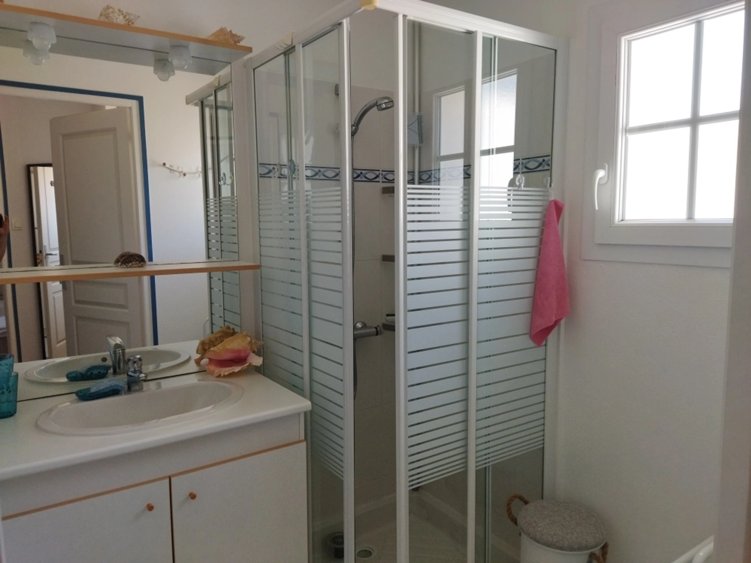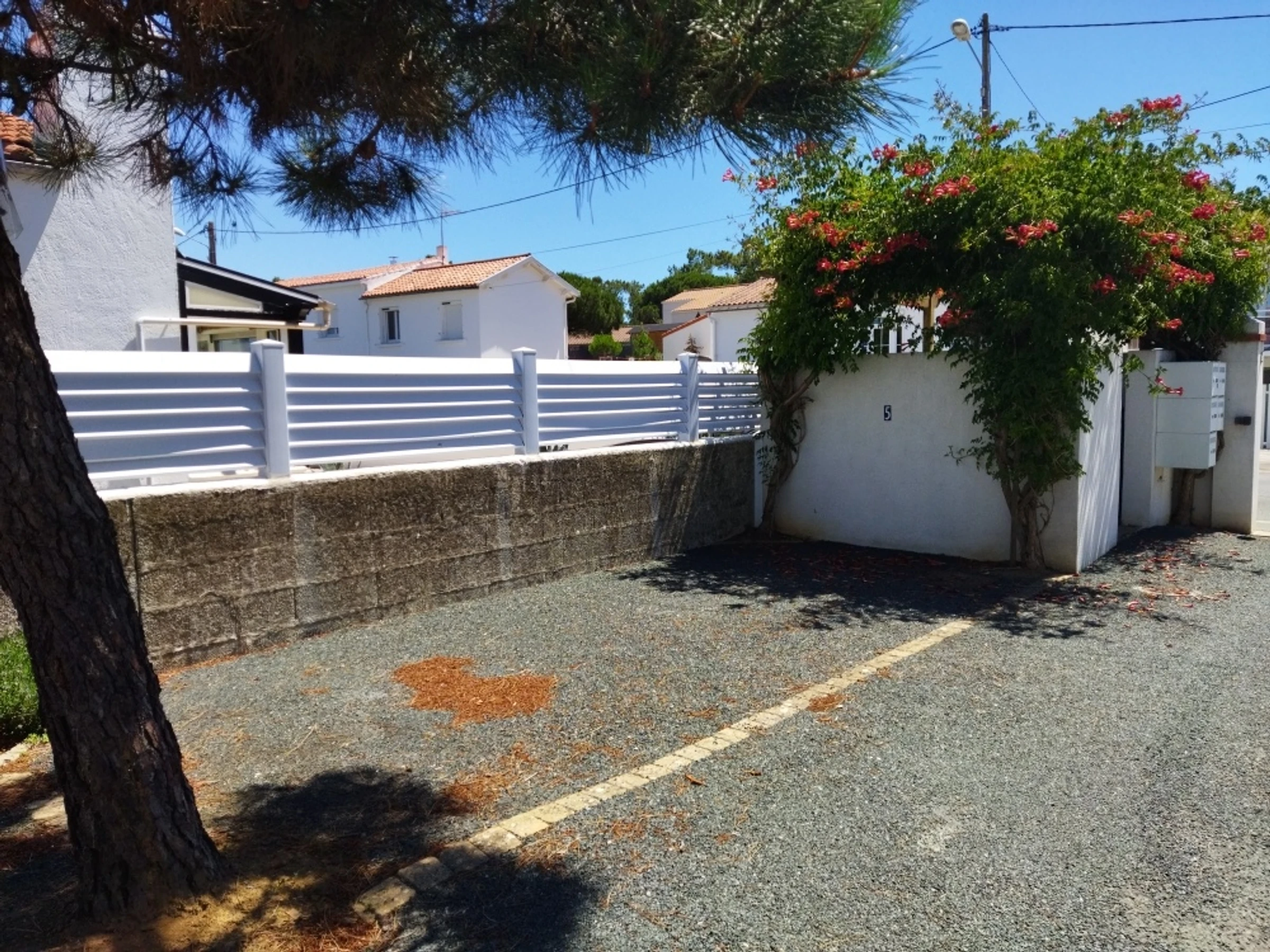 Maison individuelle, exposée sud/ouest, d'environ 52m² sur terrain clos proche quartier de la Grière. La maison se compose d'une pièce de vie avec salle à manger, salon avec TV et cuisine équipée ouverte, WC, débarras extérieur avec machine à laver. A l'étage, une chambre avec lit double de 140 + un canapé convertible et salle d'eau. Belle terrasse composée d'un espace salon de jardin et d'un espace déjeuner avec une table et 4 chaises, d'un pare-vent, parasol, barbecue et deux bains de soleil. Wifi gratuit disponible dans la maison. Place de parking privative.