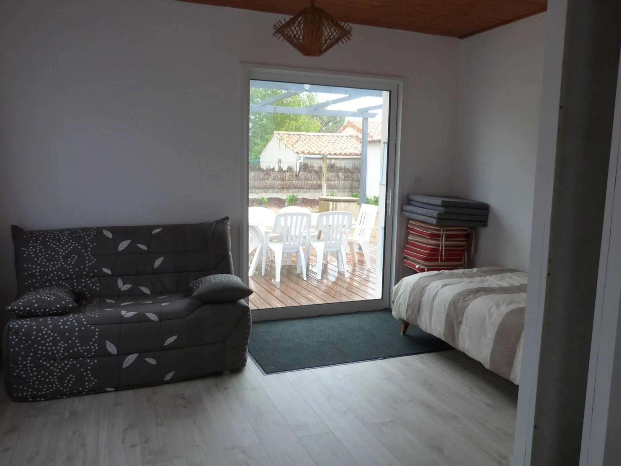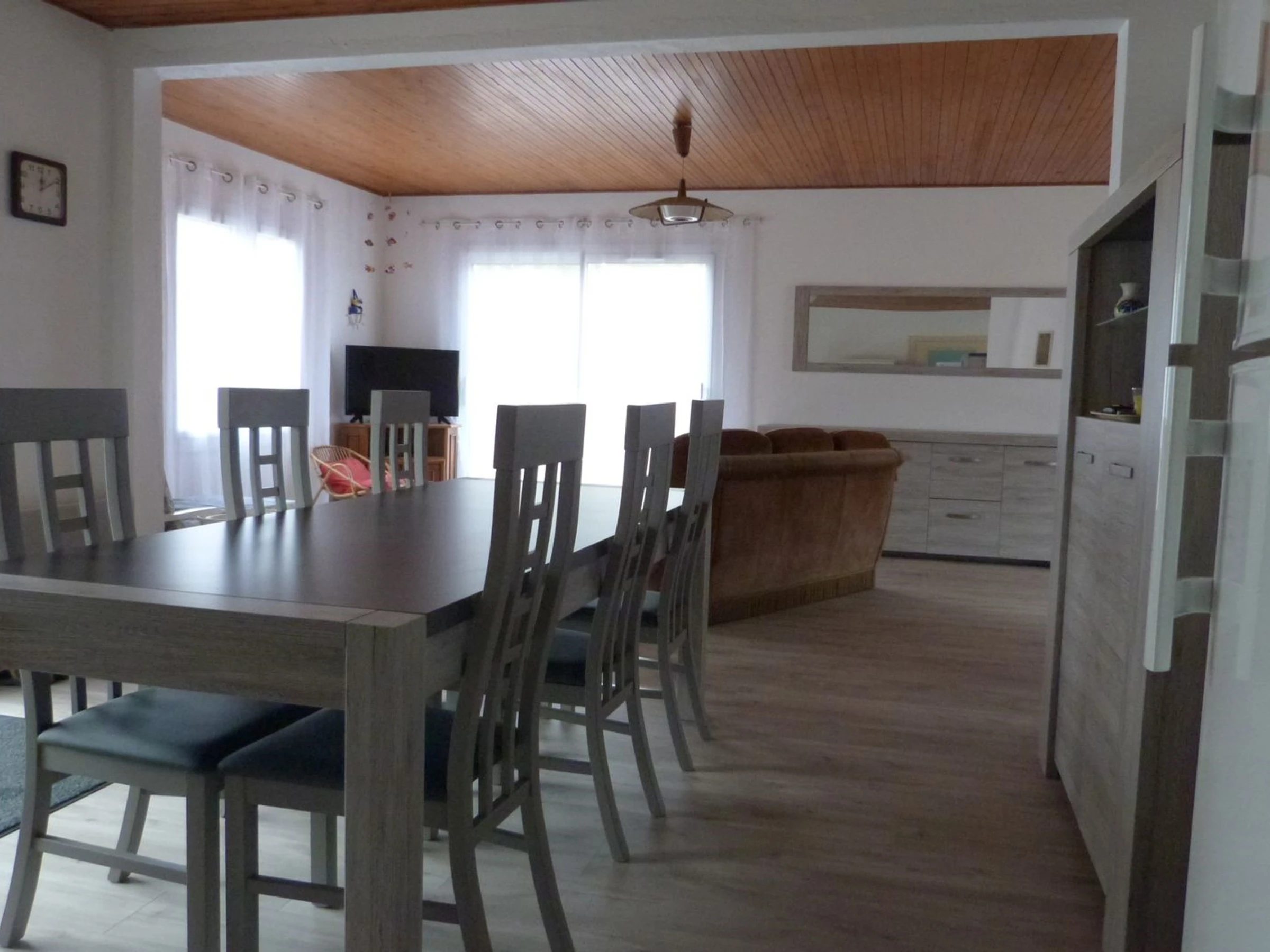 Salon avec canapé, télévision, possibilité de séparer une partie du séjour pour faire une chambre (1 BZ de 140 + 1 lit de 90),