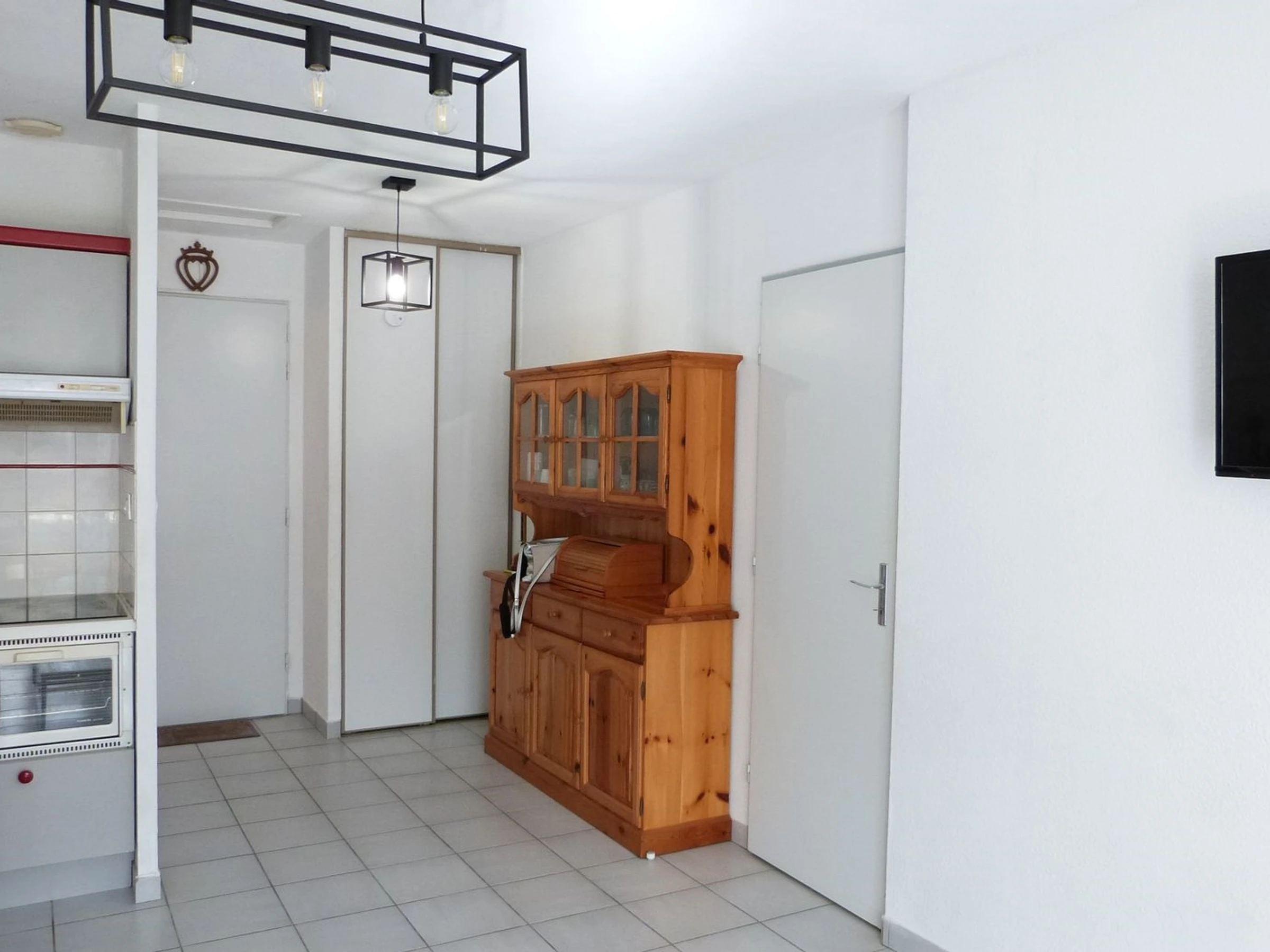 Salon avec télévision, canapé clic-clac,