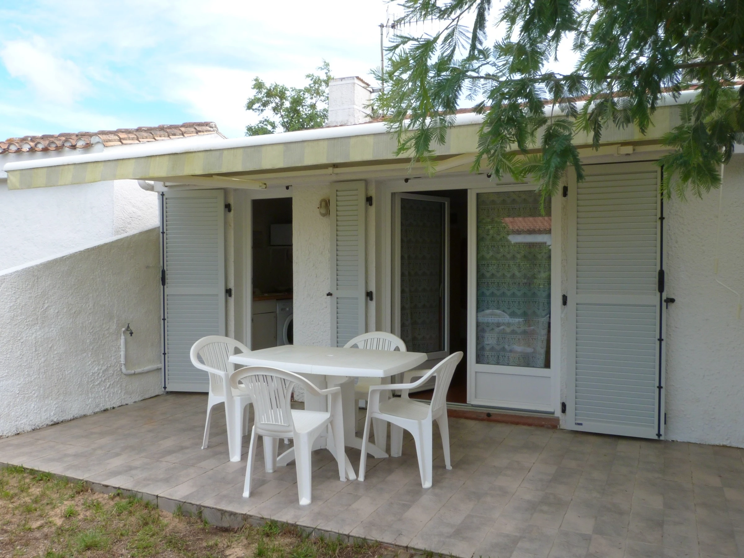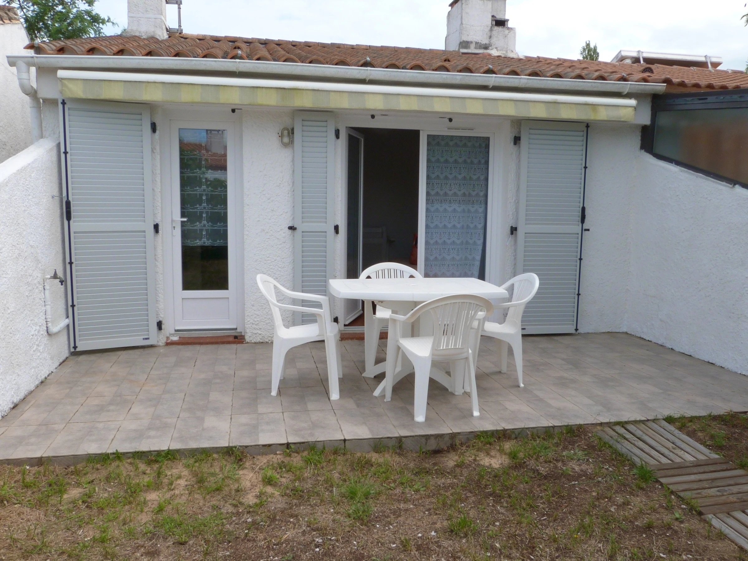 Profitez de son salon de jardin pour 4 pers sur terrasse équipée d'un store banne, barbecue, 2 bains de soleil et 2 vélos à disposition (1 homme - 1 femme).