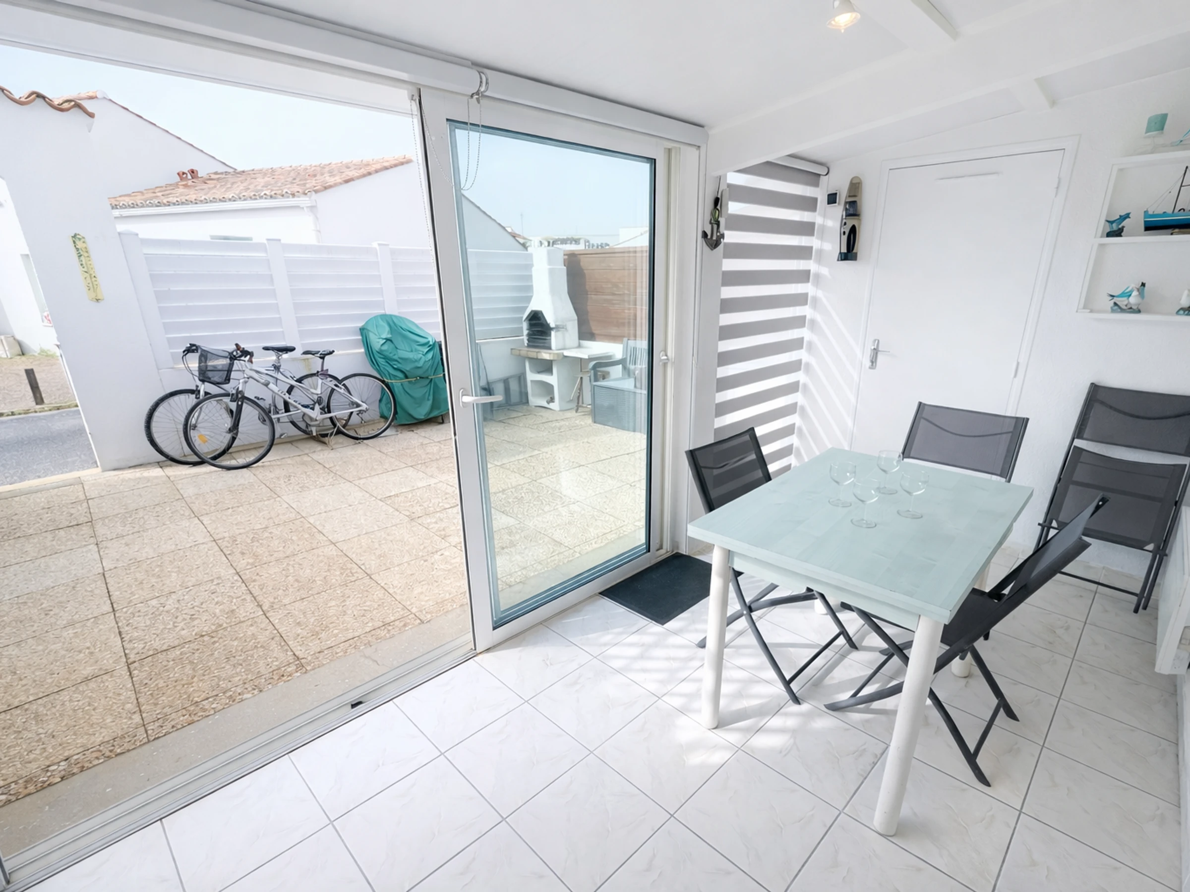 Vous profiterez d’une terrasse avec store banne, d’une cour fermée (pratique et sécurisante) aménagée avec mobilier de jardin, d’un barbecue en dur et d'un évier extérieur avec eau chaude/eau froide pour vos repas en extérieur. Un emplacement de parking privé dans la résidence
