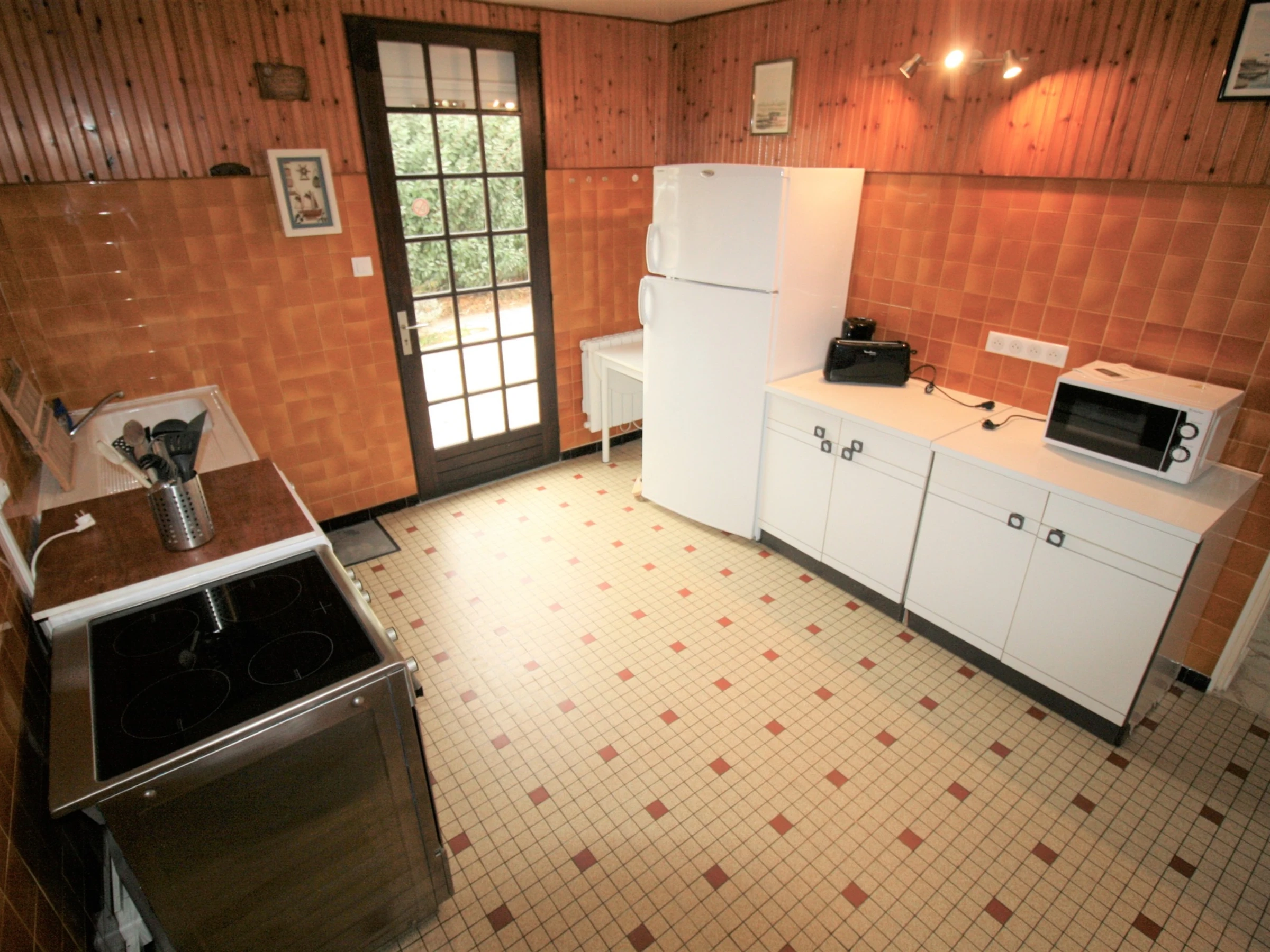 Équipements : 1 cuisinière, plaque induction,1 micro-ondes, 1 réfrigérateur avec partie congélateur, 1 cafetière électrique, 1 bouilloire, 2 aspirateurs, 1 salon de jardin et 1 barbecue, télévision, lave vaisselle et lave linge. vaisselle et couverts.