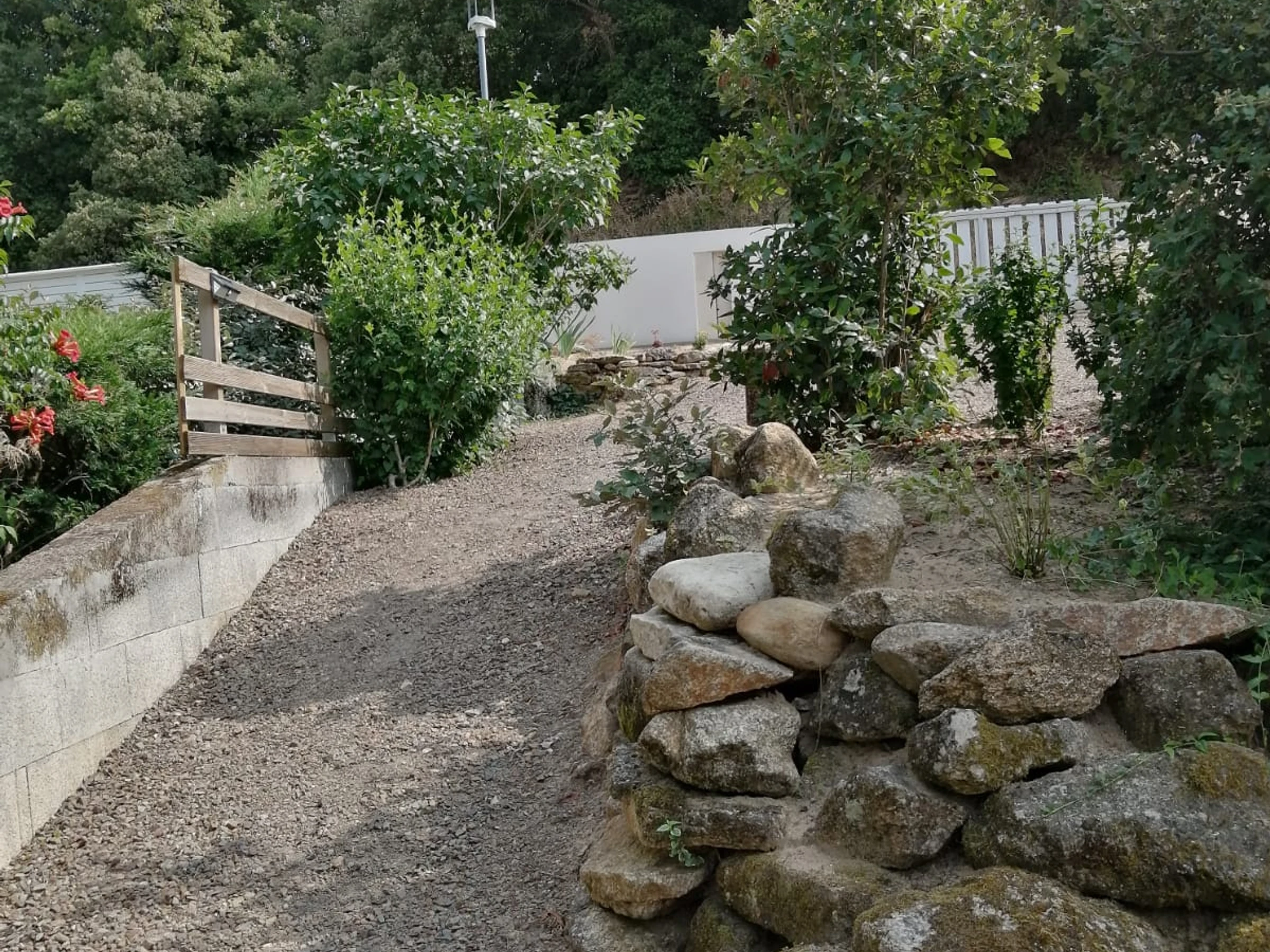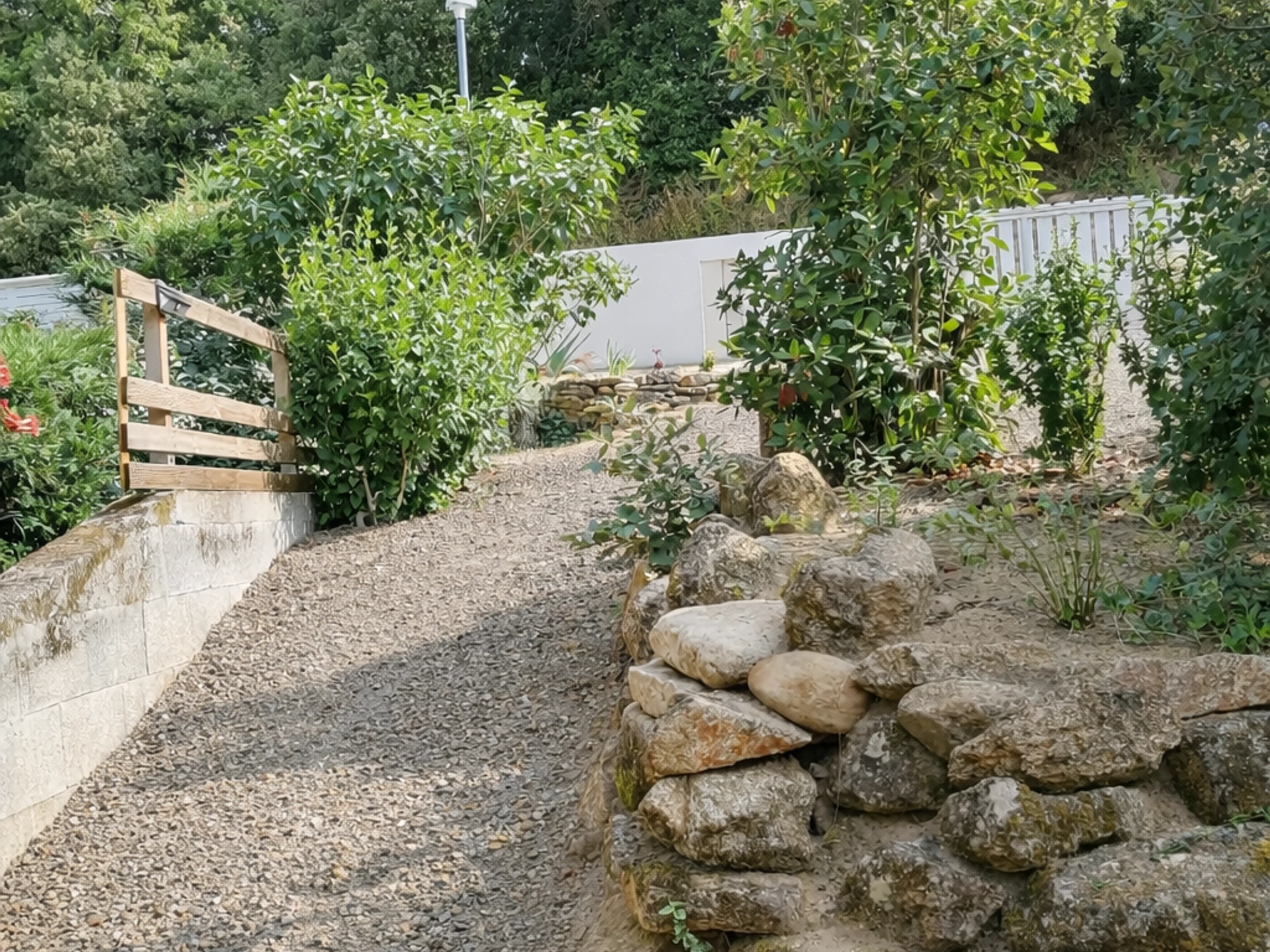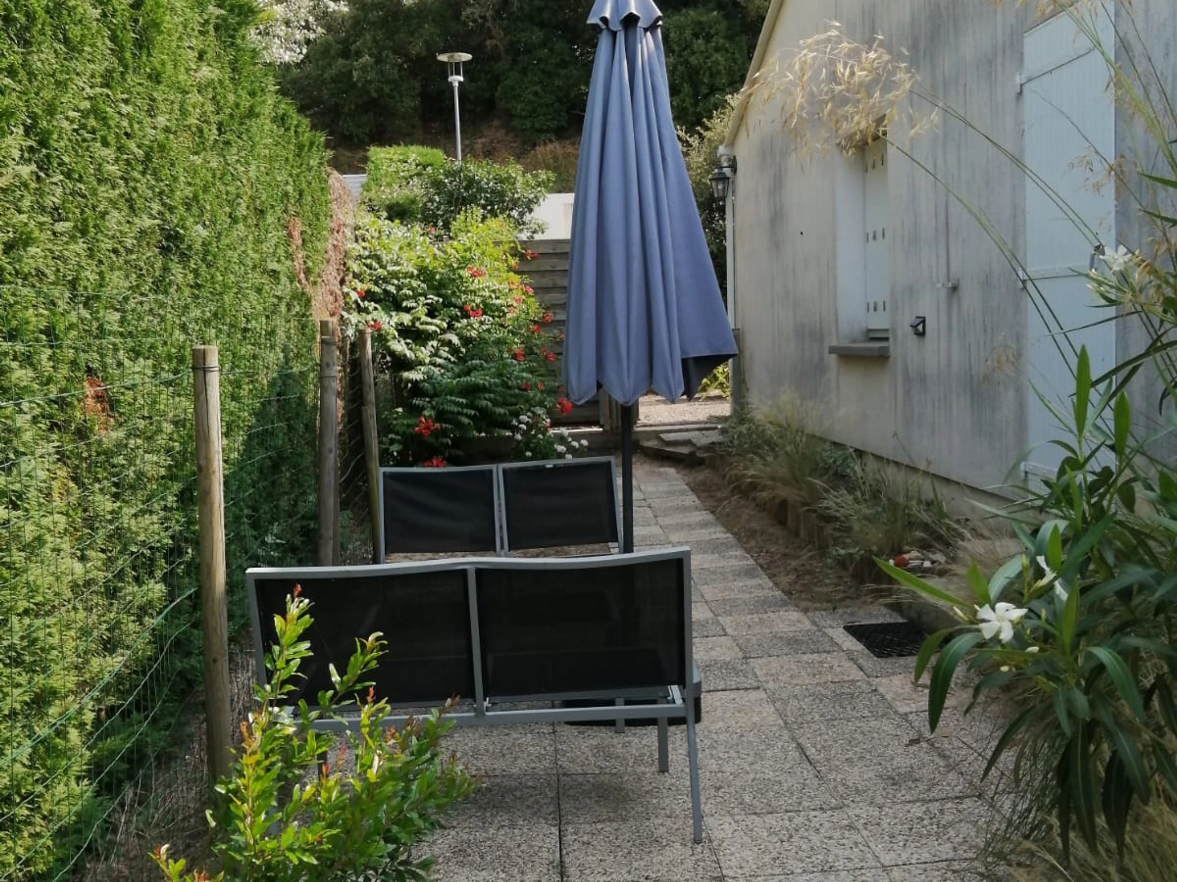 Extérieur : Terrasse donnant sur jardin, avec salon de jardin - 2 bains de soleil. Parking sur terrain.