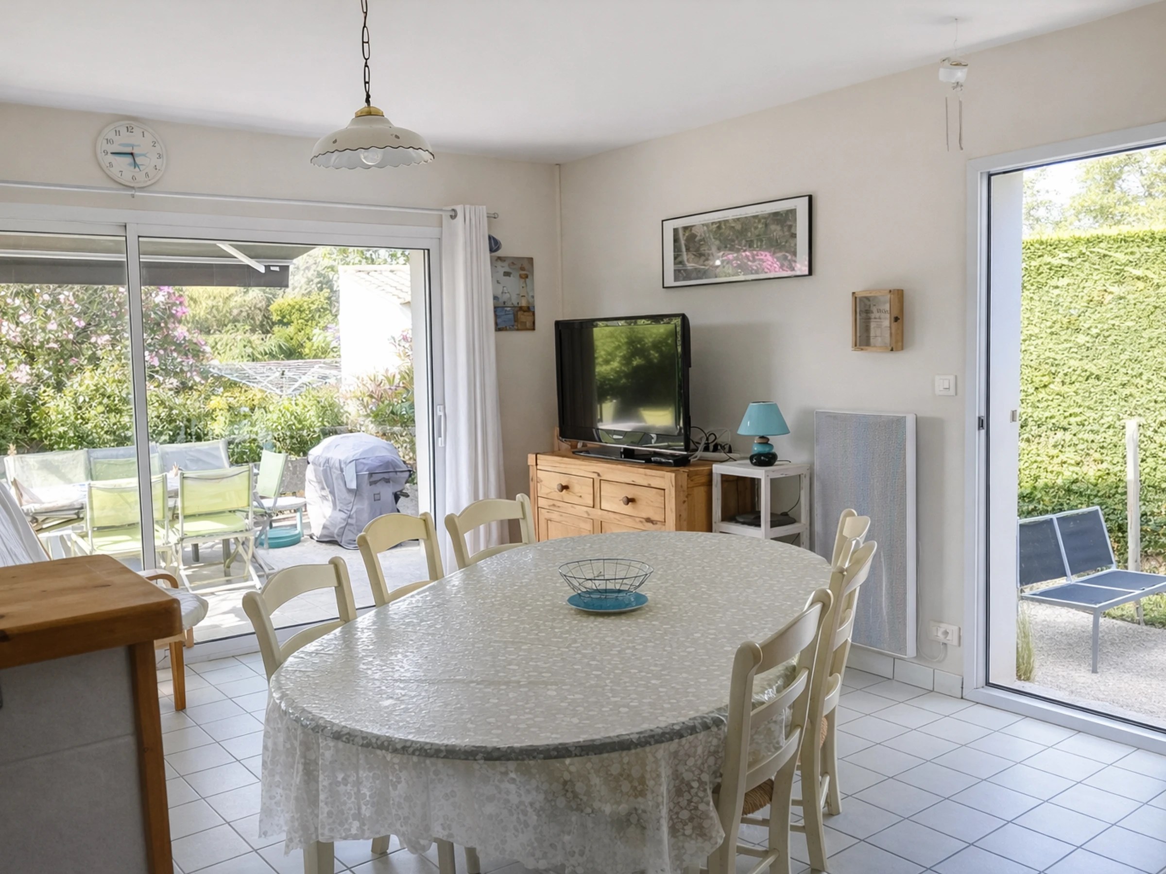 - 1 pièce à vivre (20 m²) comprenant 1 salon-séjour avec 1 canapé convertible (2 pers.), 1 TV écran plat , ouvrant sur la terrasse et le jardin par une grande baie vitrée,