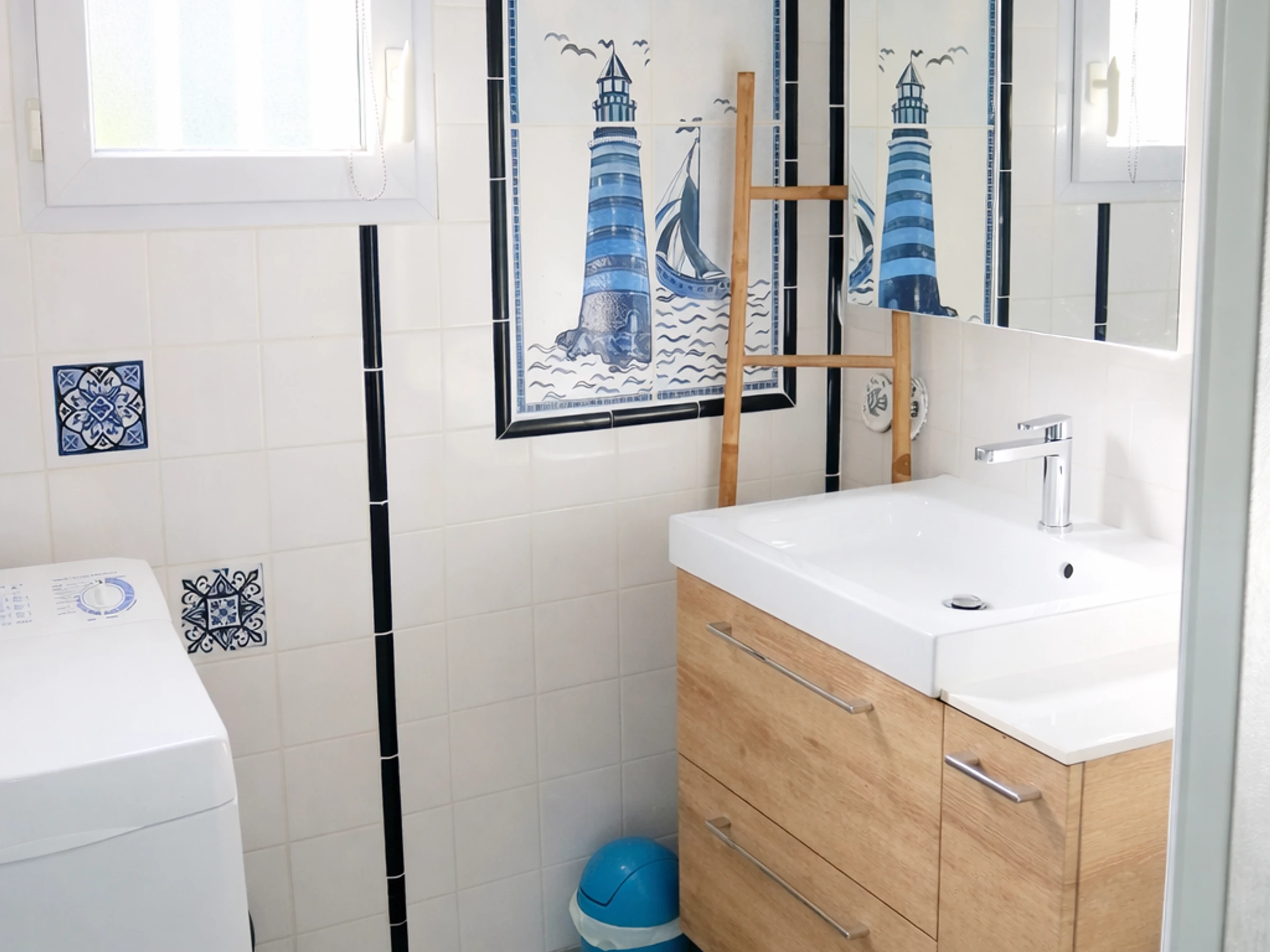 - 1 coin cuisine avec 1 plaque induction, 1 four électrique, 1 micro-ondes, 1 réfrigérateur à 2 portes (avec conservateur), 1 lave-vaisselle, 1 lave linge, vaisselle, couverts...